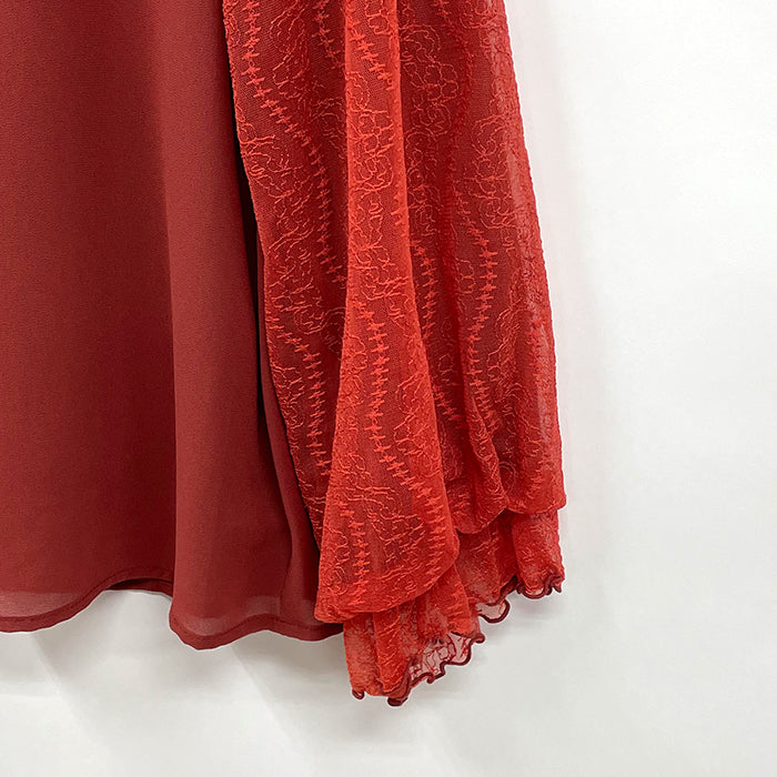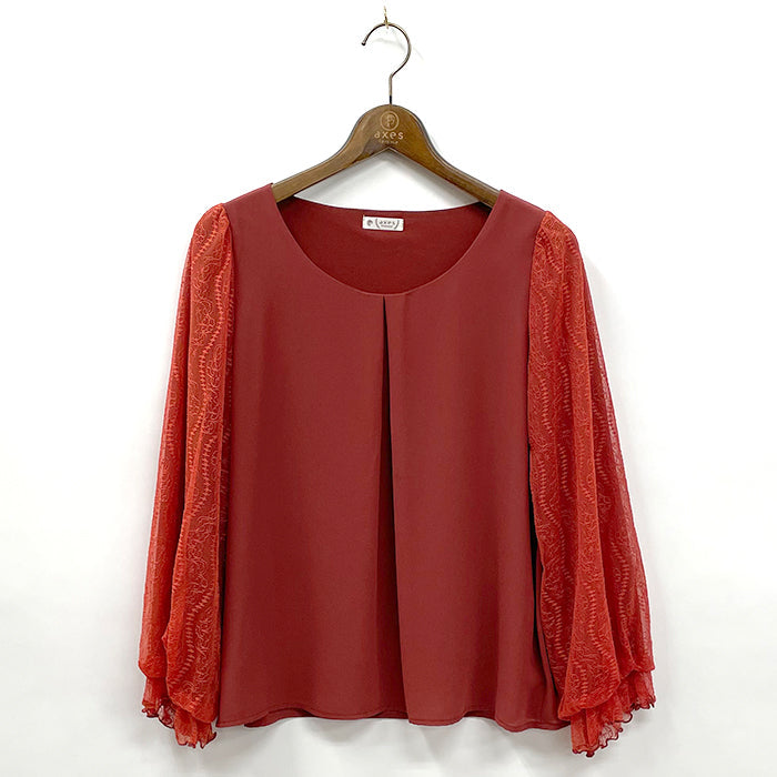 チュールレースを使用したお袖がポイントのトップスです。袖のボリューム感がフェミニンです。