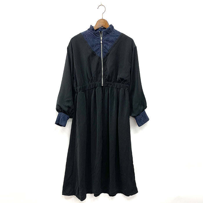 ウエストまでファスナーがあるデザインのため裾に向かっては前が開くデザインで、閉じてワンピース風にも、開けて羽織としても着られるデザインなので、スタリングの幅が広がります。