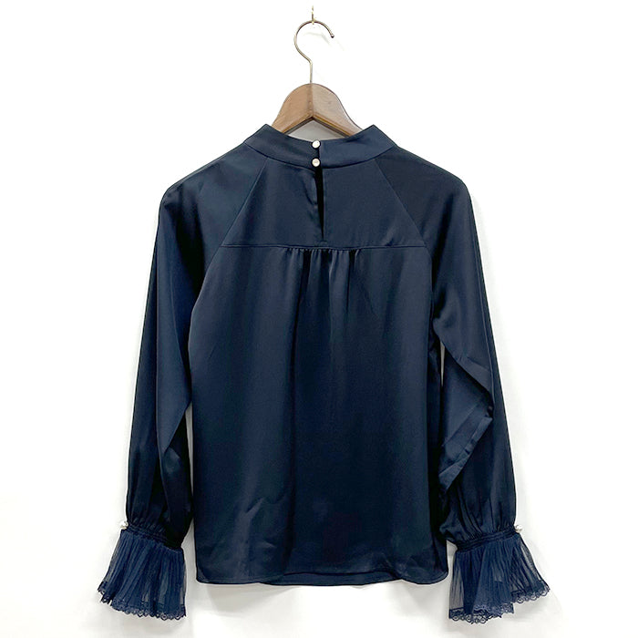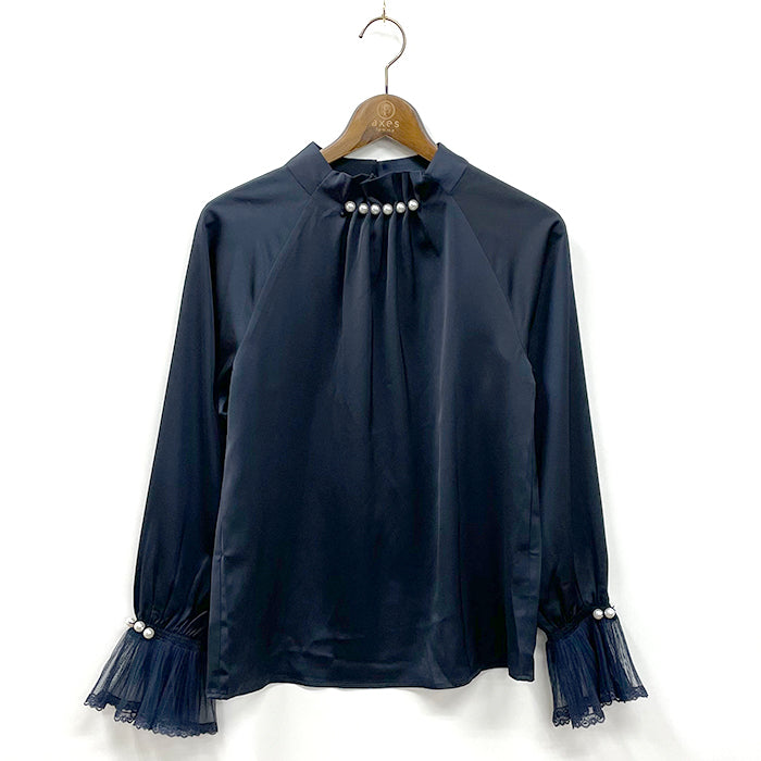 トレンドのパールディティールがポイントのハイネックブラウスです。