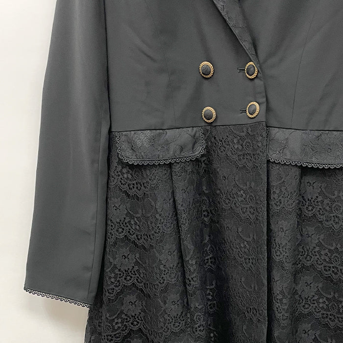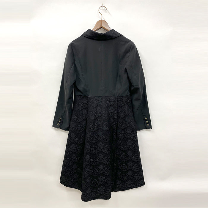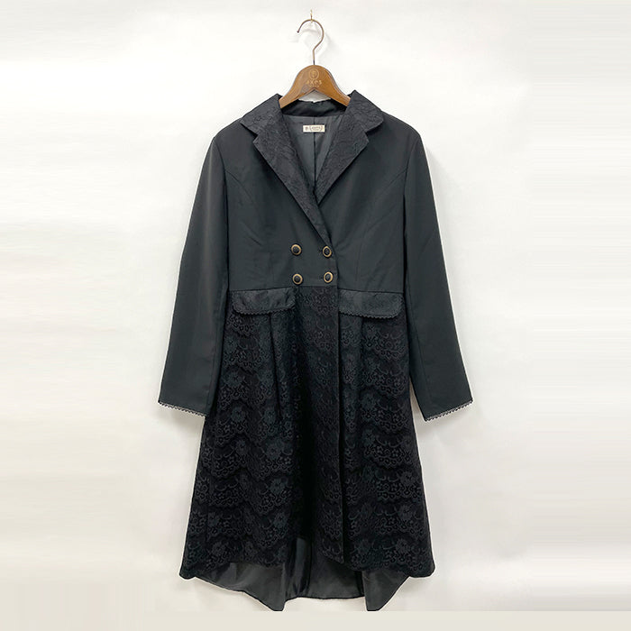 ダブルボタンデザインがクラシックな印象のロングコート。ジャケットのような素材感で秋口や春先の涼しくなってきた気候にぴったりです♪ウエスト切替から下はレースを生地にボンディングし、ゴージャスなデザインに。若干はりのある生地の為フィッシュテールのデザインがより映えます。ブラウスやシャツワンピースと合わせたシックなコーデがおすすめ。