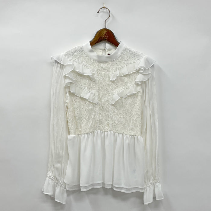 繊細な柄のレース生地を使用した、フリルデザインのブラウスです。