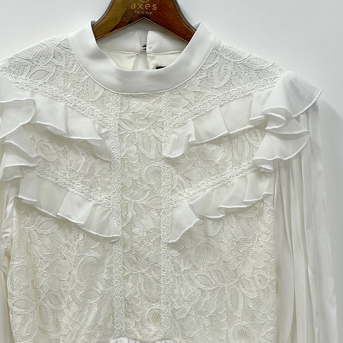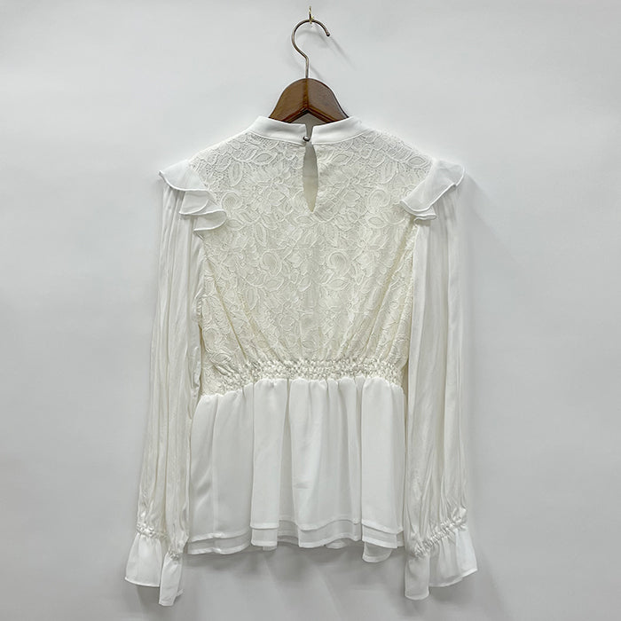 フリルレース切替ブラウス