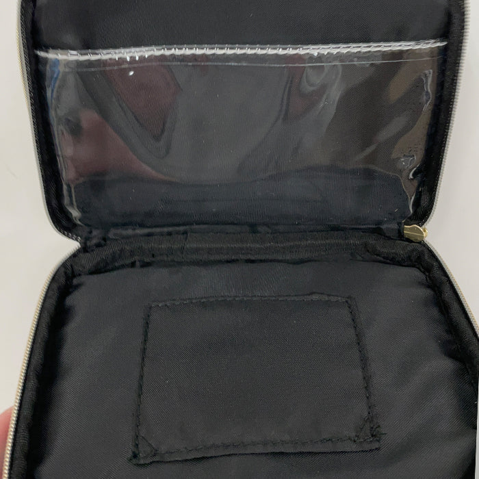 側面には簡易クッション入りで、クリアポケットにお気に入りの写真やアクリルスタンド等を入れても◎。鍵や台座など小さいものを入れられるミニポケットも付いています。