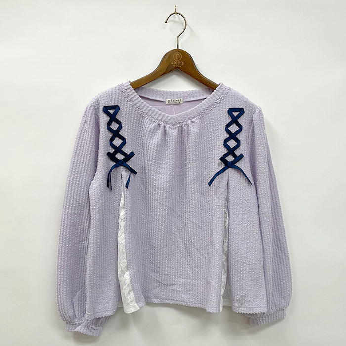 胸元レースアップデザインがポイントのカットプルオーバーです。