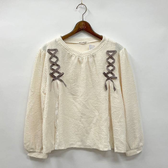 胸元レースアップデザインがポイントのカットプルオーバーです。
