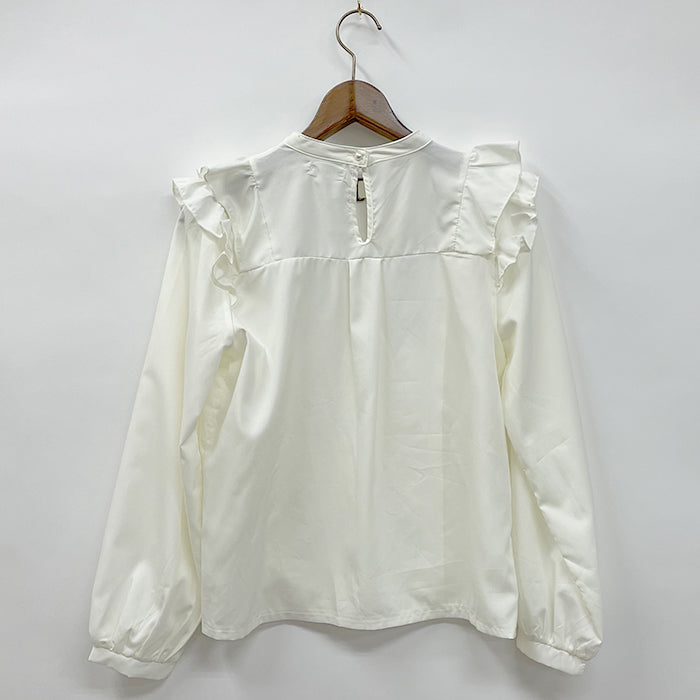 存在感のある肩フリルでほどよい甘さをプラス。