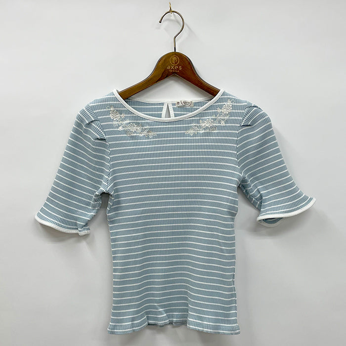 刺繍入りボーダーリブPO
