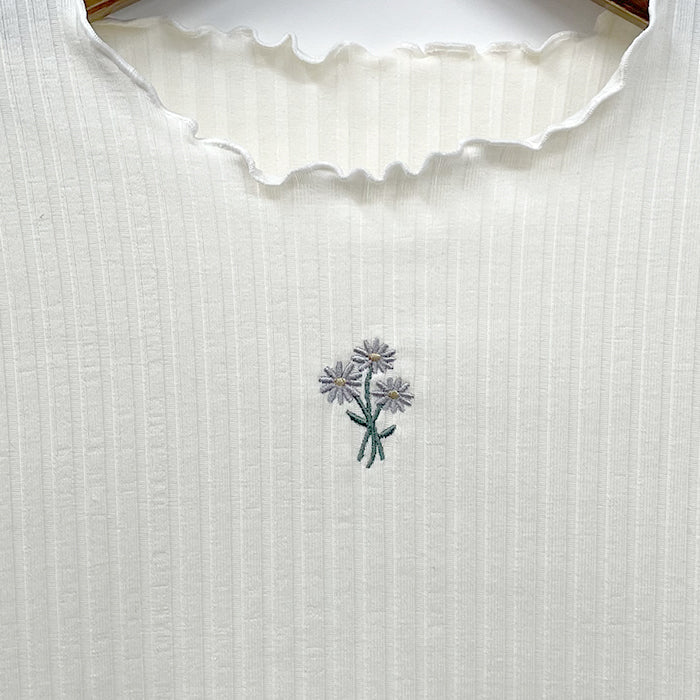 マーガレット刺繍リブトップス