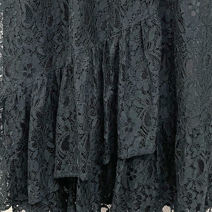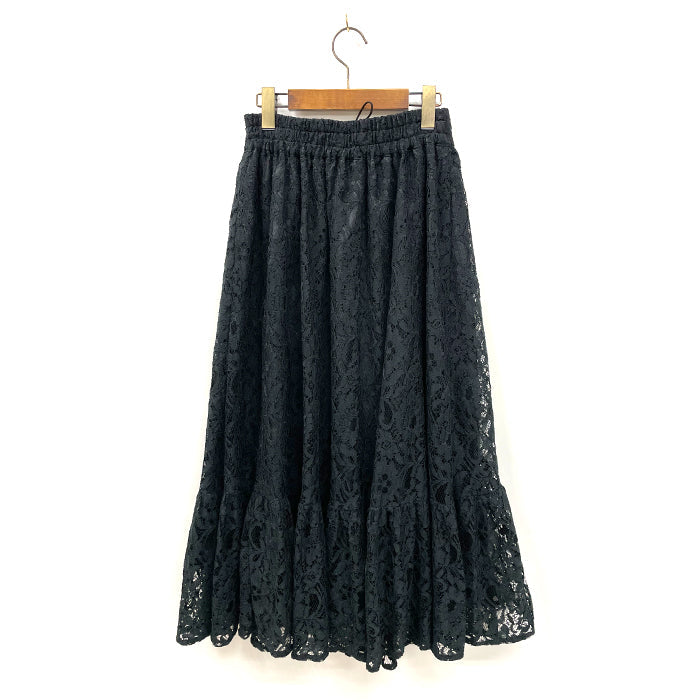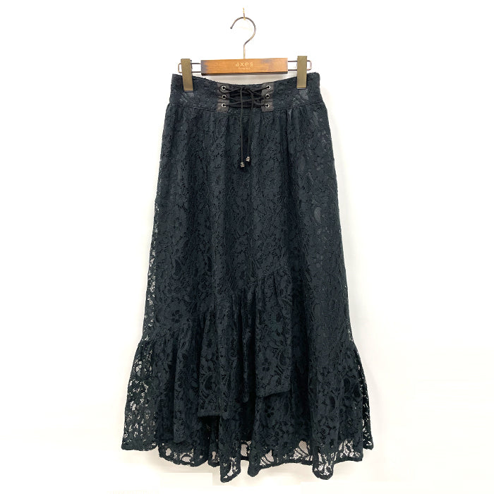 エレガントなレースを使用した総レースのミディ丈スカート。裾切り替えやまきスカート風のデザインでaxesfemmeらしく仕上げています。ウエストのレースアップがポイントでインスタイルがおすすめです。ゴム入りでゆったりとしたサイズ感のためニットとあわせるのもおすすめ。