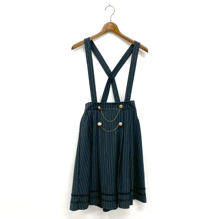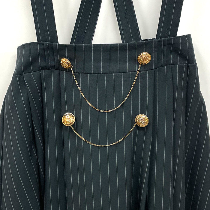 ナポレオン釦がポイントのサスつきボックスプリーツスカートです。同時発売のクラシックカレッジブラウス(CI81X02S)と相性も良く、短すぎない丈がAWのトレンド◎