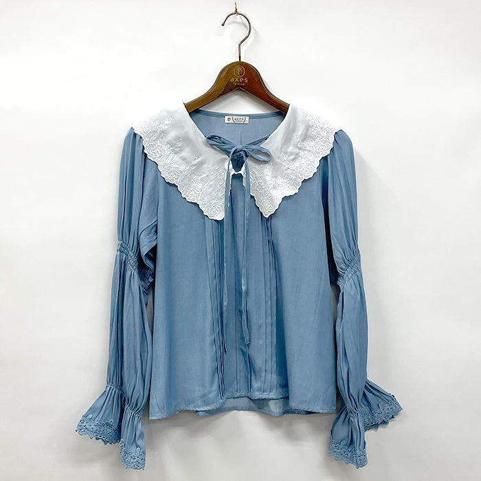 トレンドの着こなしにぴったりなビッグ襟デザインのブラウスです。