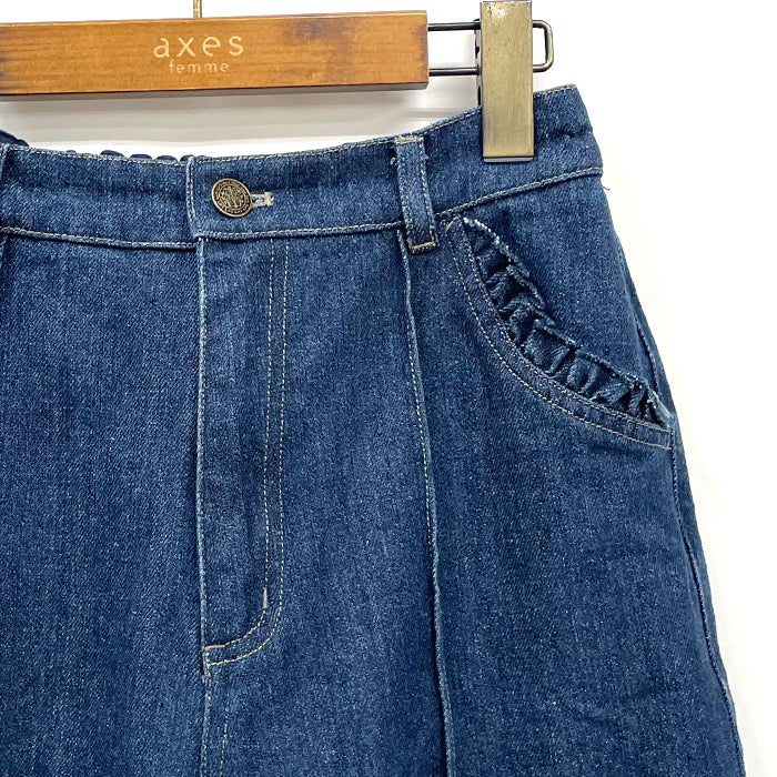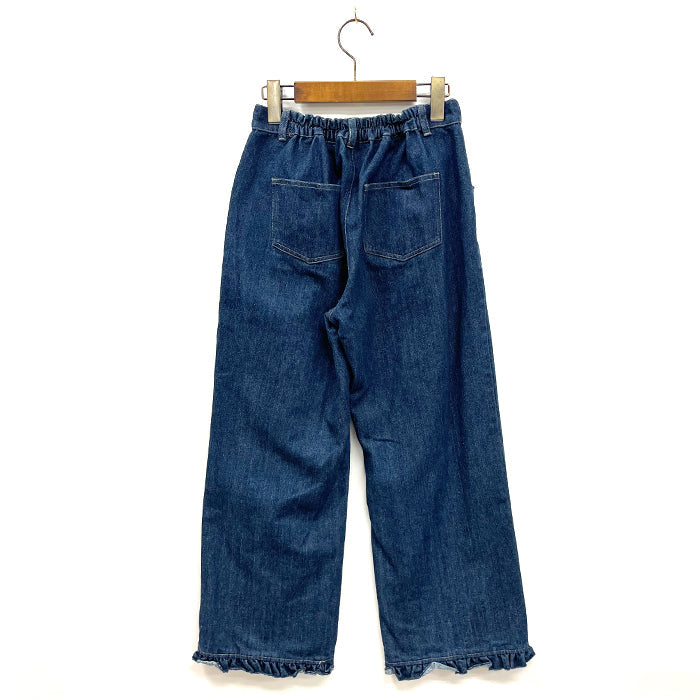 ハイウエストデザインにセンタータックが入った脚長効果があるパンツ。フロントポケット口と裾にフリルがあしらわれたガーリーなストレートパンツです。通年着用頂ける素材感で、トレンドに左右されないデザインです。