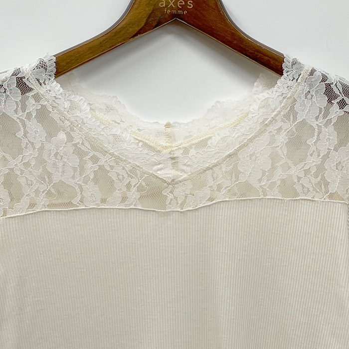 ヨークと袖口に繊細なレース生地を使用したインナートップスです。
