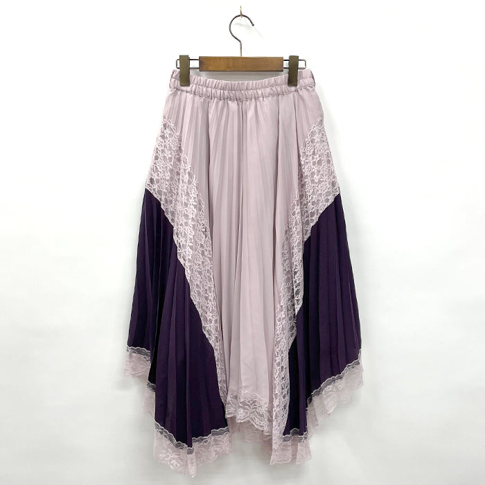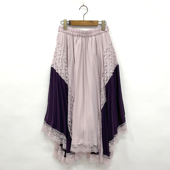 イレギュラーヘムデザインが可愛いプリーツスカート。バイカラー・レース使いがaxesfemmeらしいアイテム。ゆったりトップスを合わせてカジュアルに、ブラウスを合わせてフェミニンにも着まわせます。