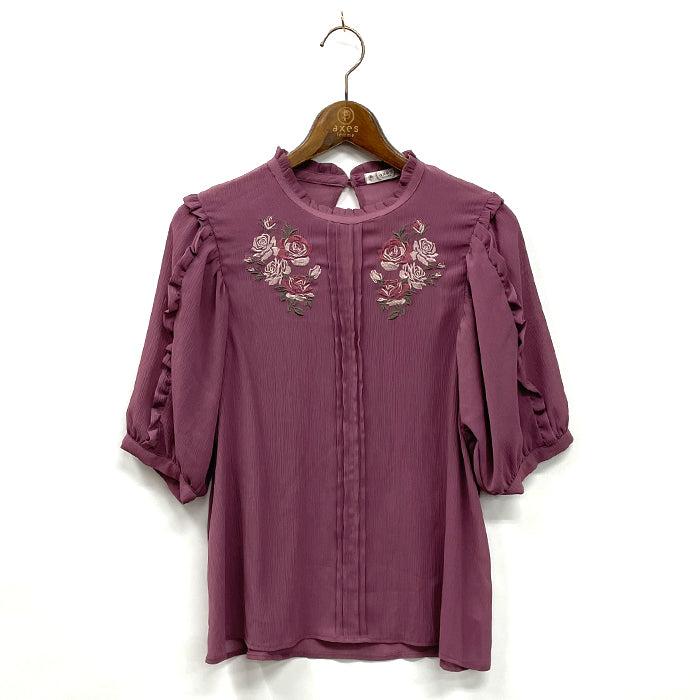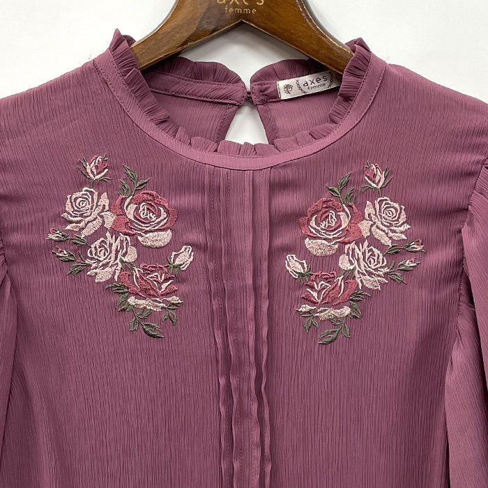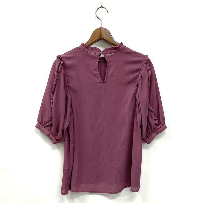 スタンドカラーが大人っぽく、控えめなプチフリルのデザインが上品さを一層引き立ててくれます。