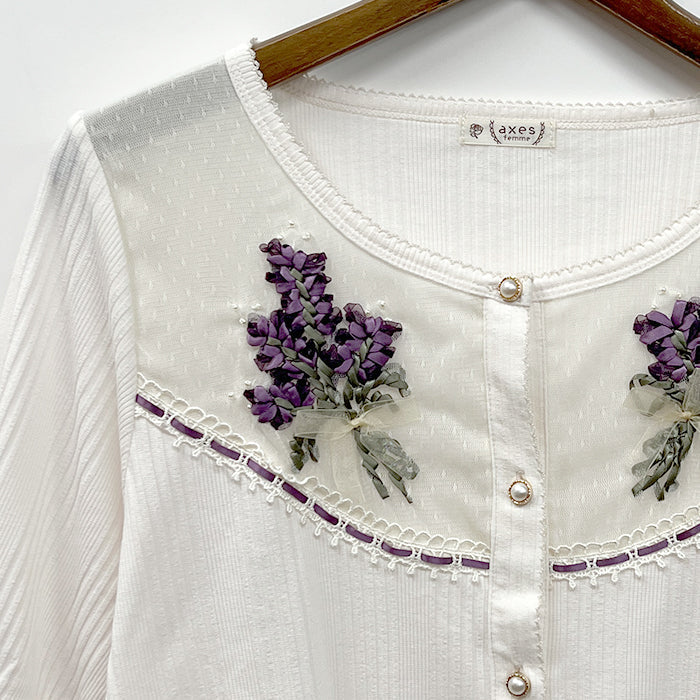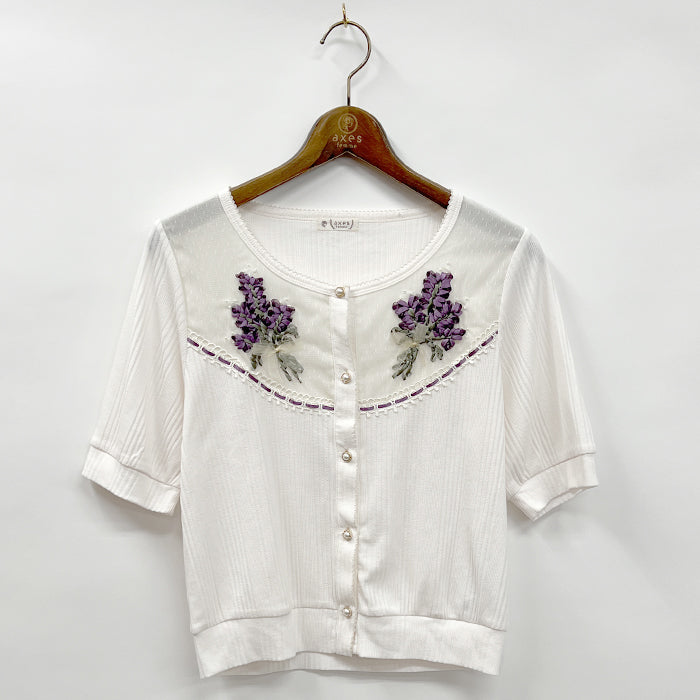 ラベンダー刺繍リブカーデ