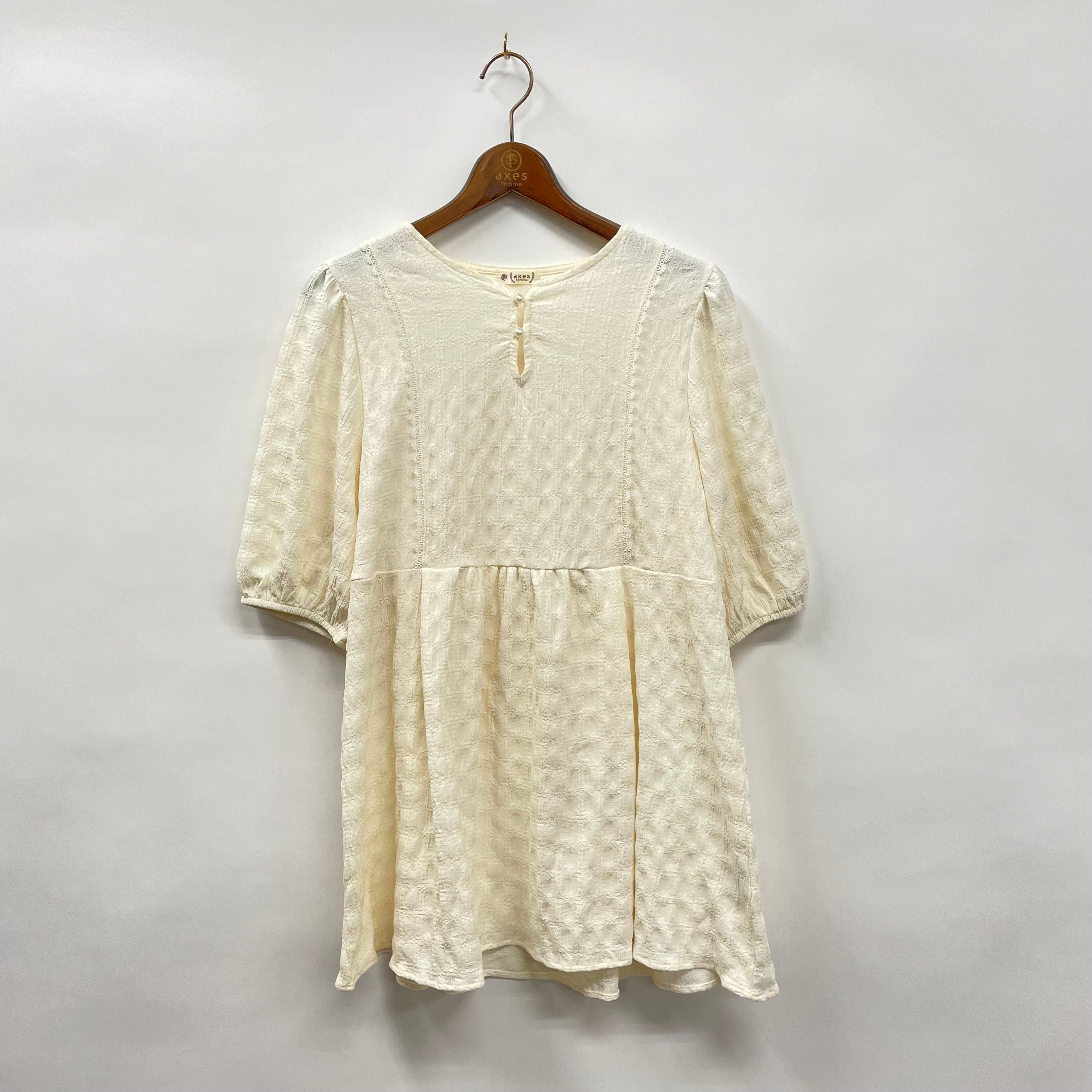 ぽこぽこした表面感のある生地がトレンドライクなカットチュニックです。