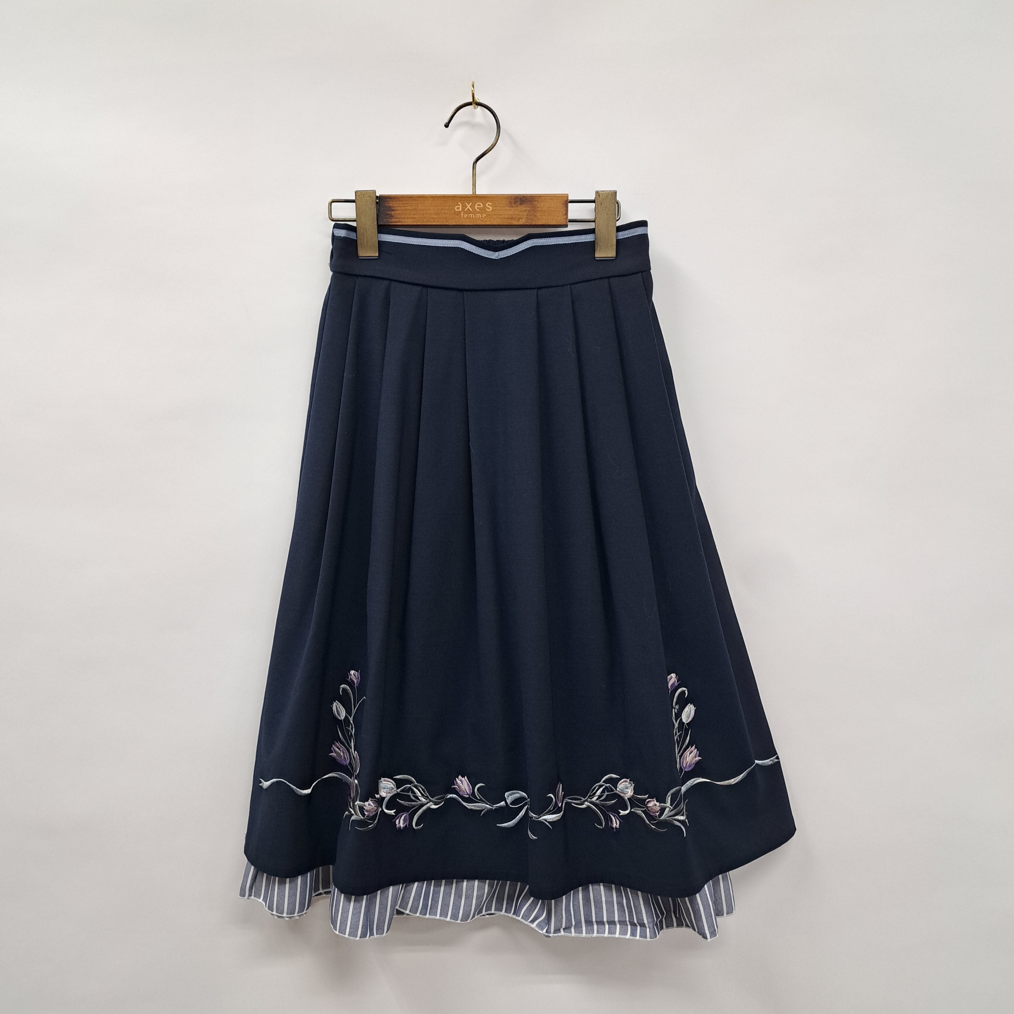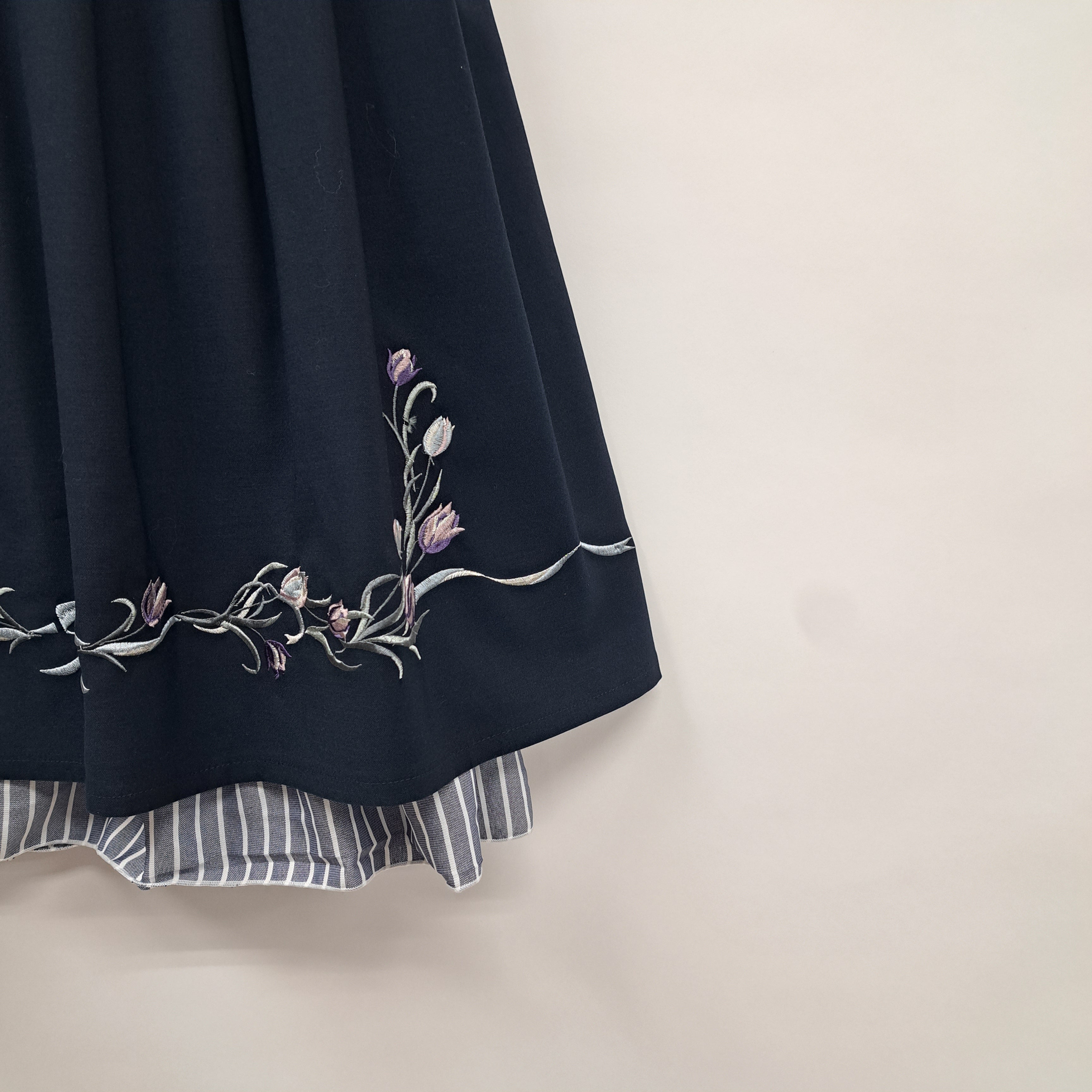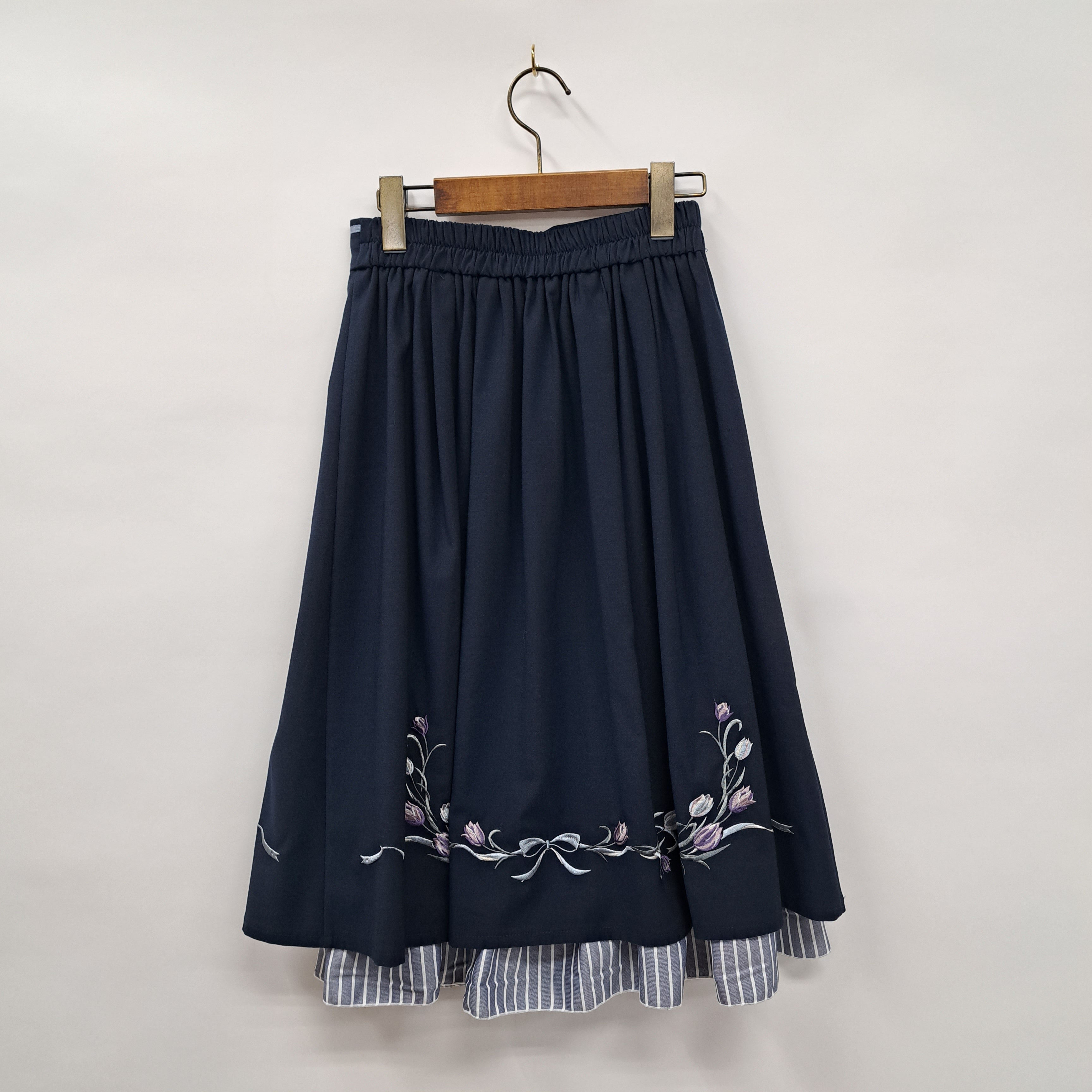 裾を華やかに彩るチューリップブーケの刺繍が目を惹くスカートです。
