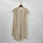 ロング丈なので前ボタンを閉じてインナーやペチなどを合わせワンピース風に着こなしても◎。