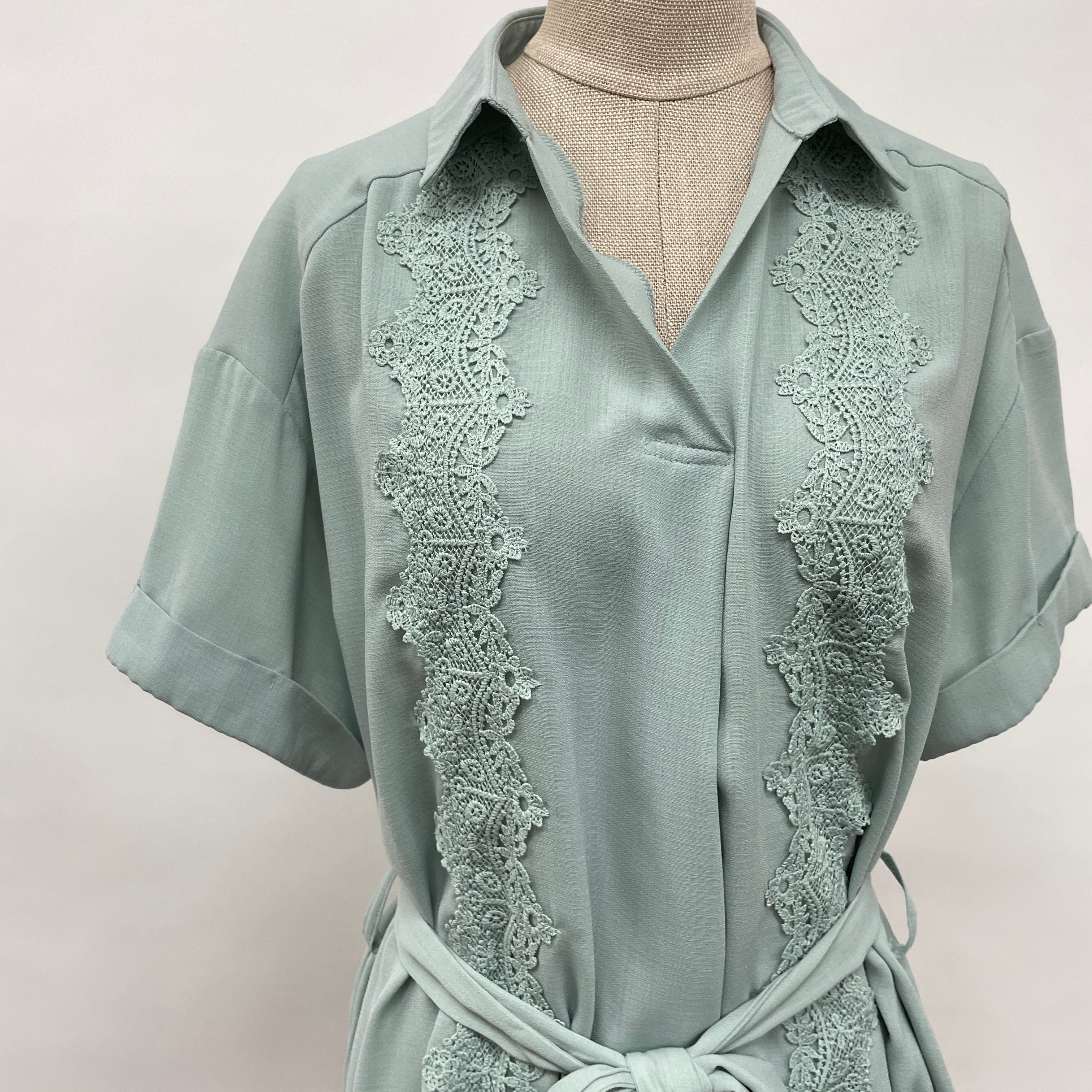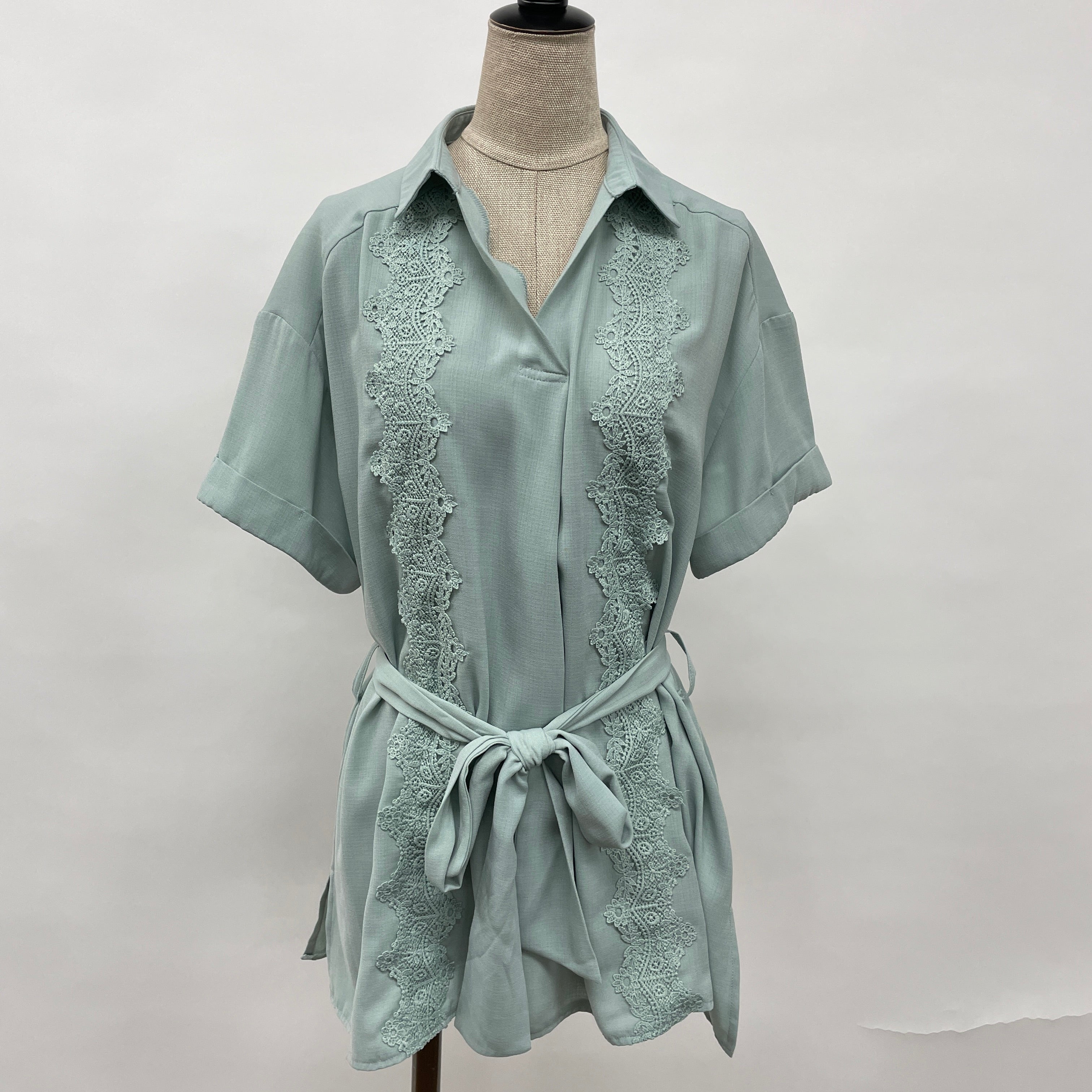 モチーフレースがポイントのシャツチュニック。やわらかくとろみのある素材で着心地◎さりげないレースデザインが大人可愛いを演出してくれます。