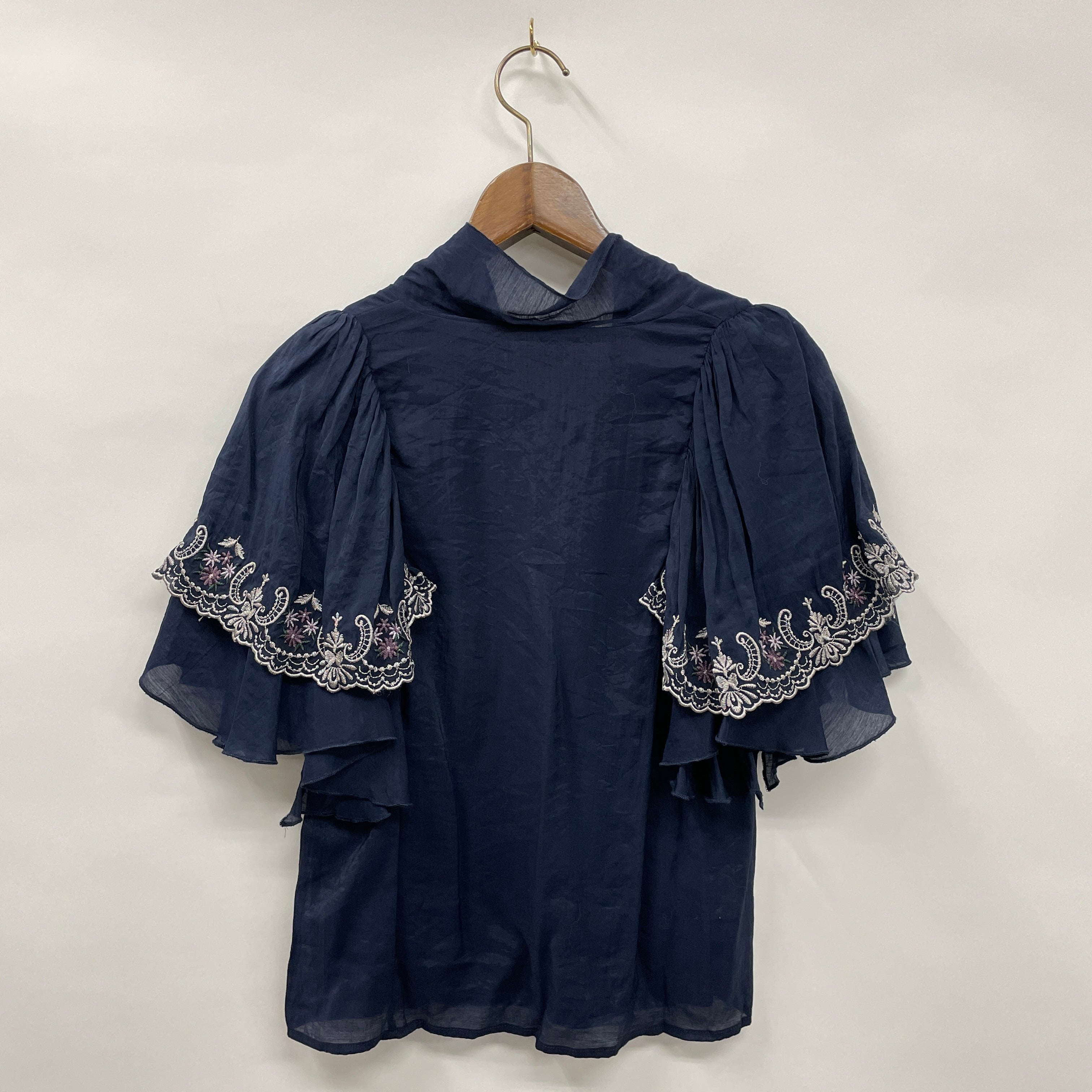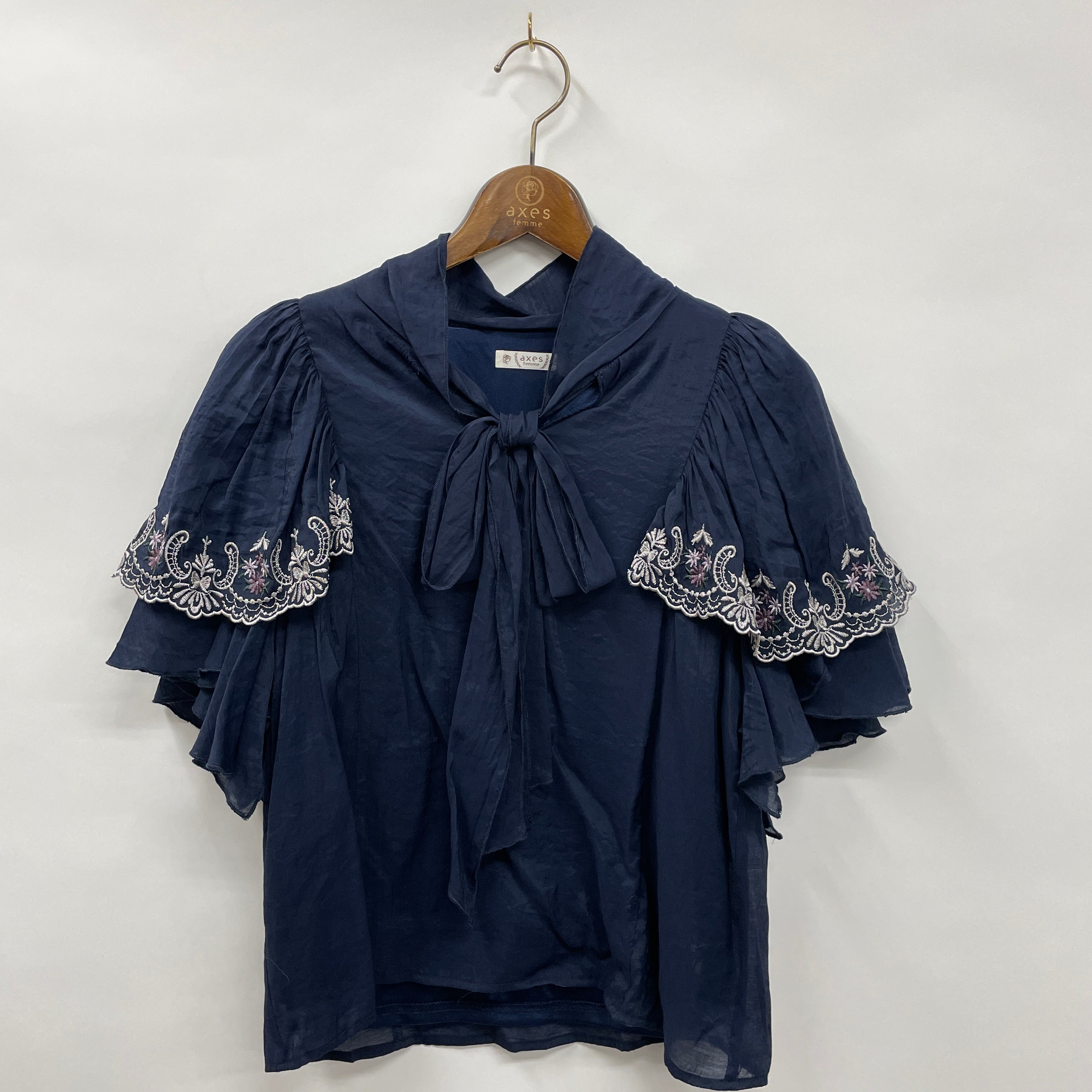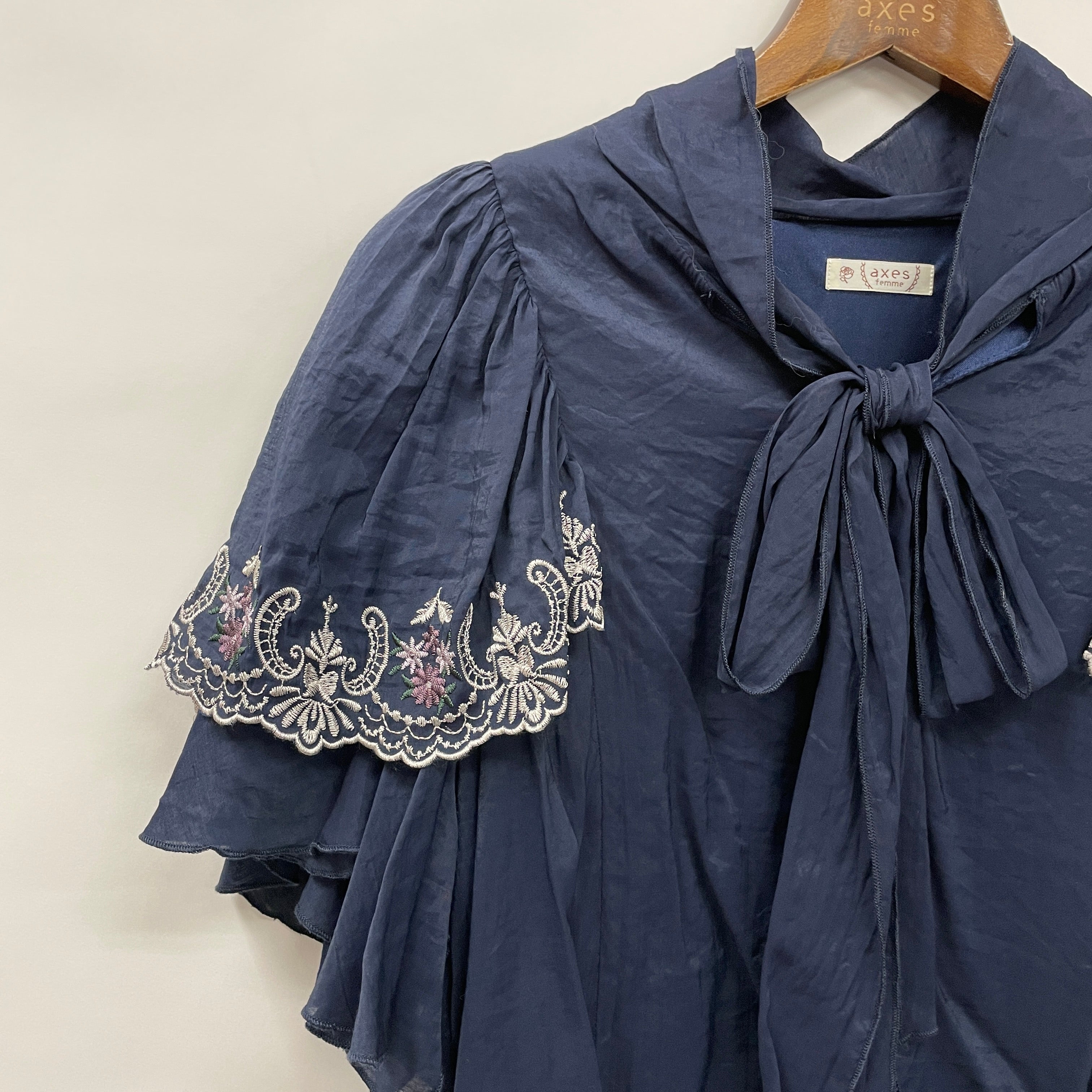 フレアスリーブにあしらわれたアンティークなフラワー刺繍がはなやかなブラウスです。