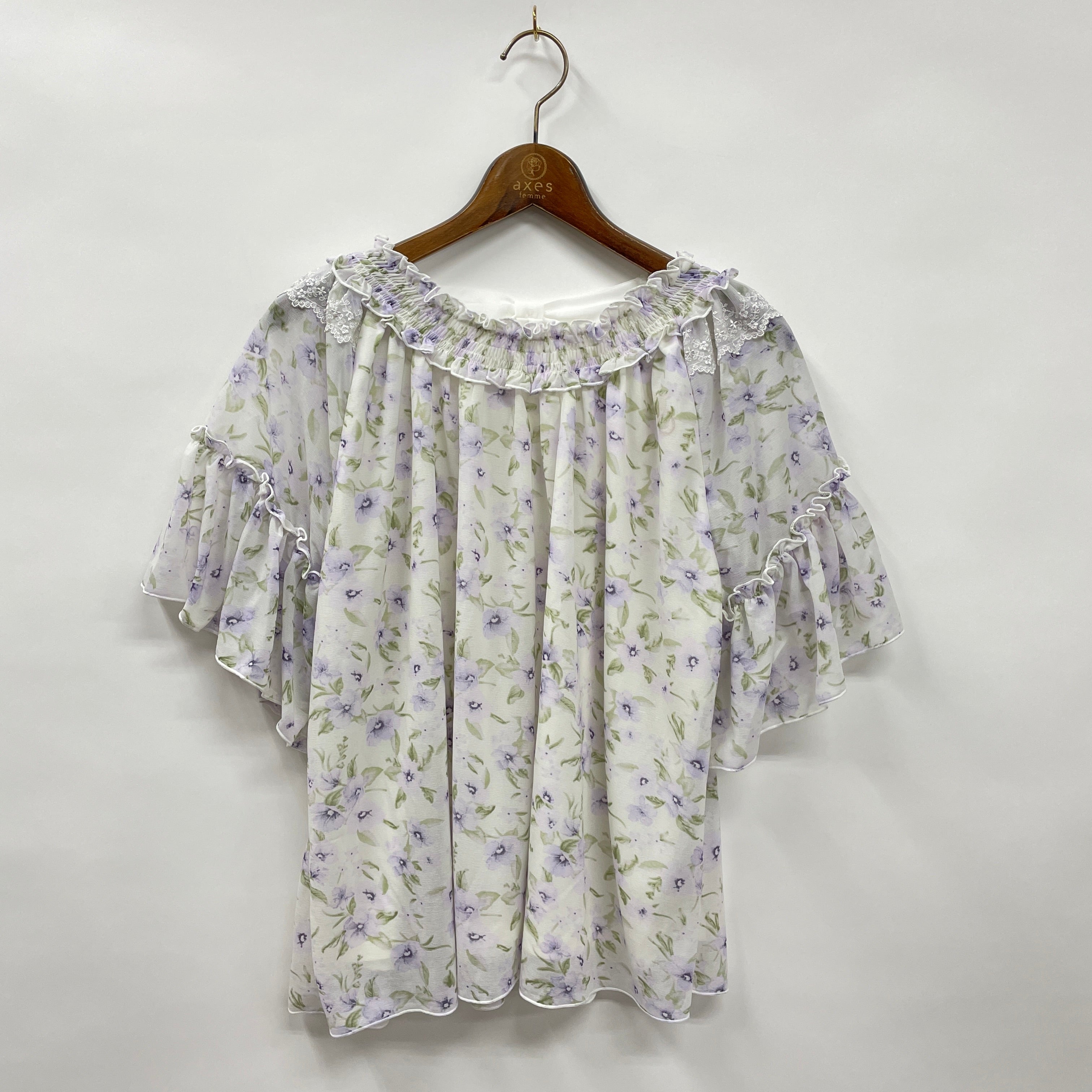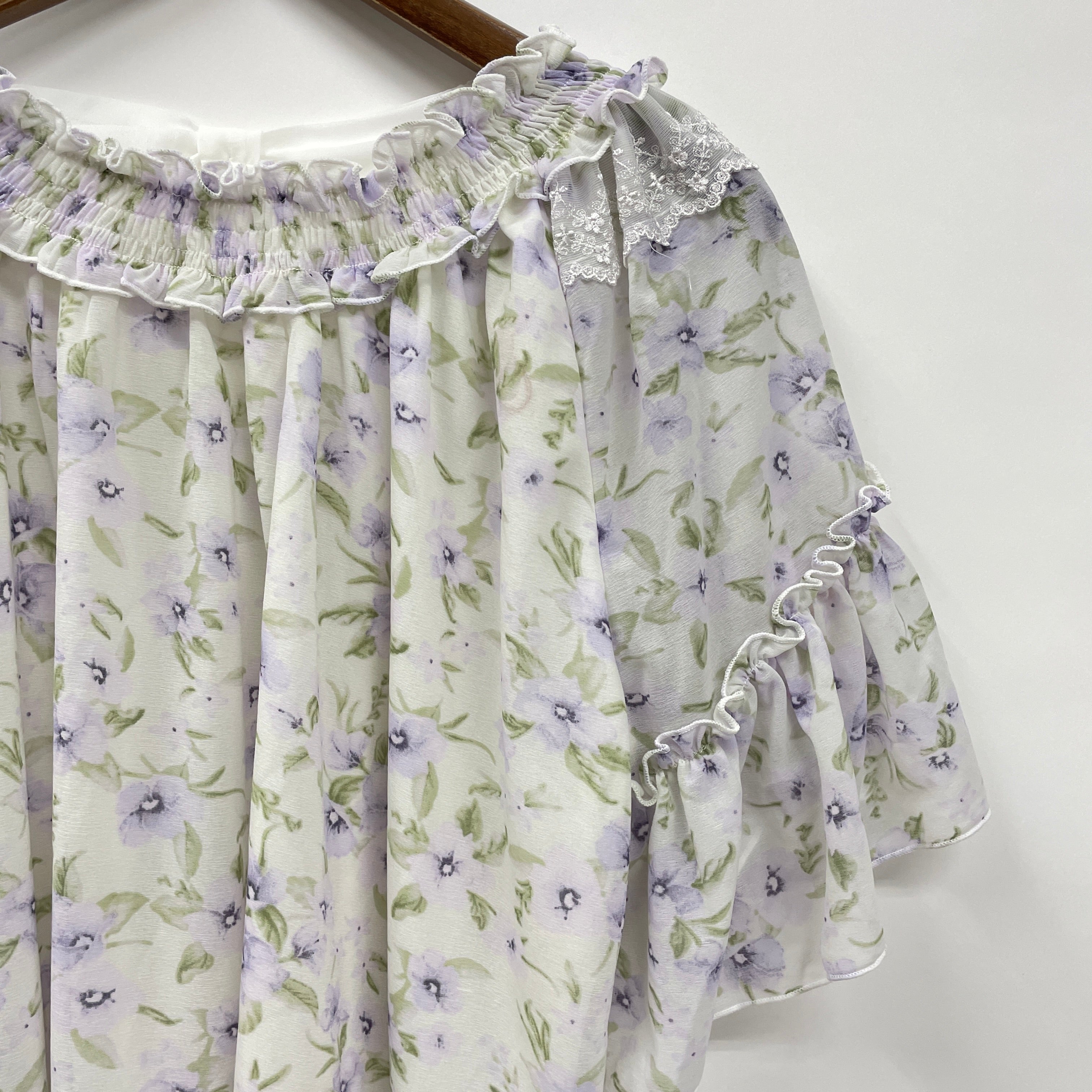 フレア袖とフェミニンな肩のレース使いがポイントのエスパンディPOです。
