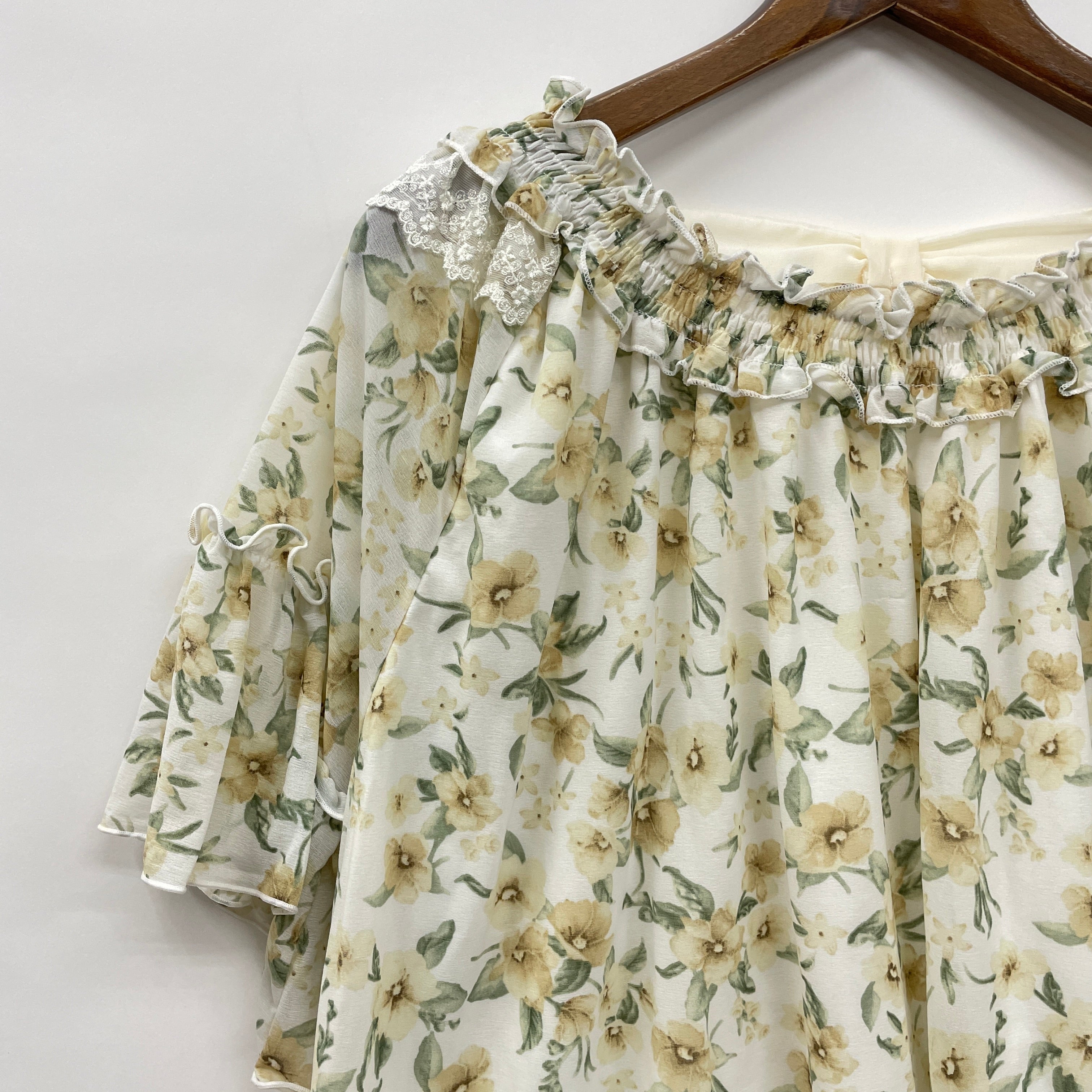フレア袖とフェミニンな肩のレース使いがポイントのエスパンディPOです。