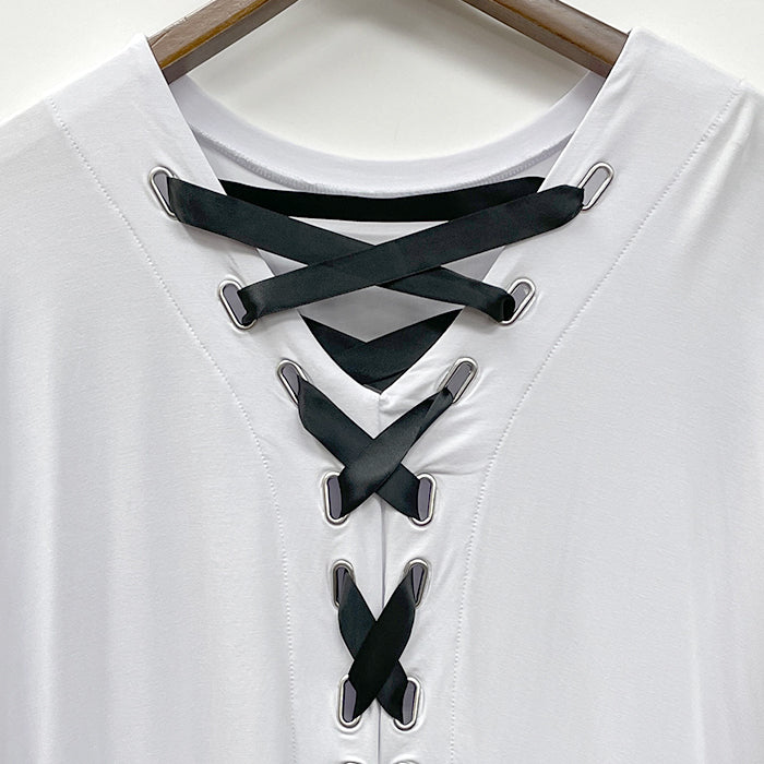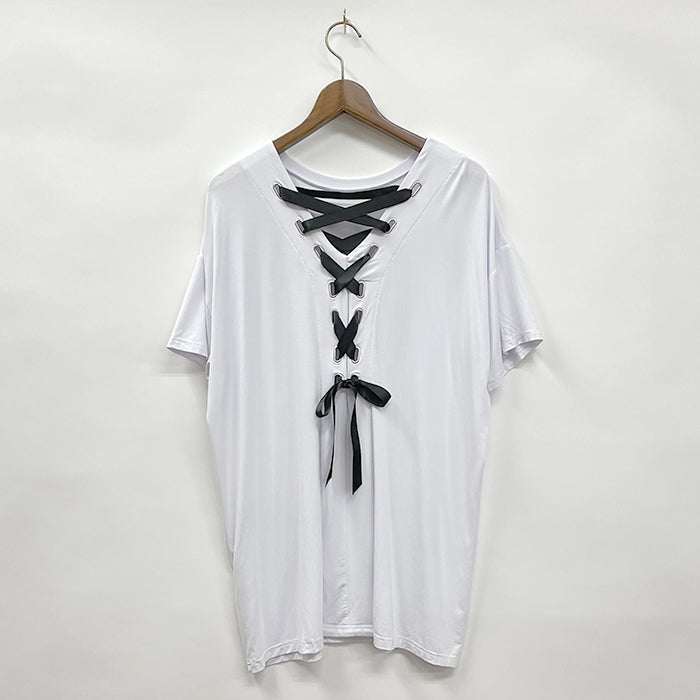 こちらはベルトデザインショートパンツと合わせたコーデがおすすめです。落ち感のあるビッグTシャツはしっかりとした生地感のショートパンツを合わせてワンピース風な着こなしにするのが◎!