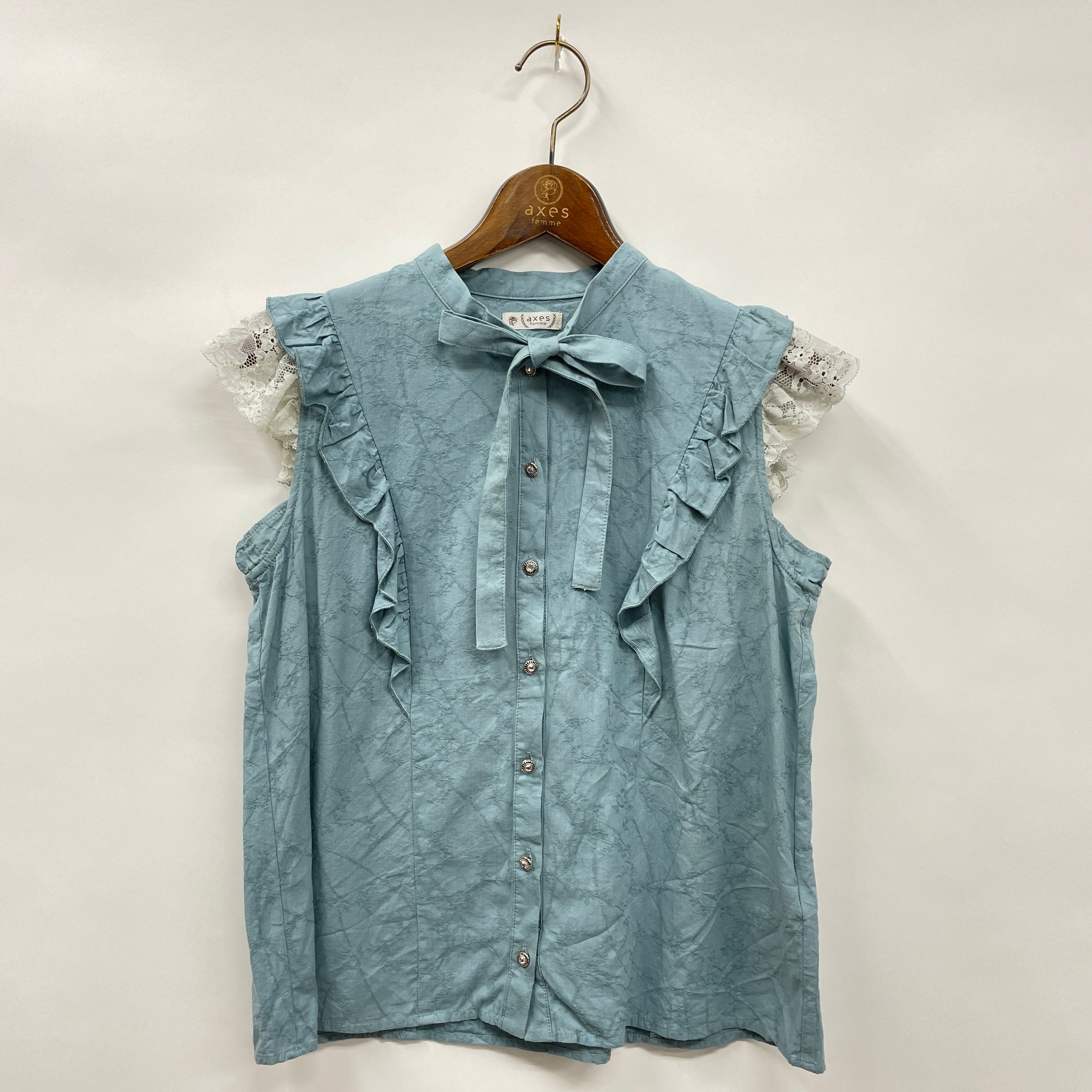フラワーモチーフを織り込んだジャカード生地を涼しげなノースリーブブラウスに仕上げました。
