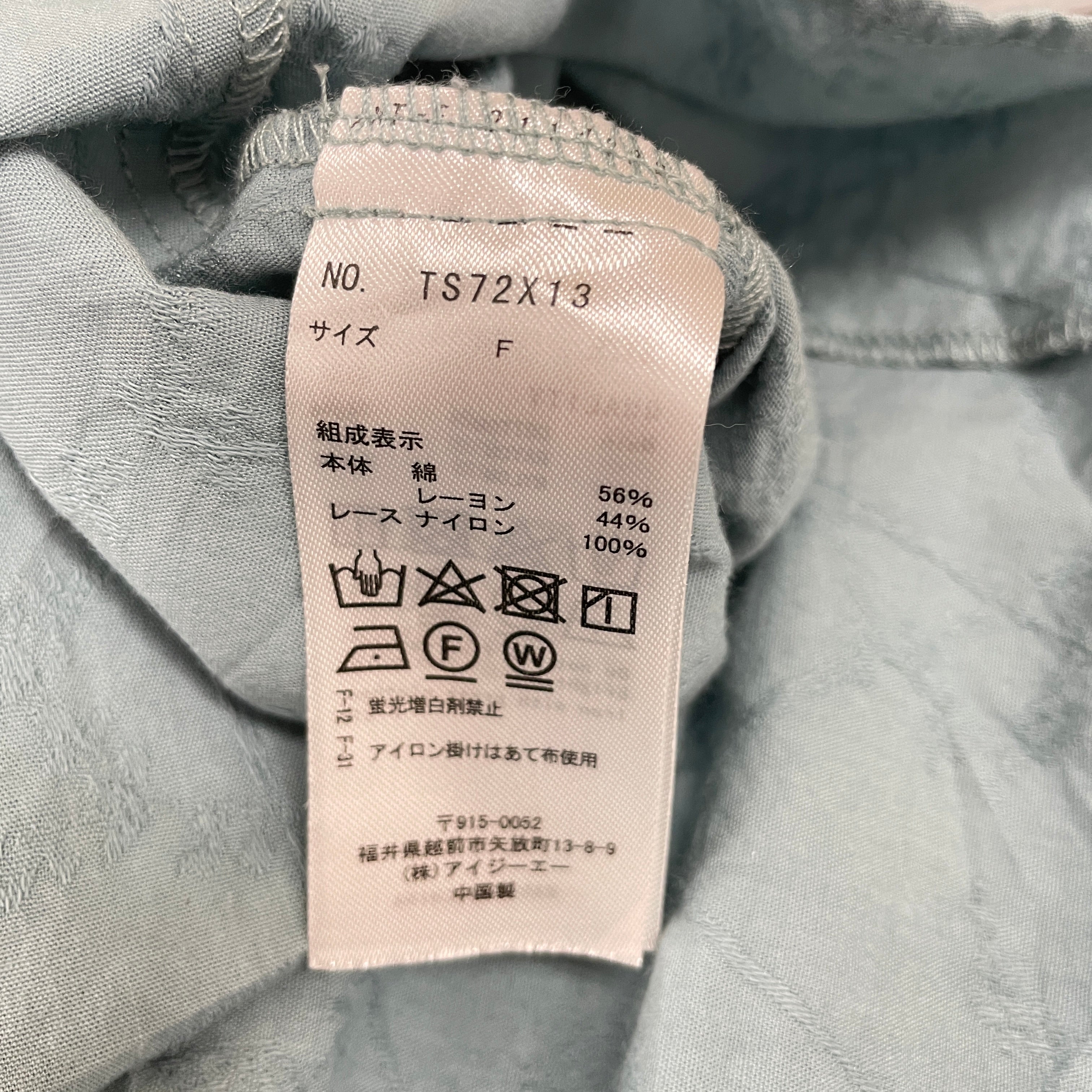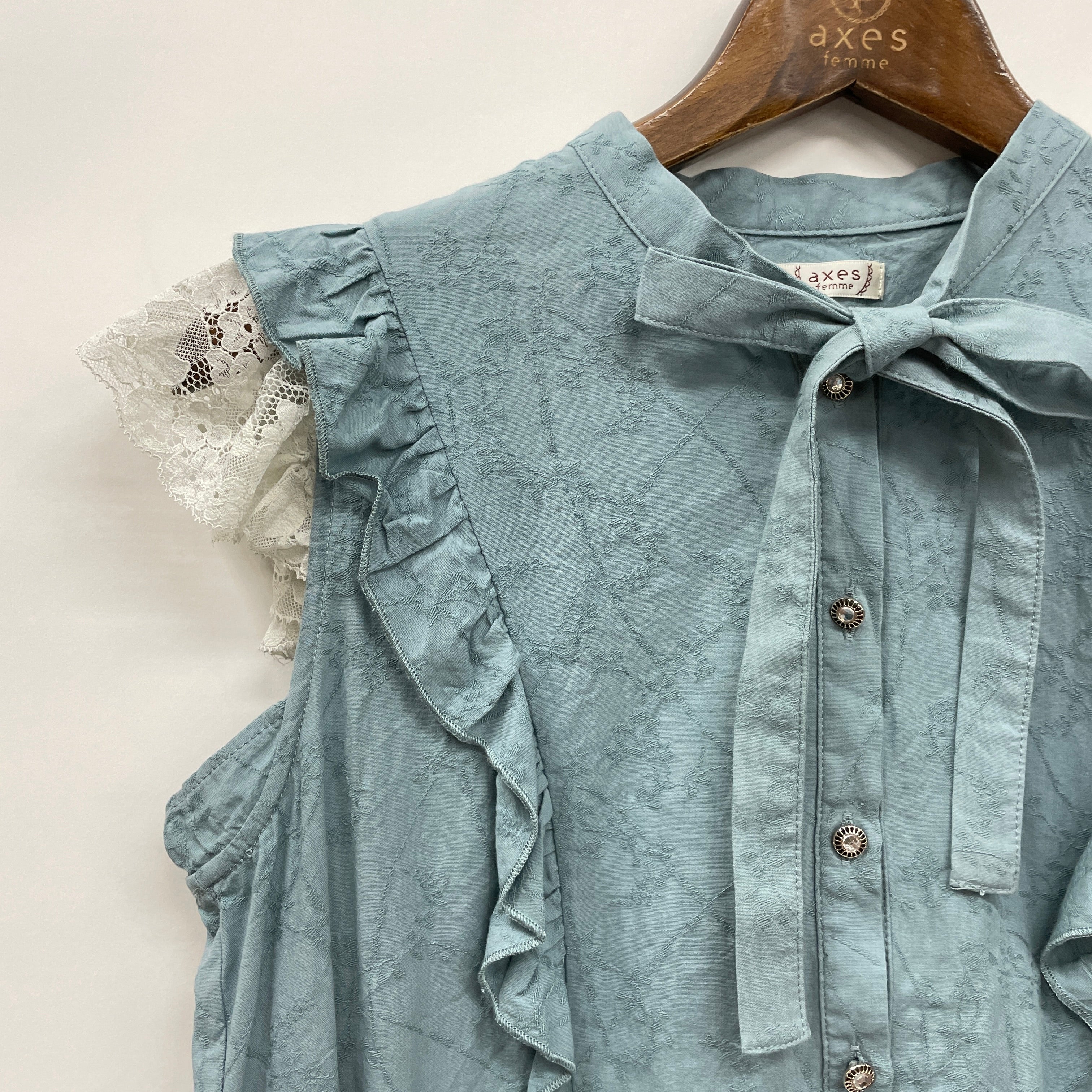 肩のフリルはレースと共生地の2枚仕立て、ボリューミーになりすぎず大人っぽい雰囲気に◎。