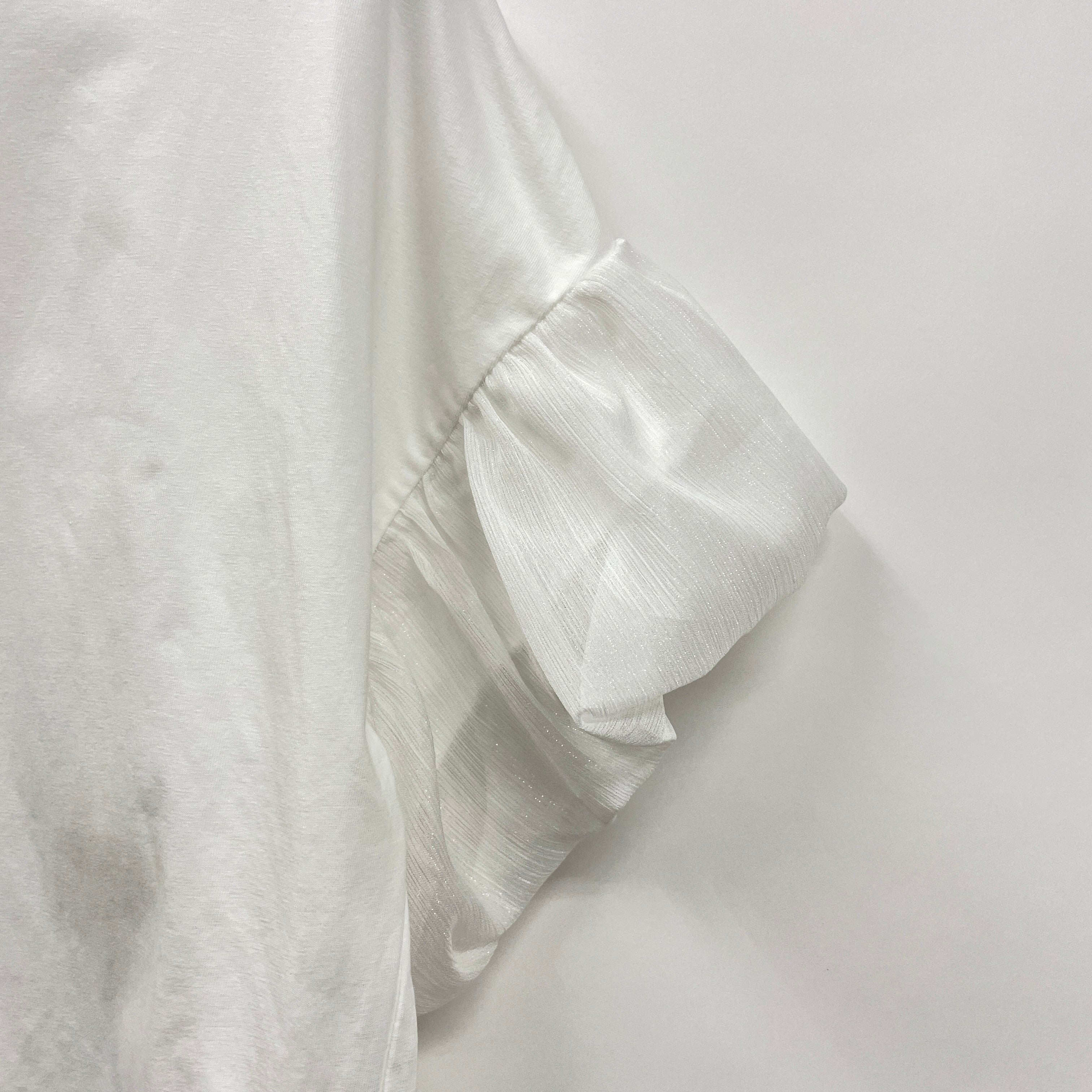 キラキラしたラメ糸混の楊柳生地との袖切替がポイントのカットプルオーバーです。