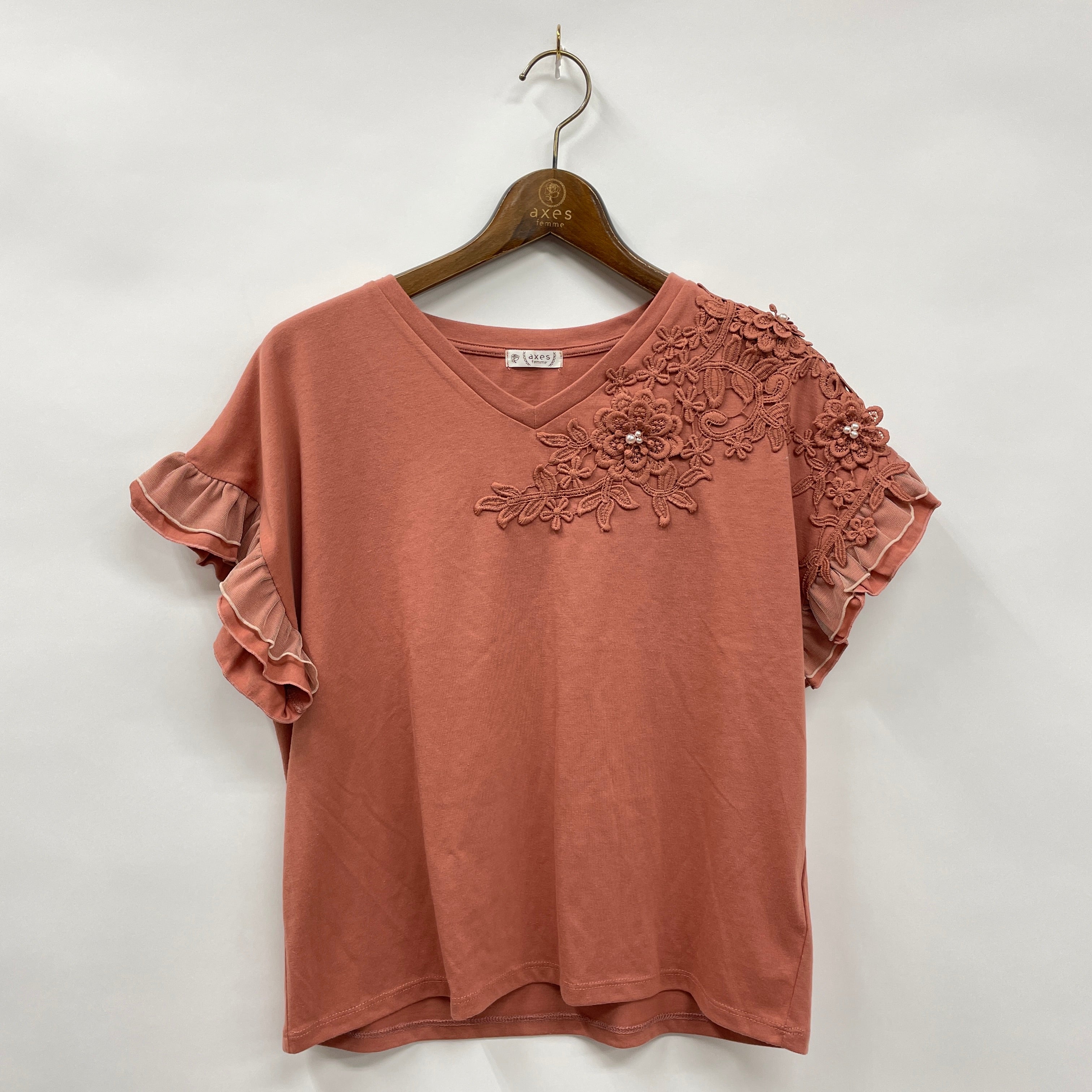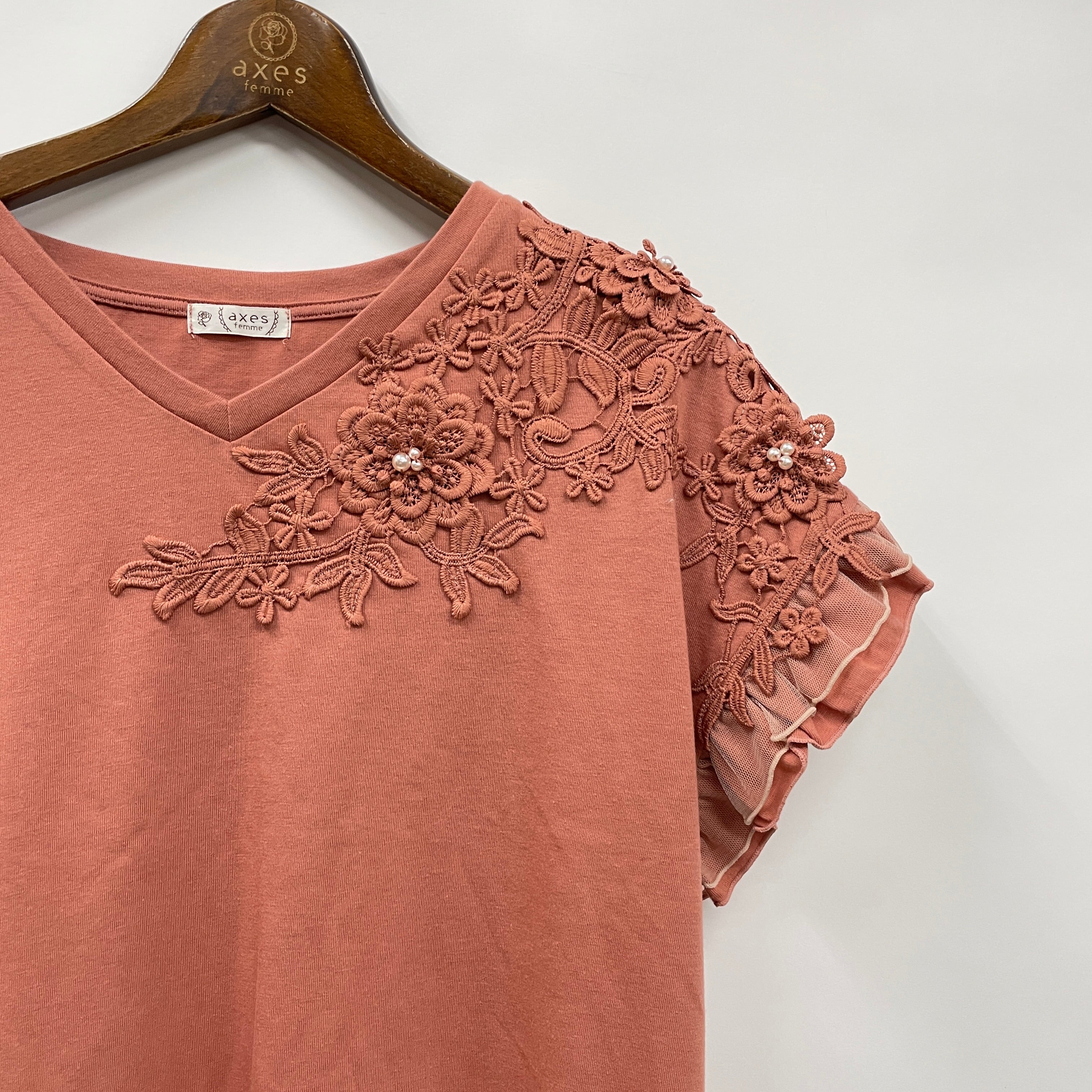 立体花モチーフレースTシャツ