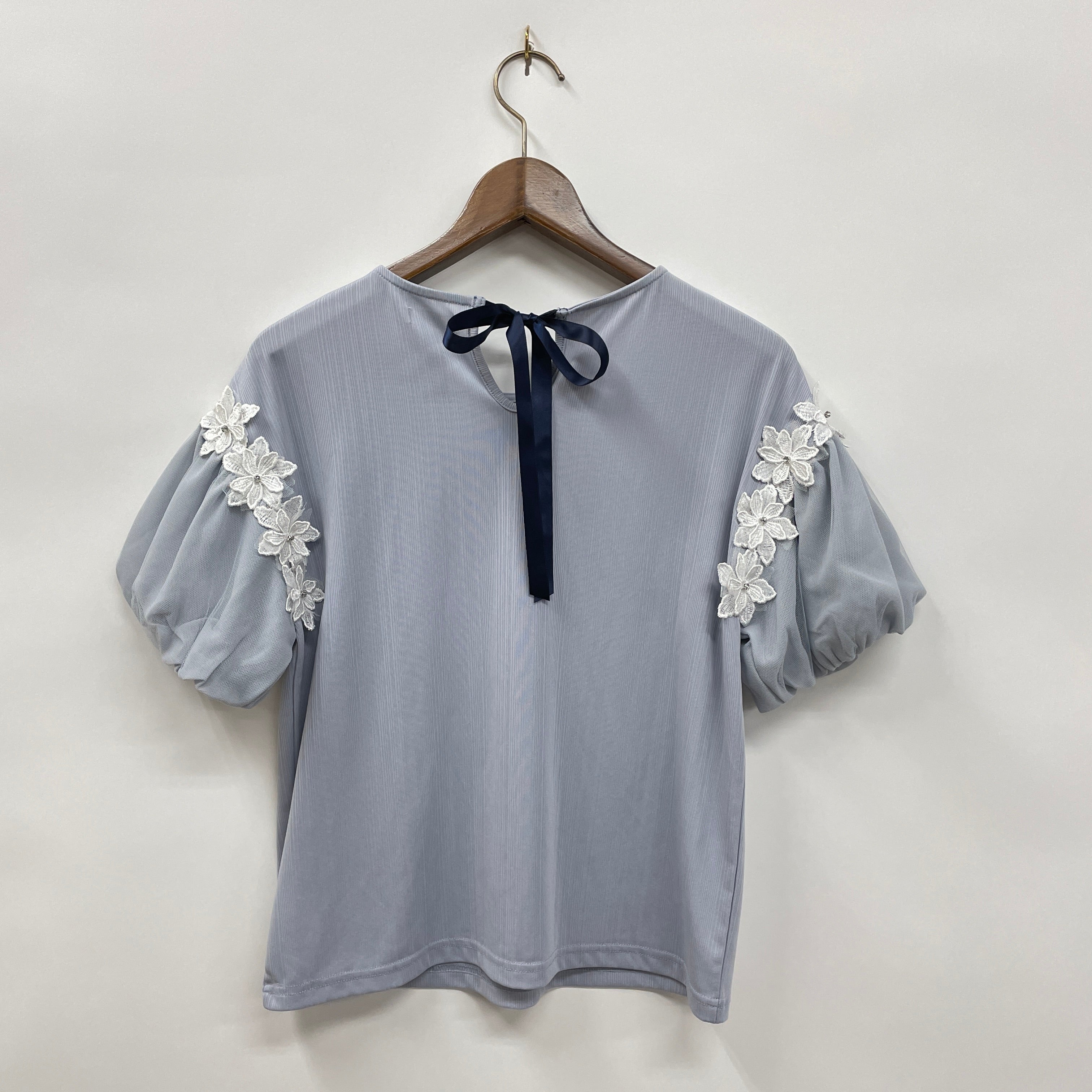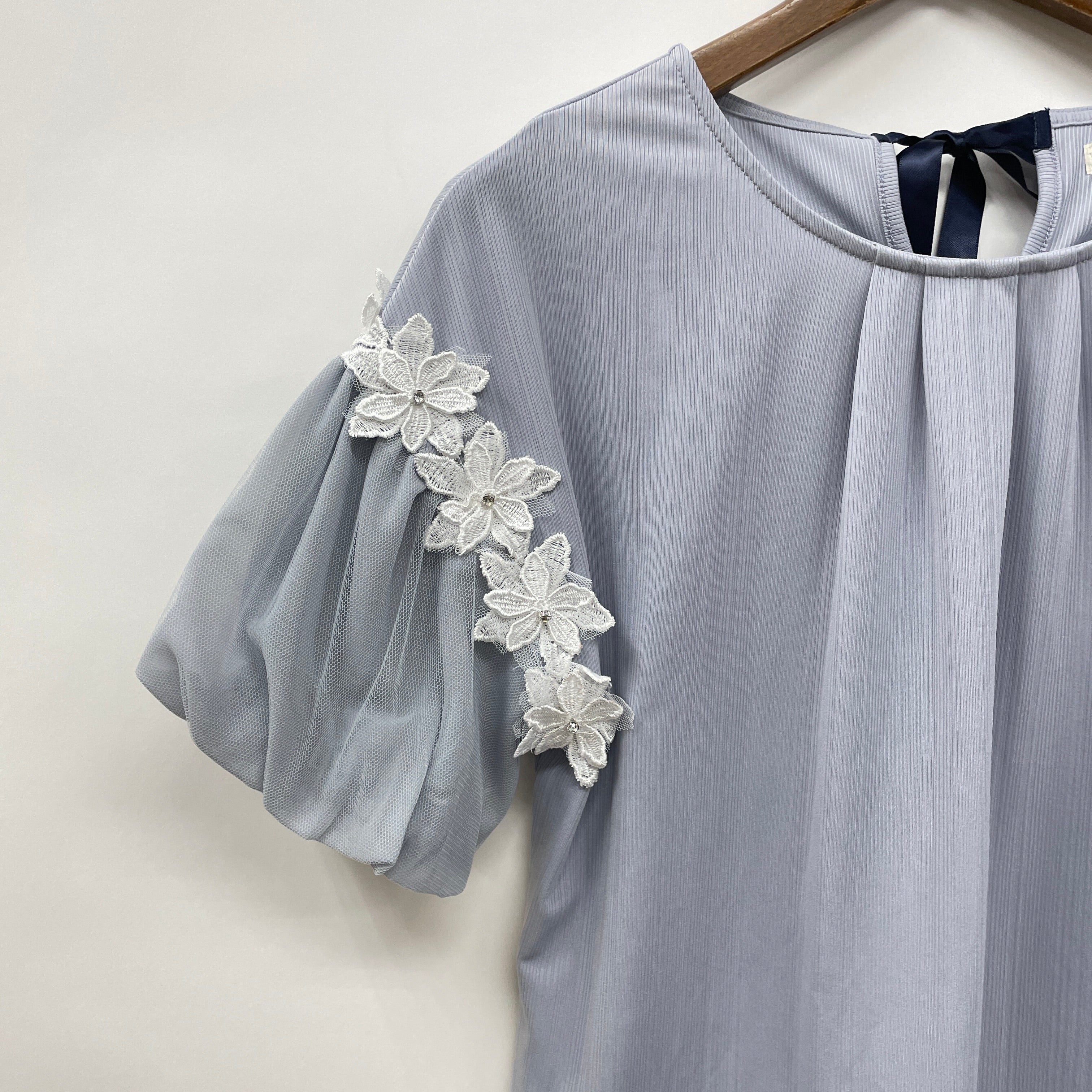 フラワーレースパフ袖リブPO