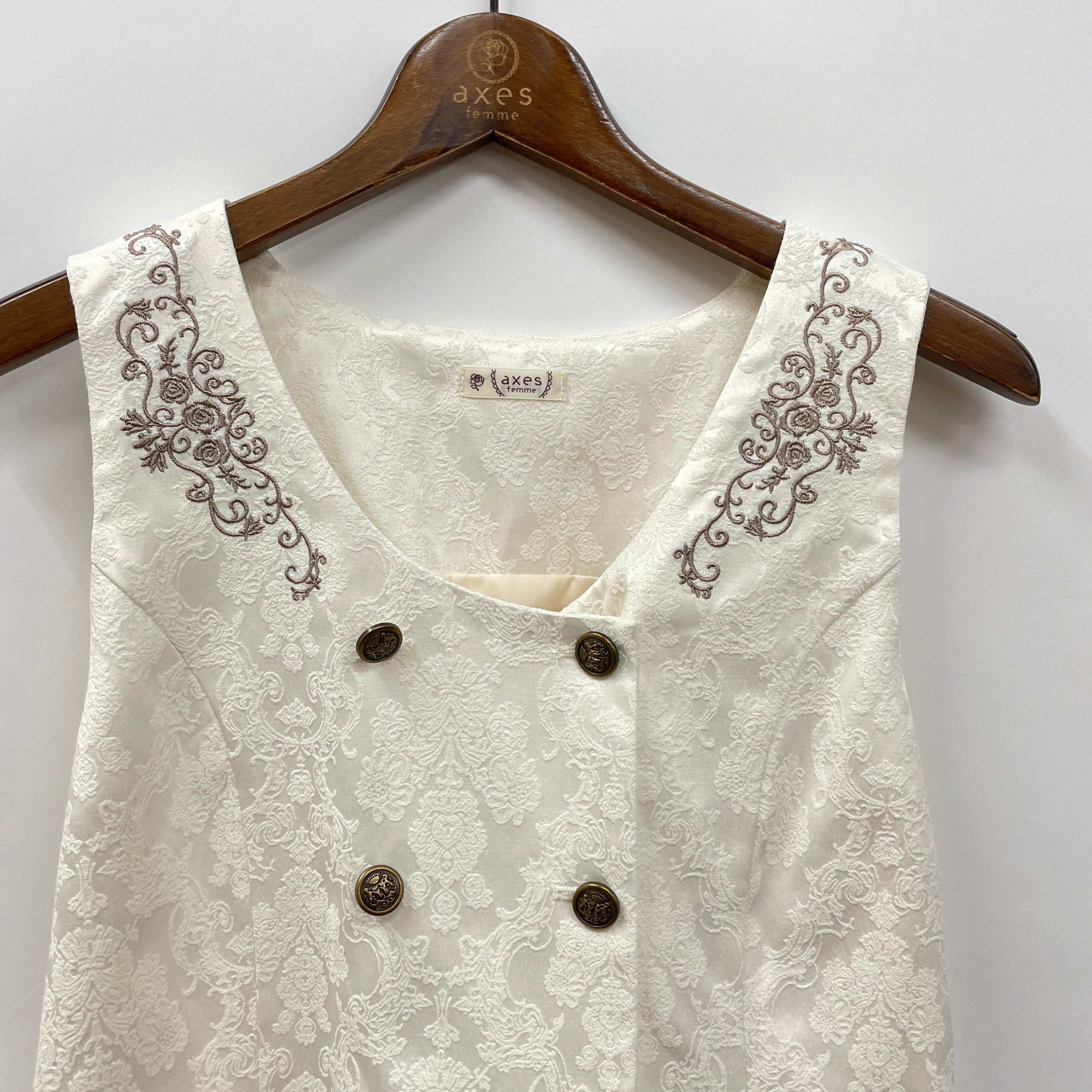 表面感のあるジャカード生地を使用し、ダブルブレストがクラシカル感満載のデザイン。