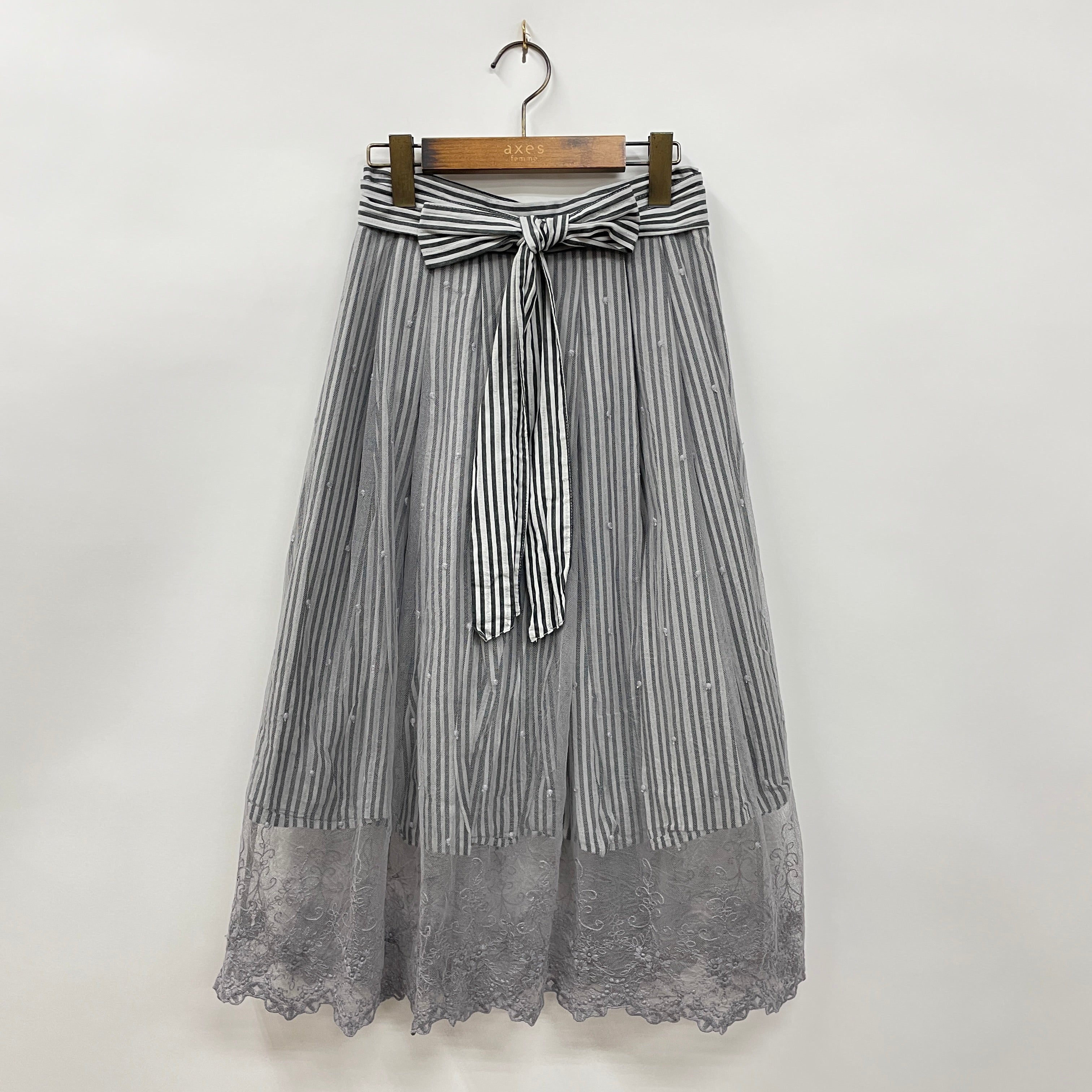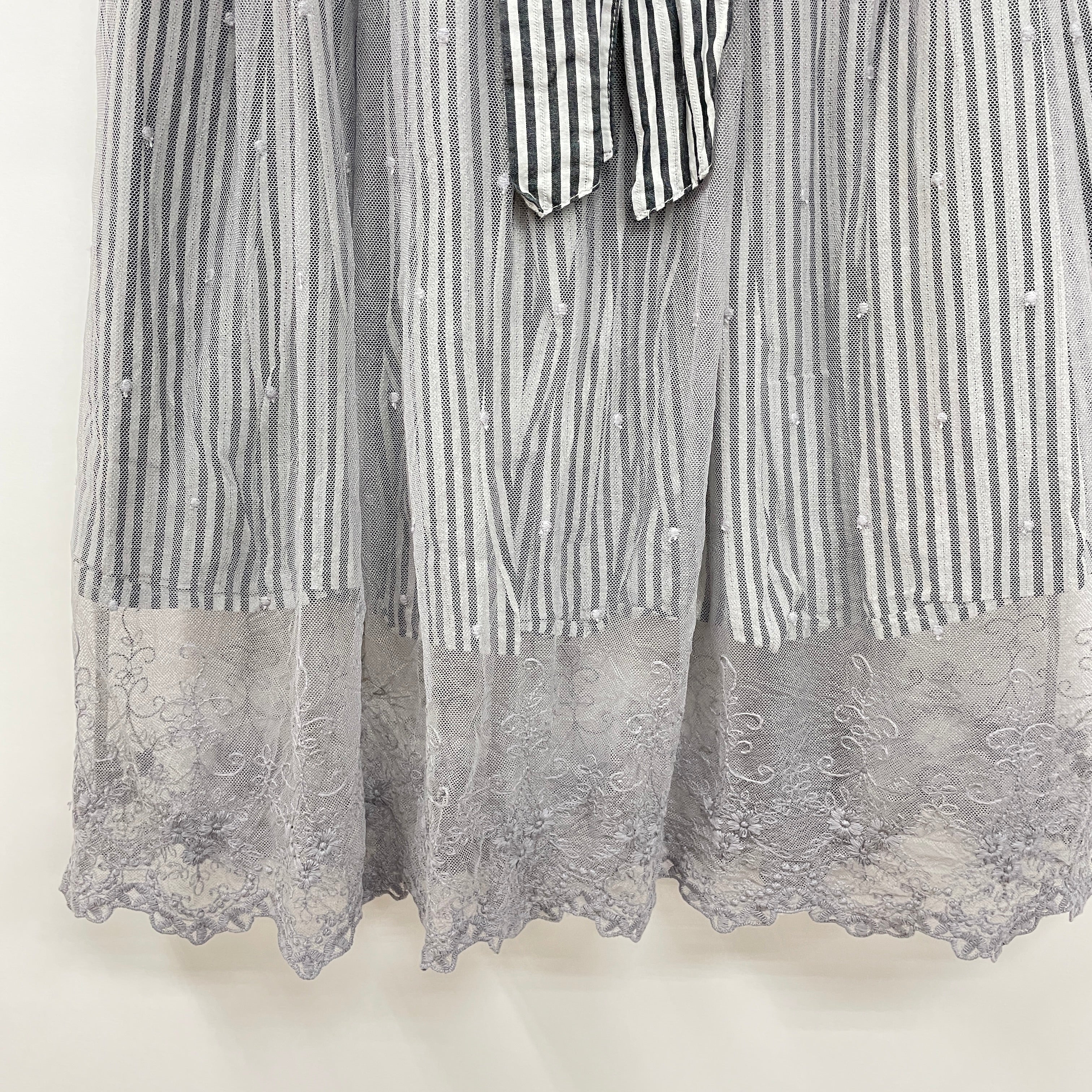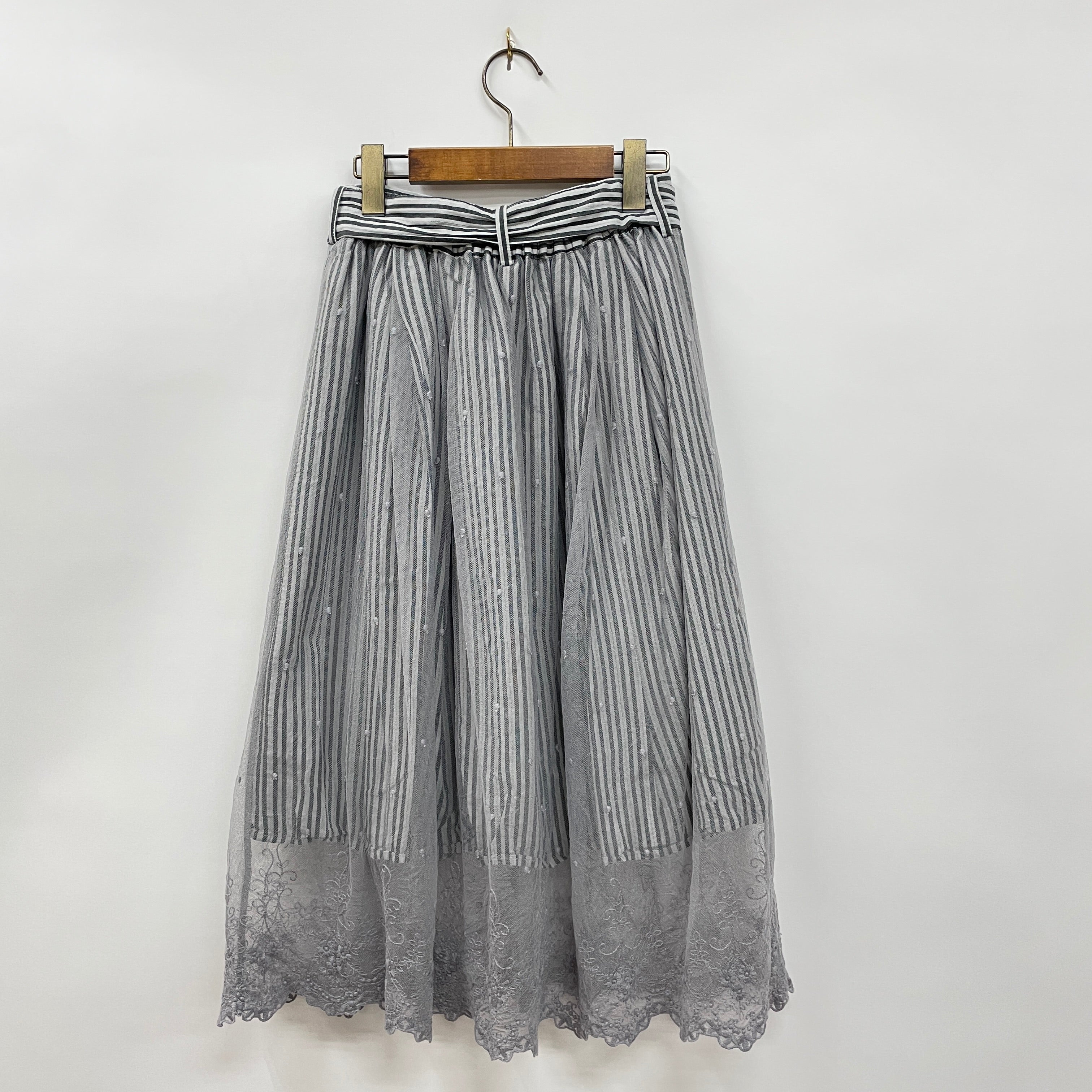 カジュアルなテイストの中にフェミニンさをプラスする、裾のチュールレースがポイント。