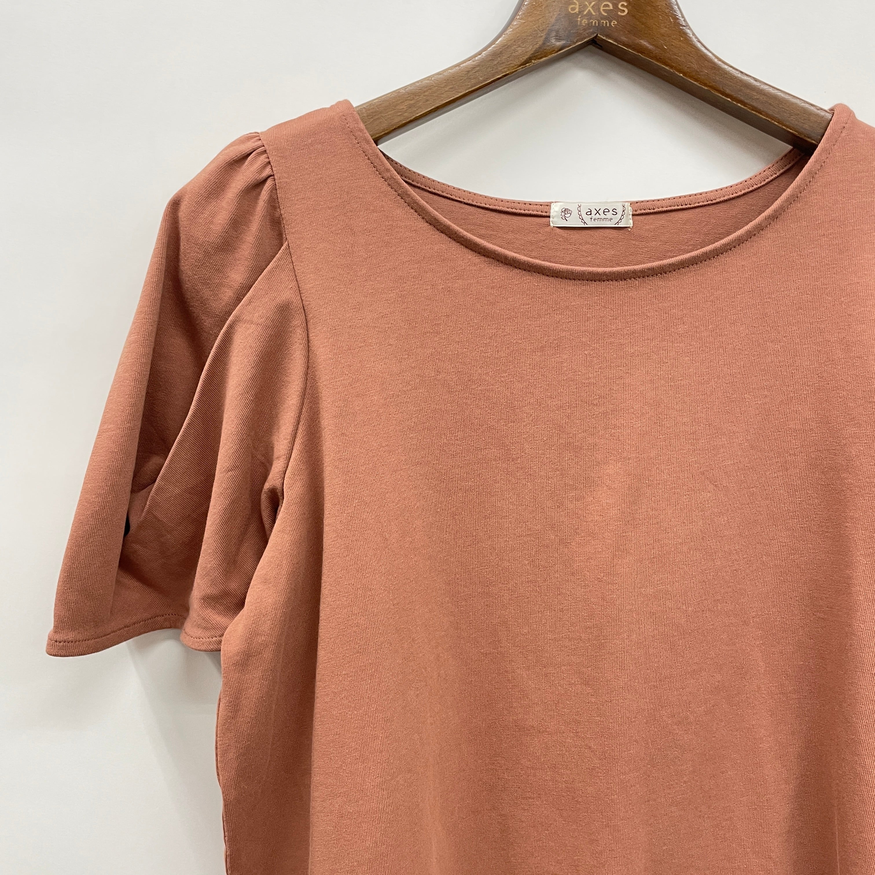 Tシャツはトップスからインナーとしても使える、シンプルなデザイン。