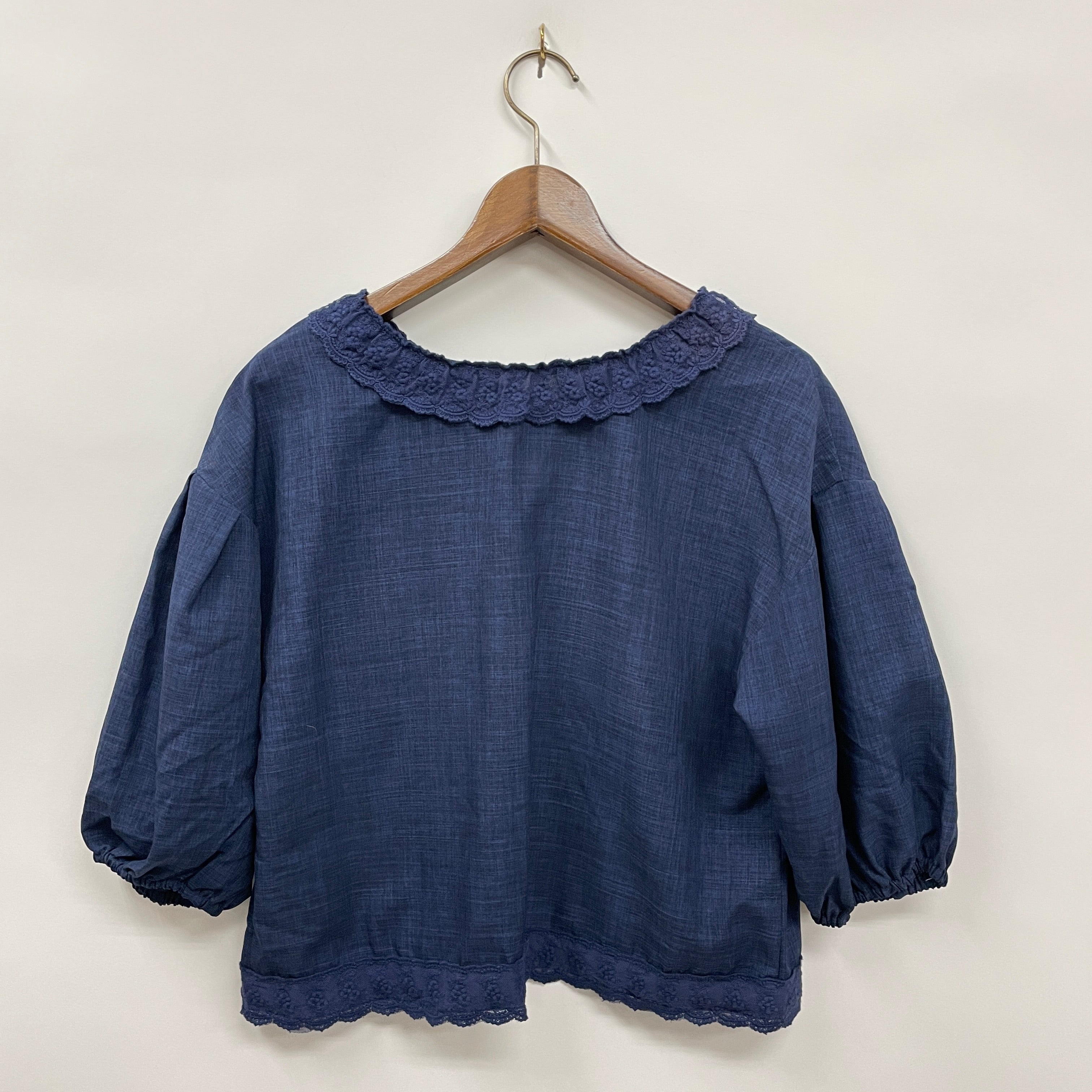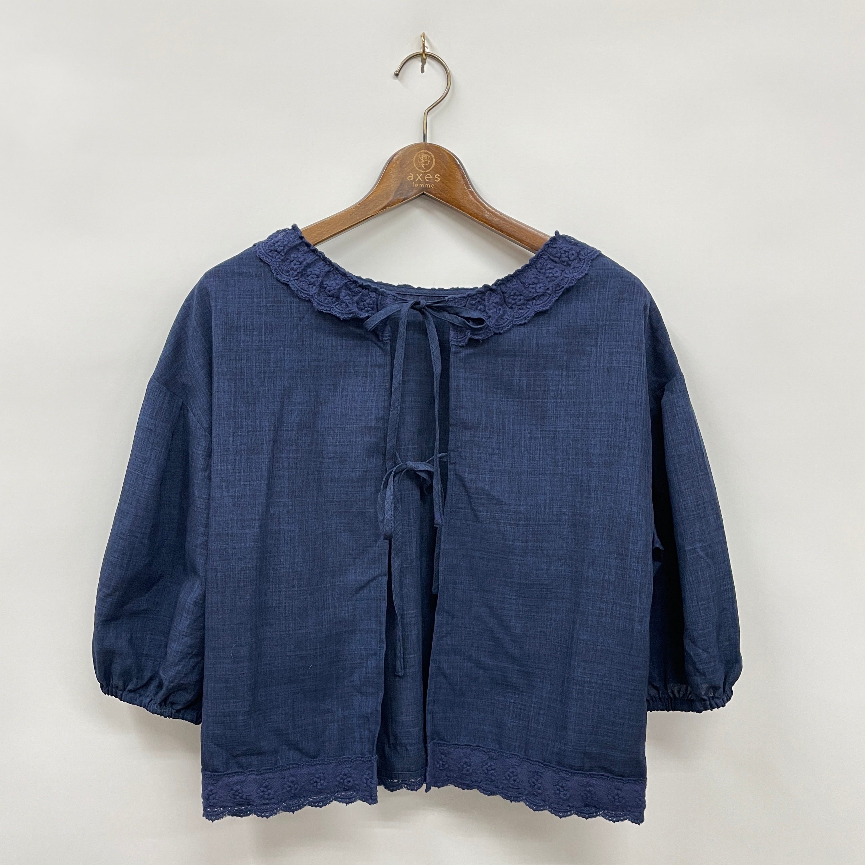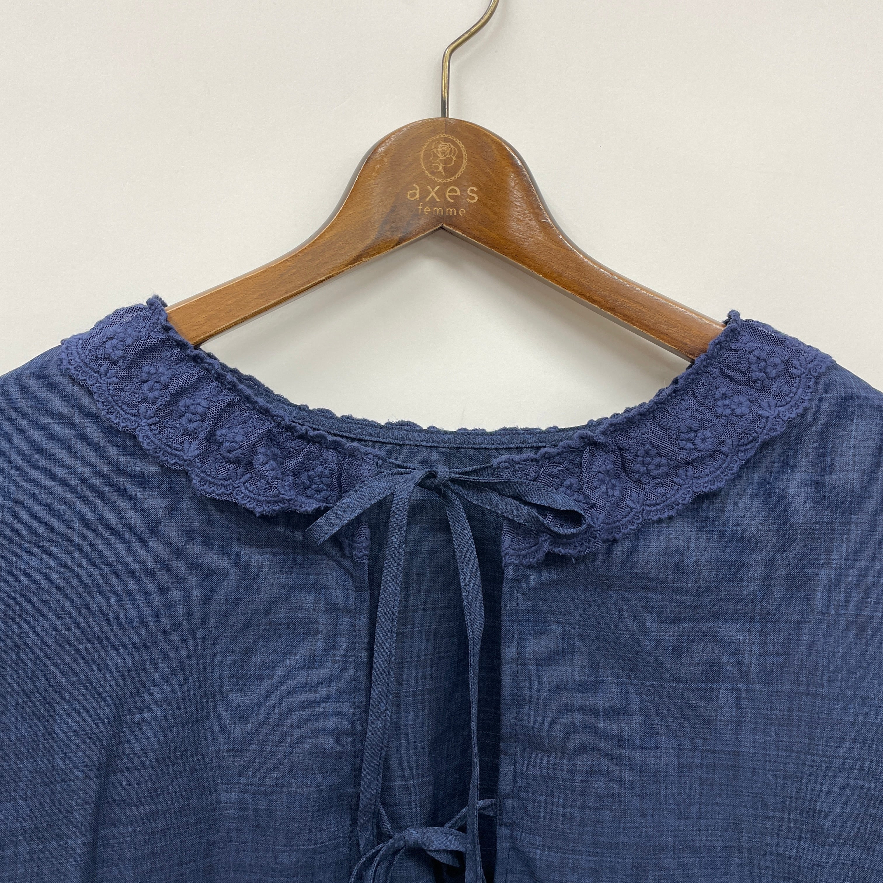 繊細なレース使いとリボンデザインがポイントのフェミニンカジュアルなブラウスです。