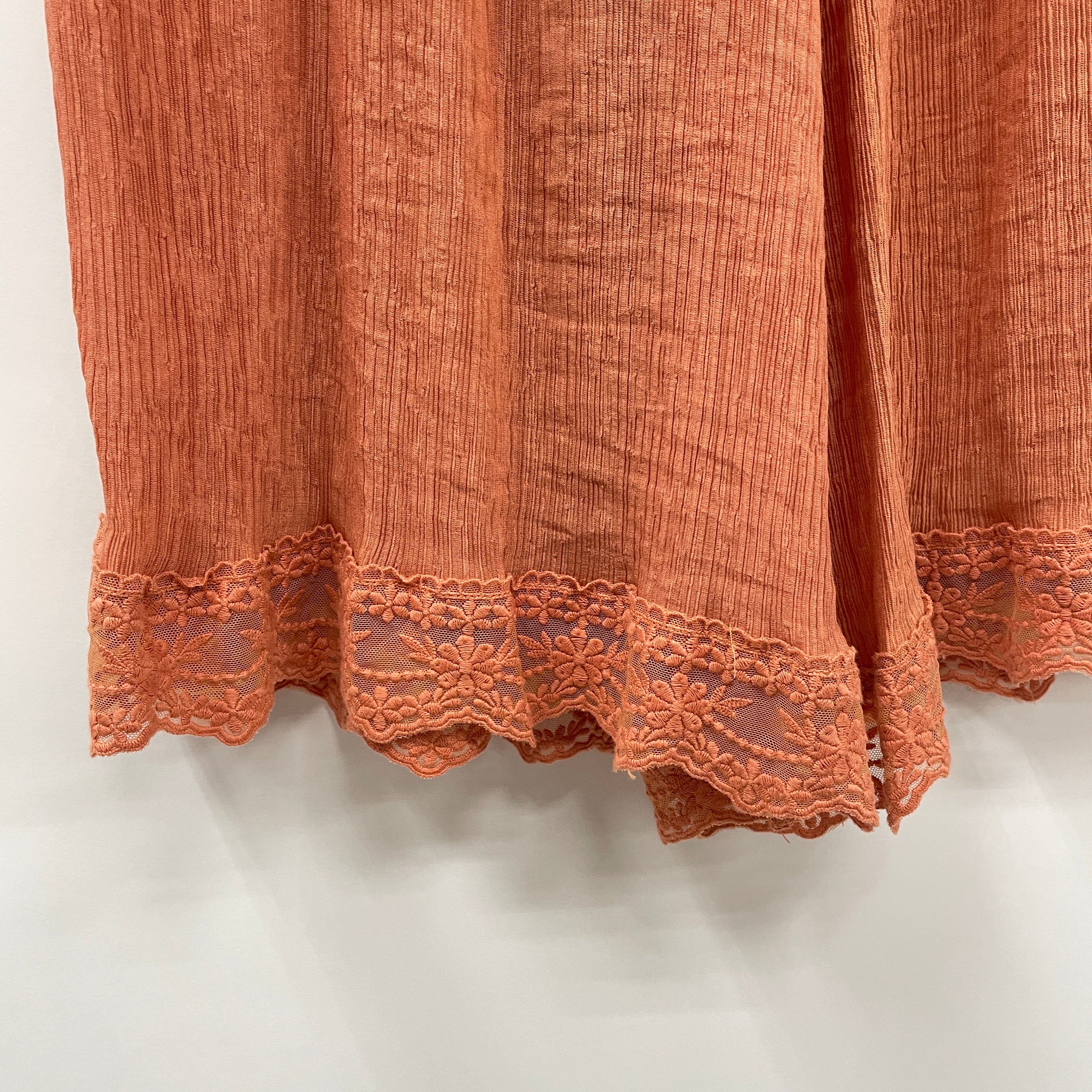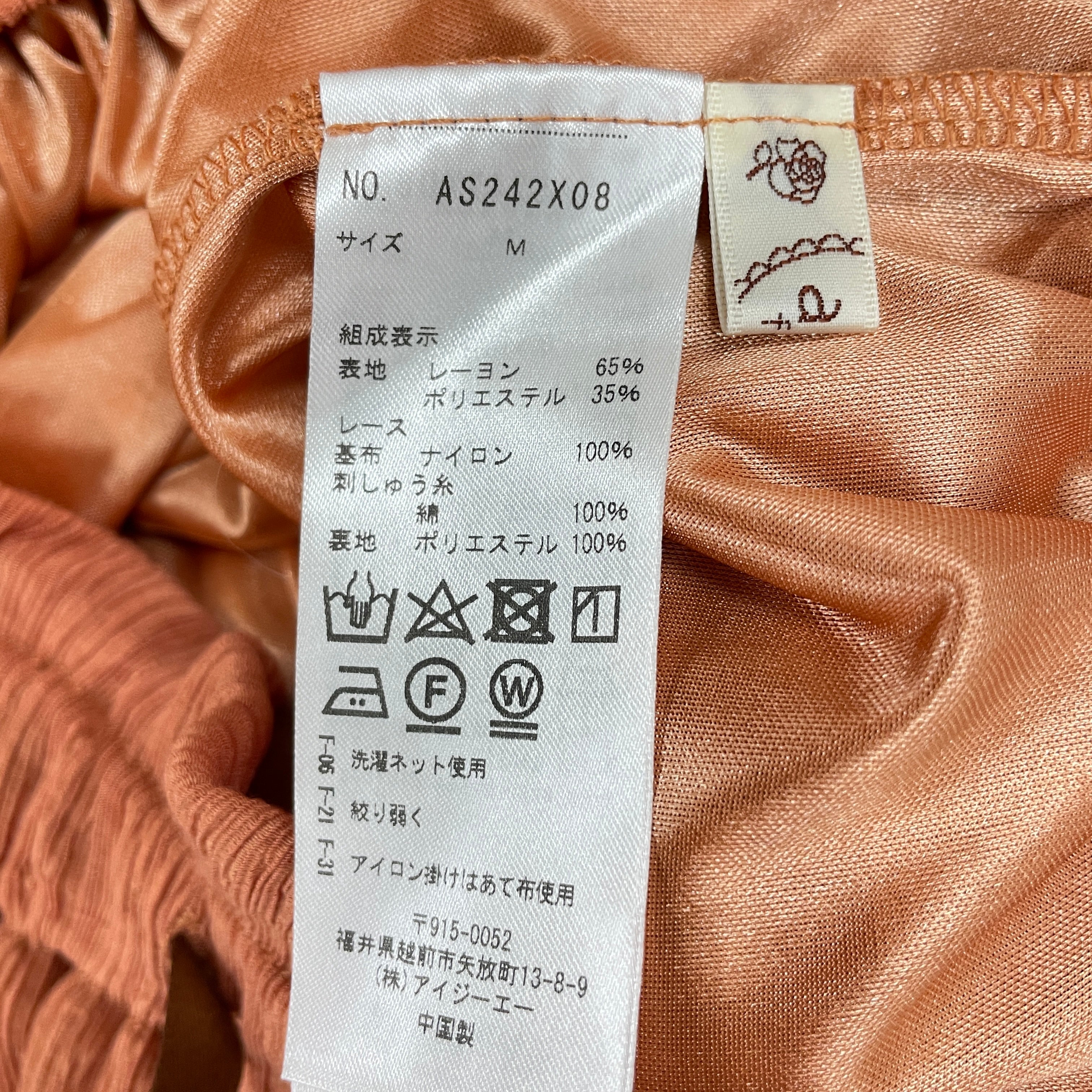 裾にはレースをあしらい、ウエストリボンはマットサテンリボンを使用し、フェミニン感をプラス。
