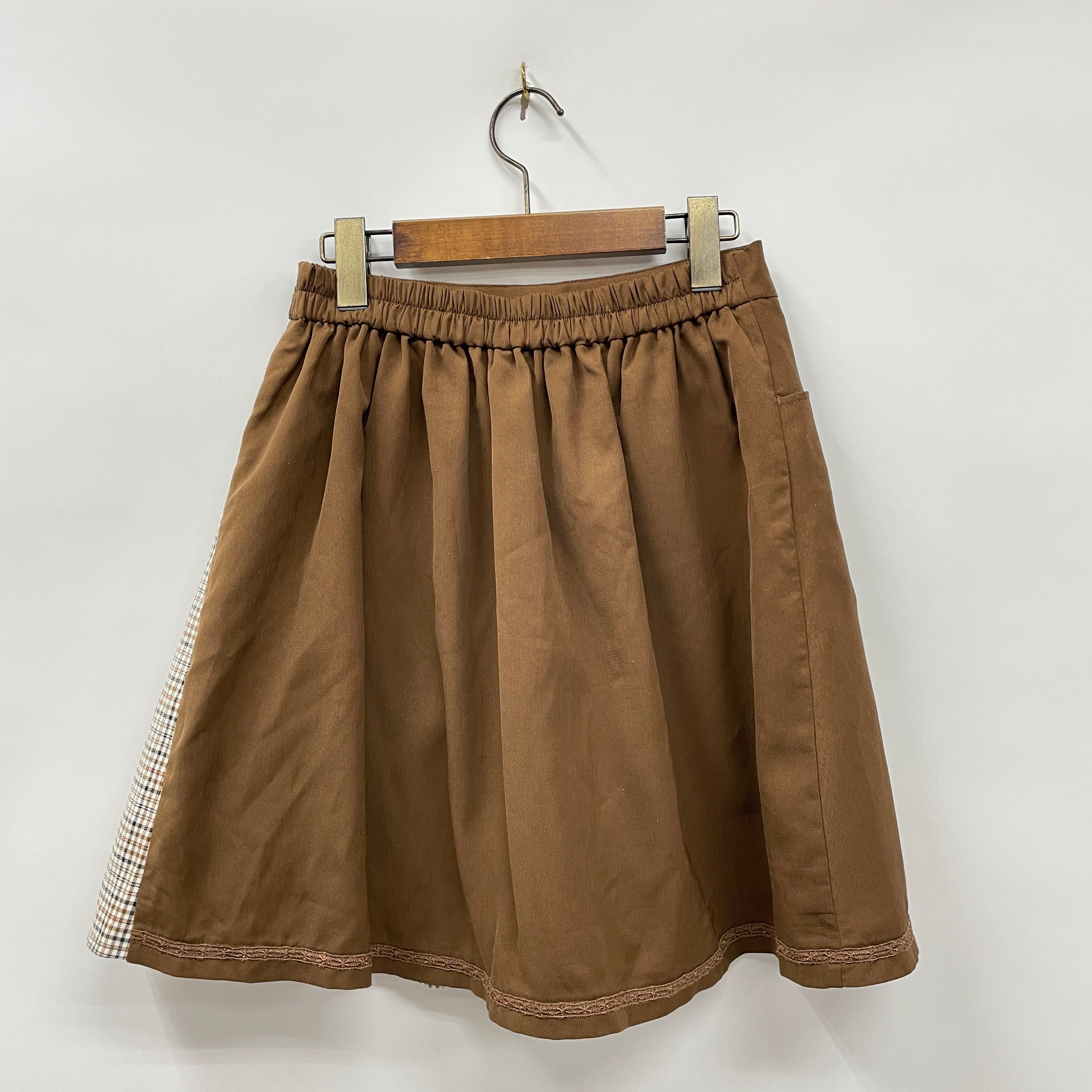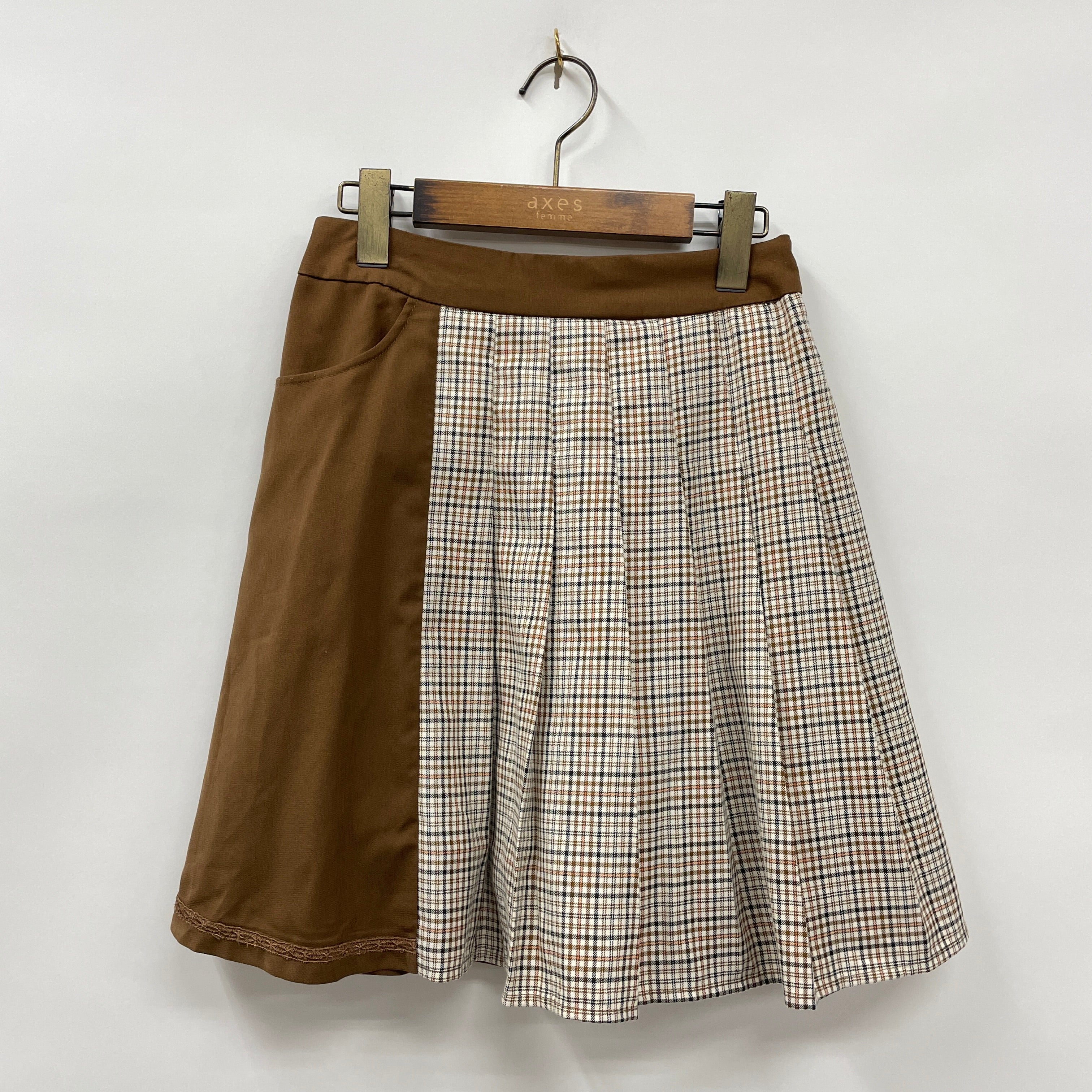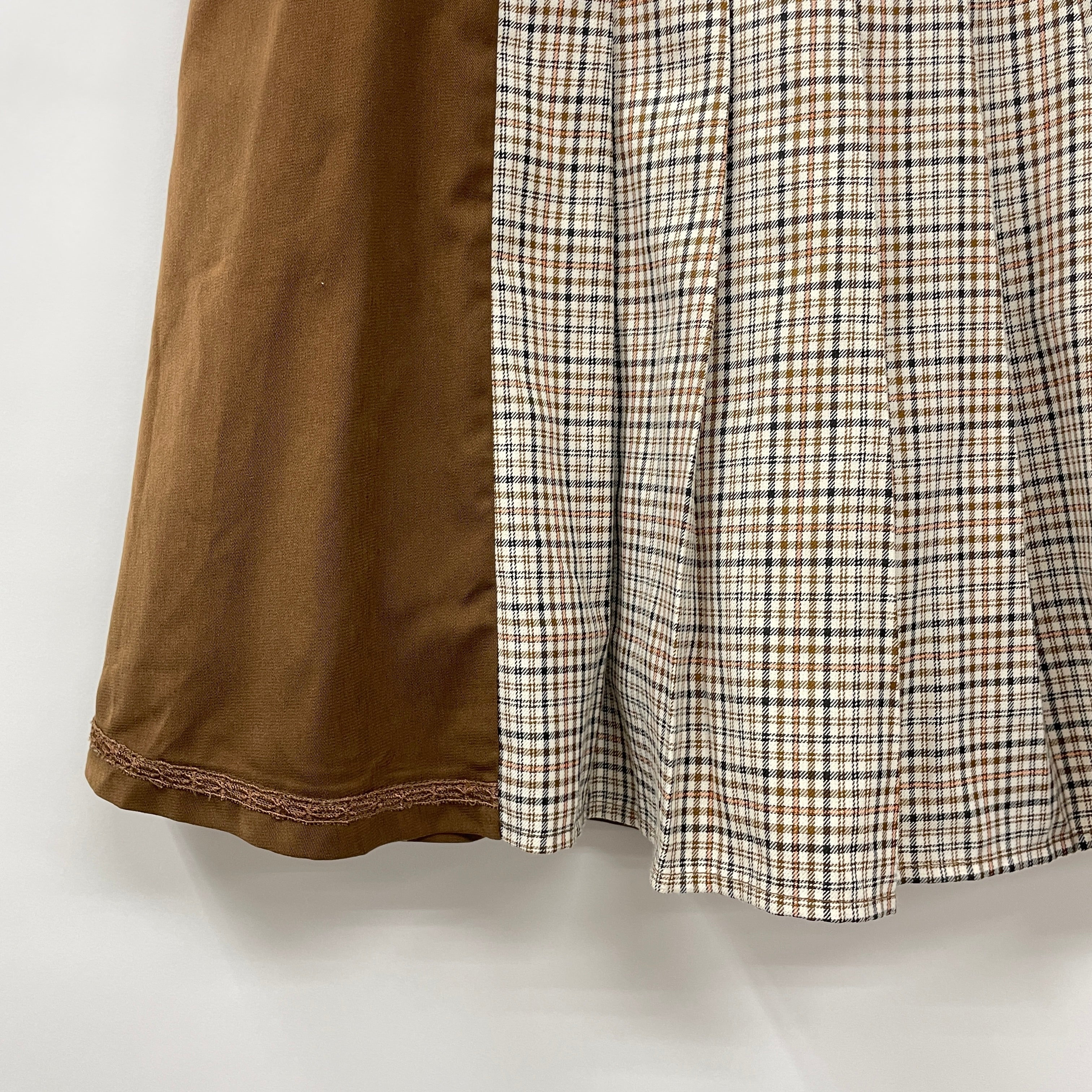 チェック×無地のデザインが目を引くスカパンです。裏地がパンツになっているのでミニ丈でも安心感のあるアイテムです。ポケットがあるのも嬉しいポイント。