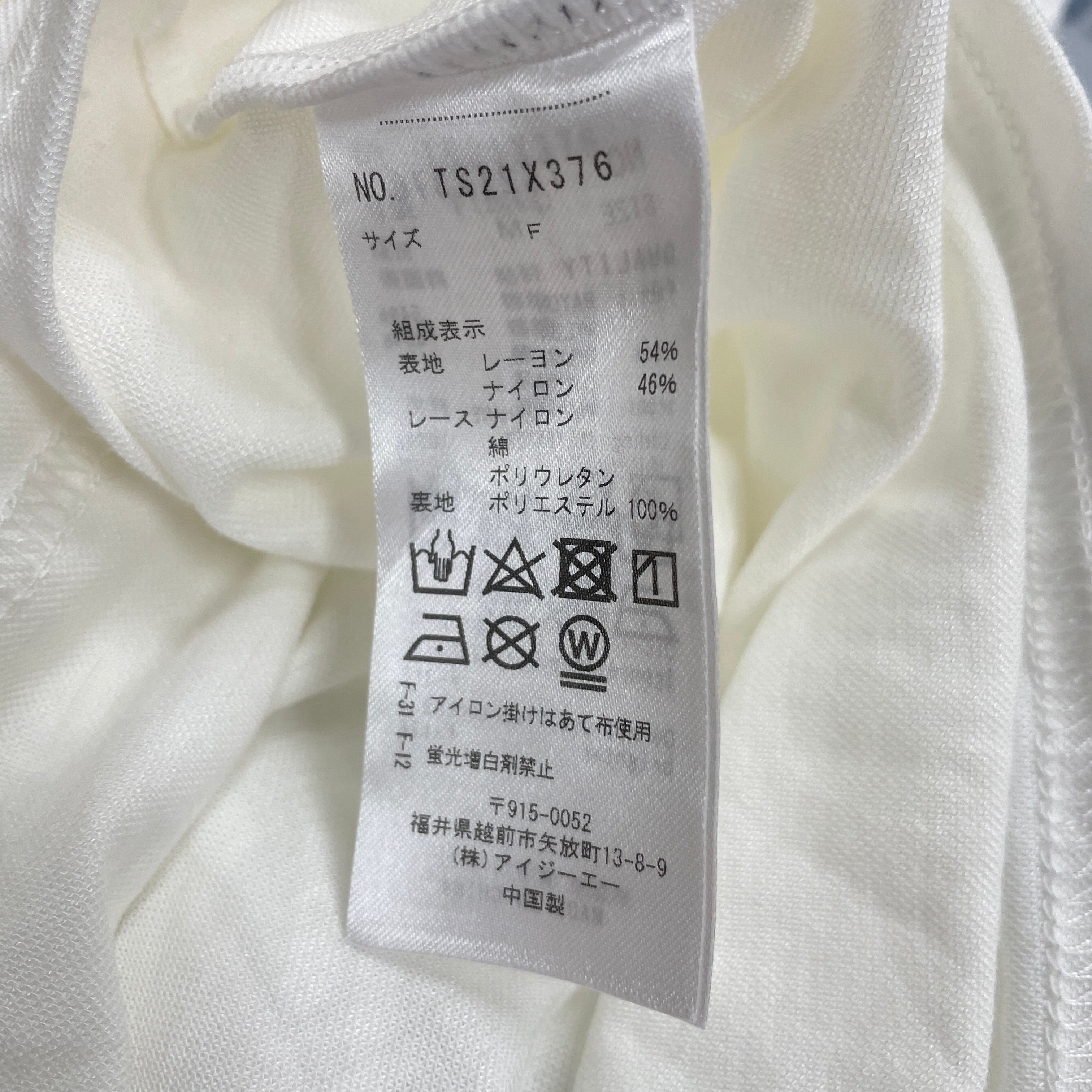 ブロッキング部分が微配色になっており、ストライプ柄のレース切り替えが爽やかな印象を与えます。