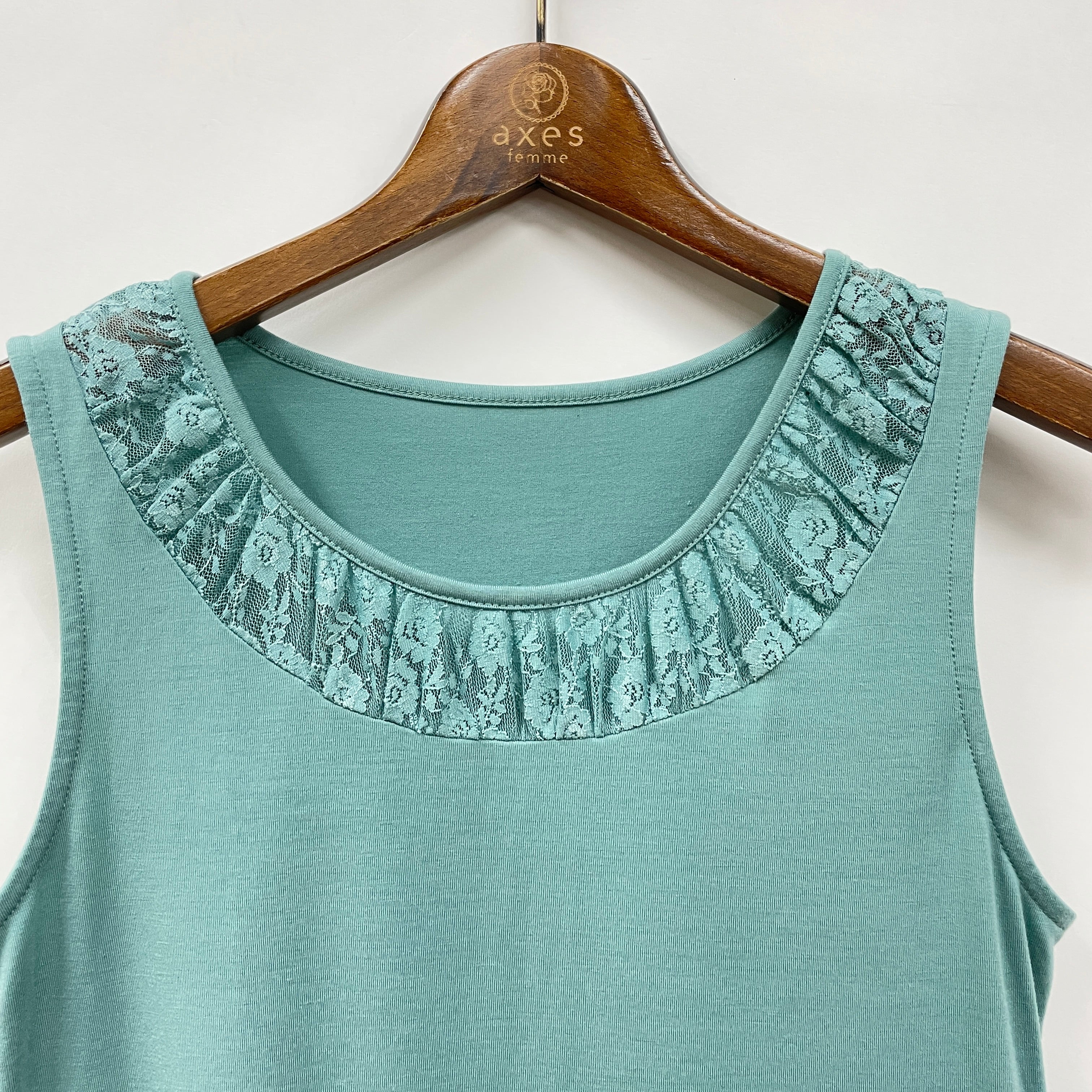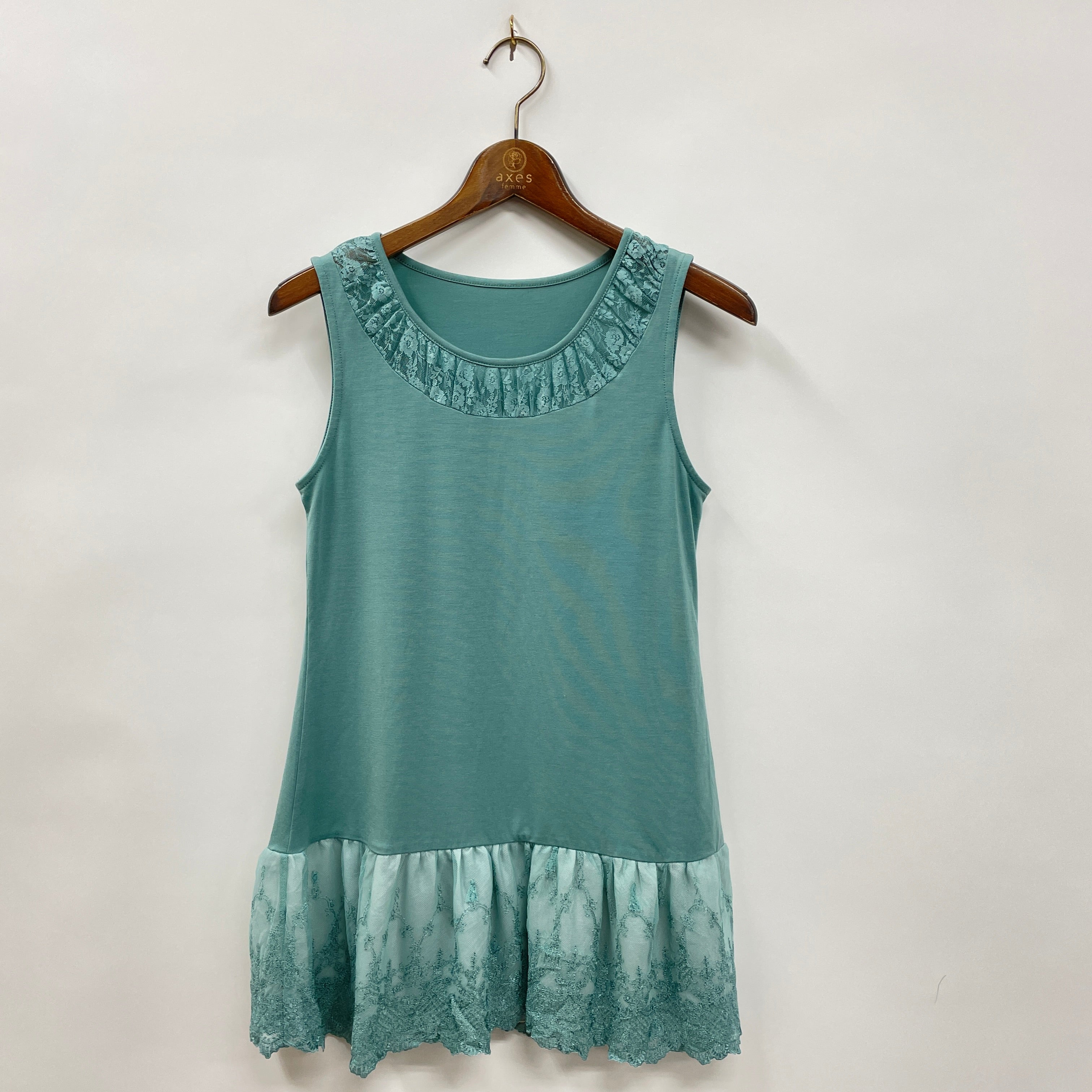 トレンドのチュニックスタイルなど、トップスの裾からチュールレースを覗かせたレイヤードスタイルが楽しめるロングタンクです。繊細な柄のレースを使用しており、中に着るだけでフェミニンスタイリングにもカジュアルスタイリングにも合わせられる便利な1枚。ウエスト~ヒップラインを隠してくれるうれしいアイテムです。
