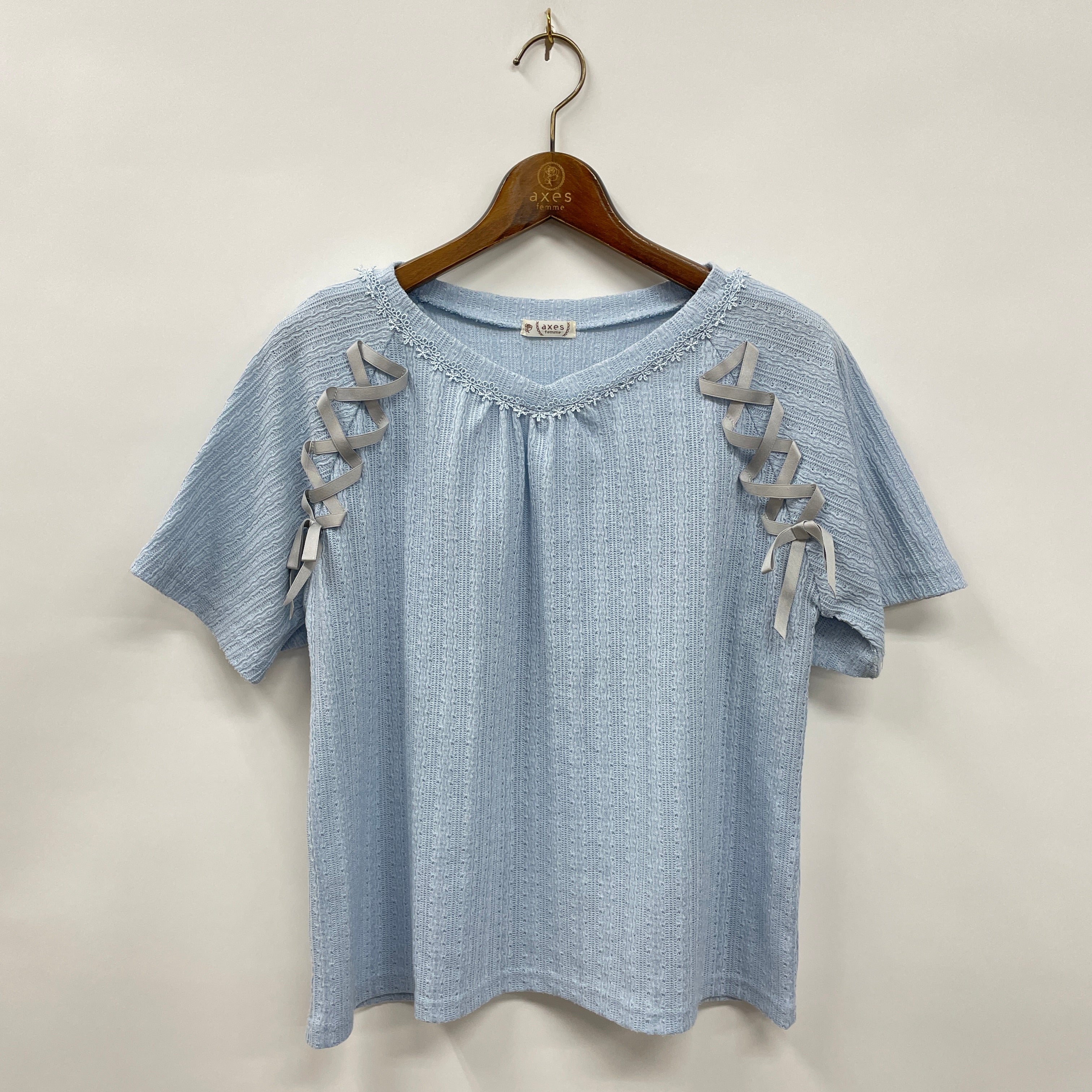 レースアップデザインが目を惹くのカットトップスです。