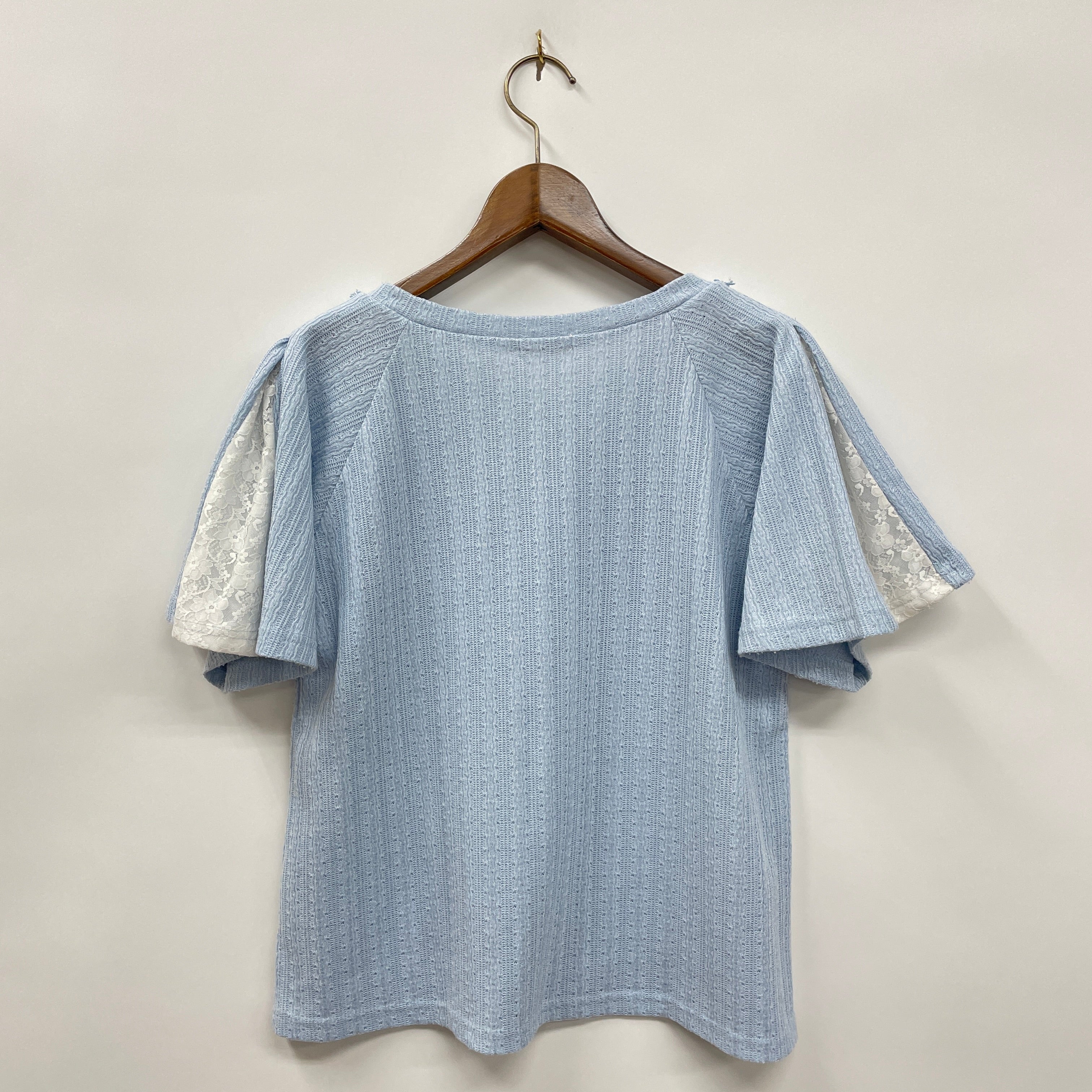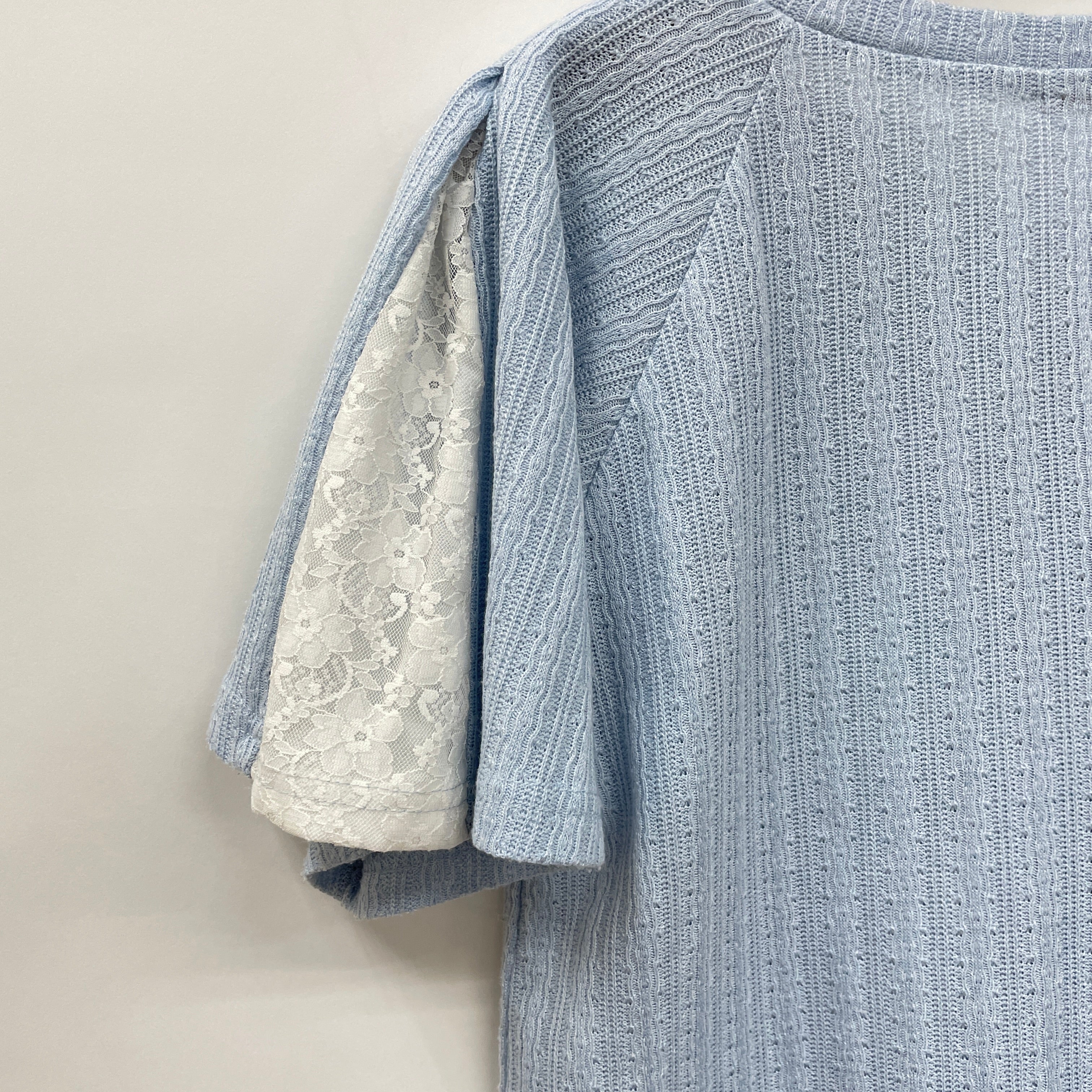 袖の配色レース切替がポイント。