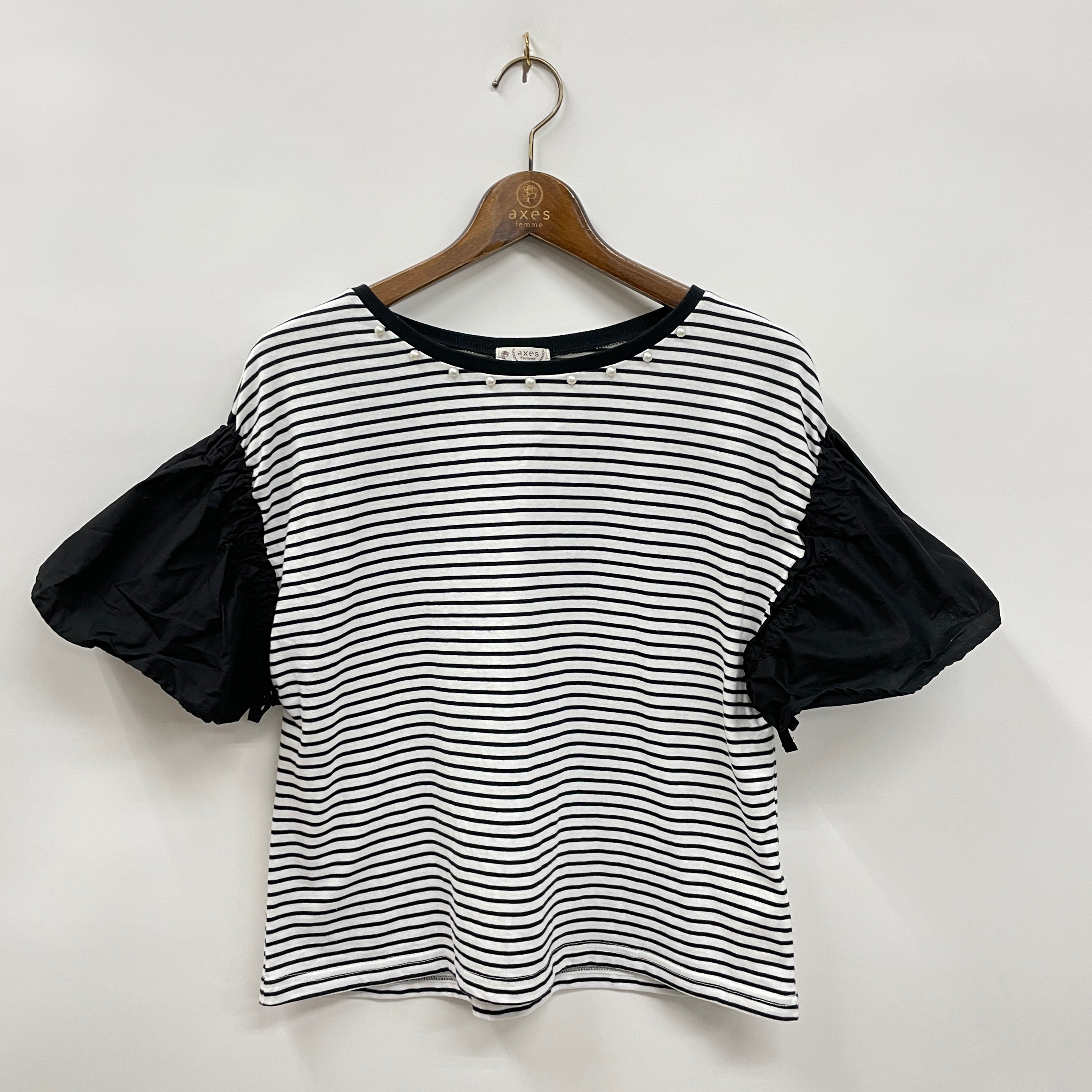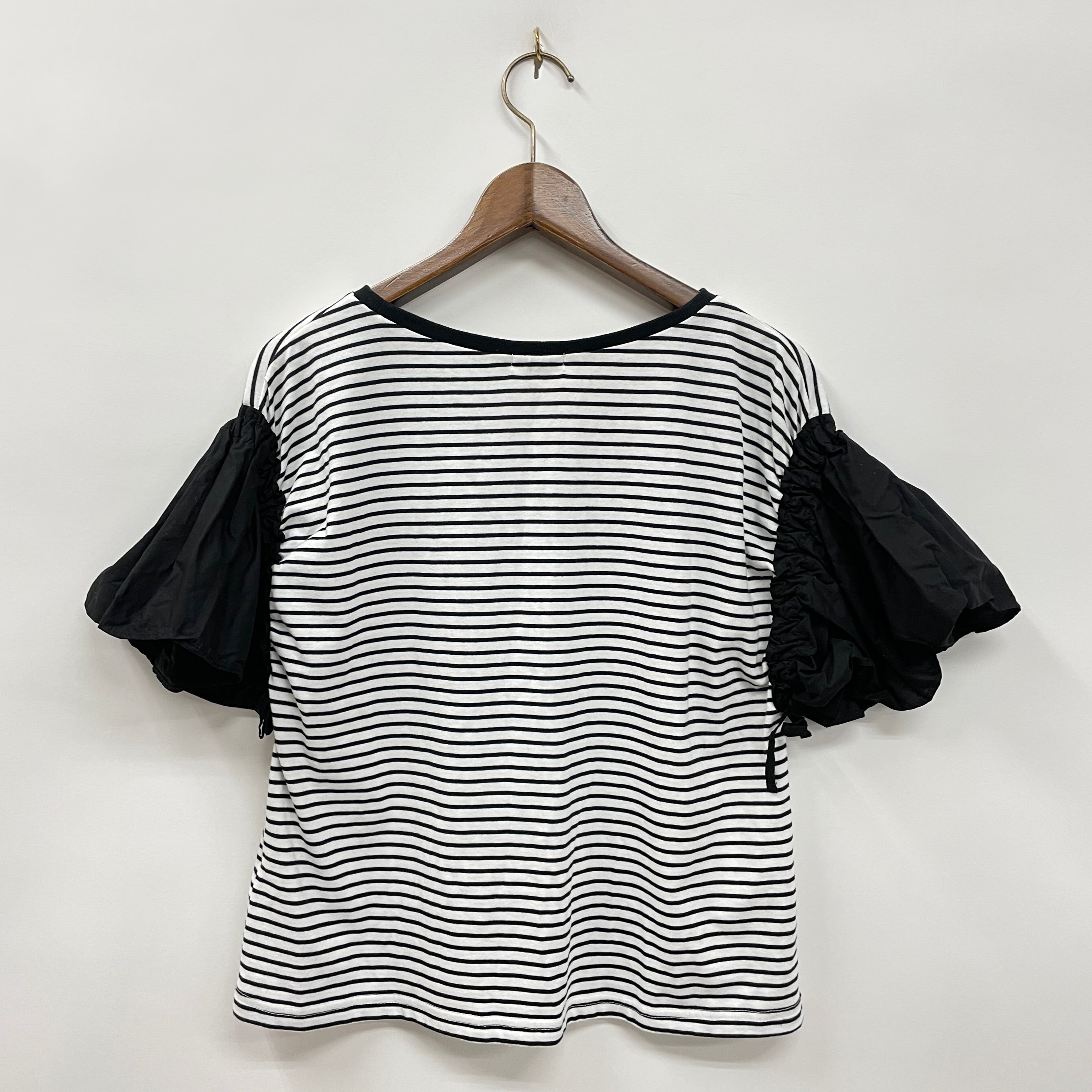 コットン素材のフリル袖がポイントのボーダー柄POです。