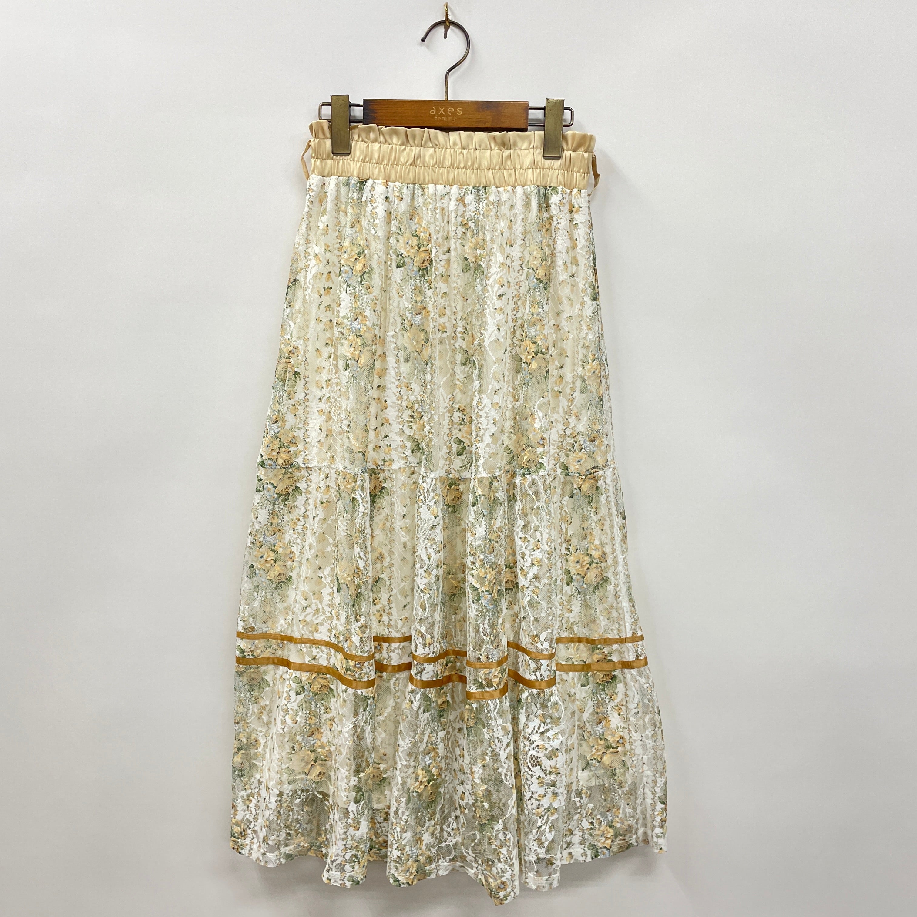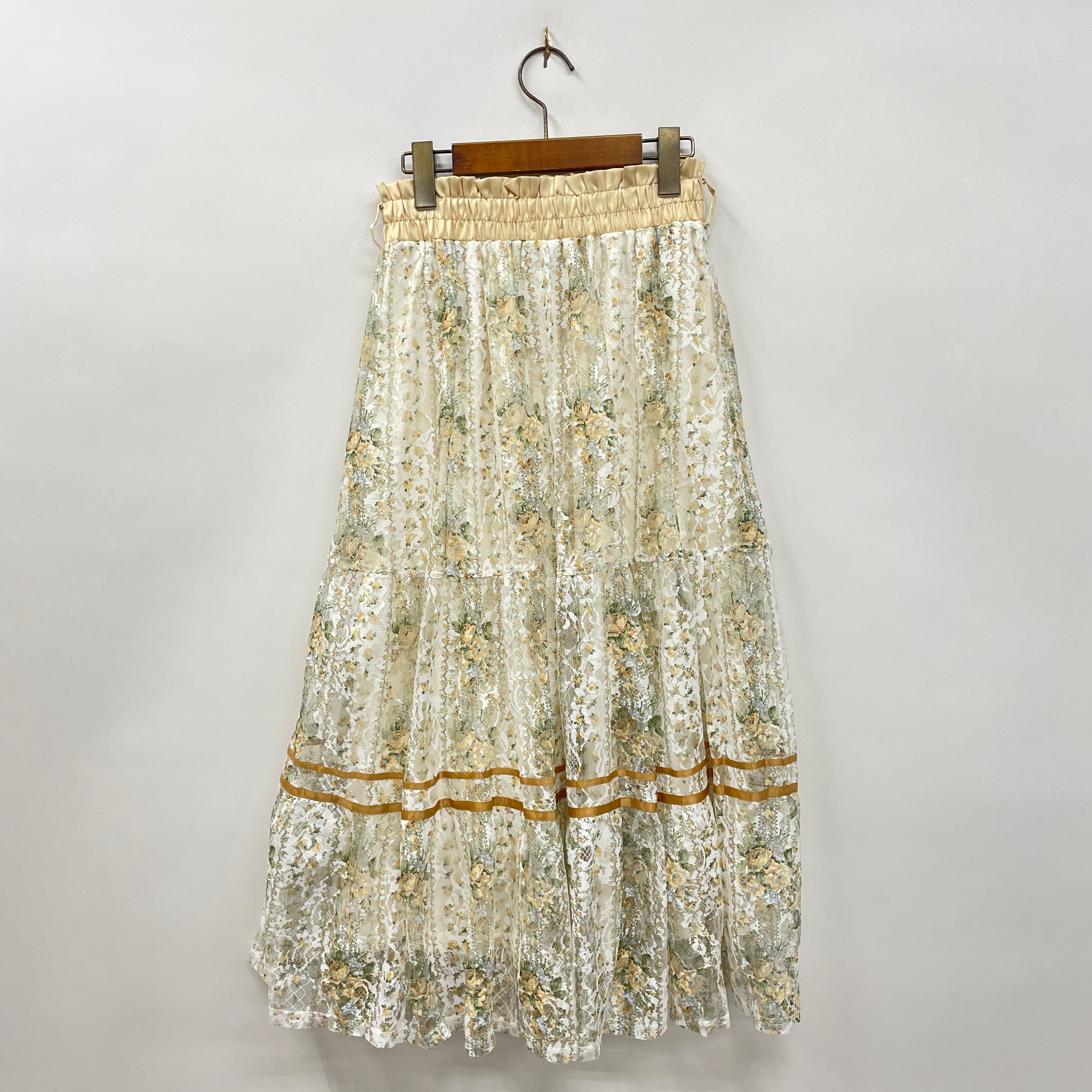 レースにフラワープリントをほどこしたエレガントなロングスカートです。