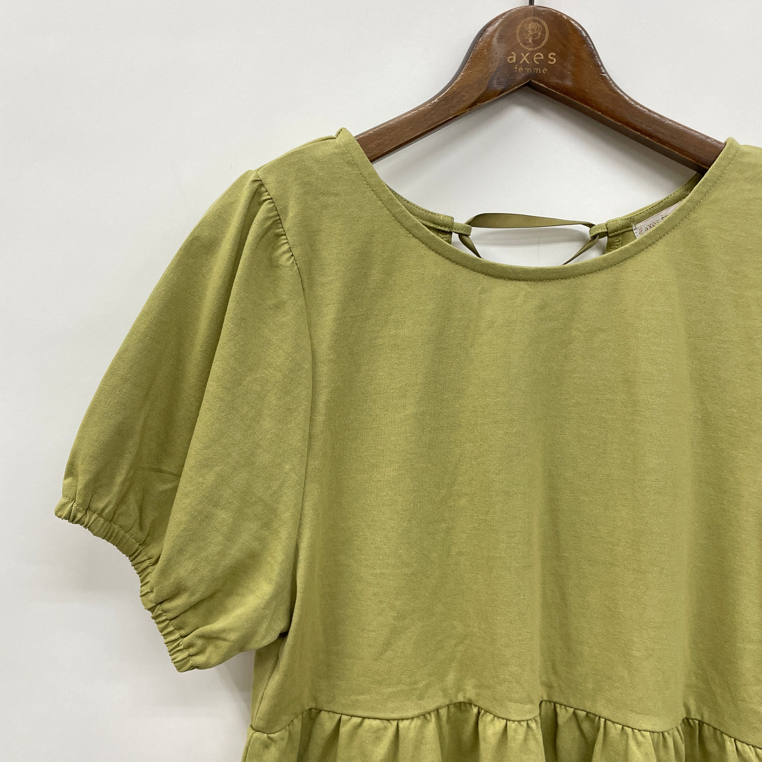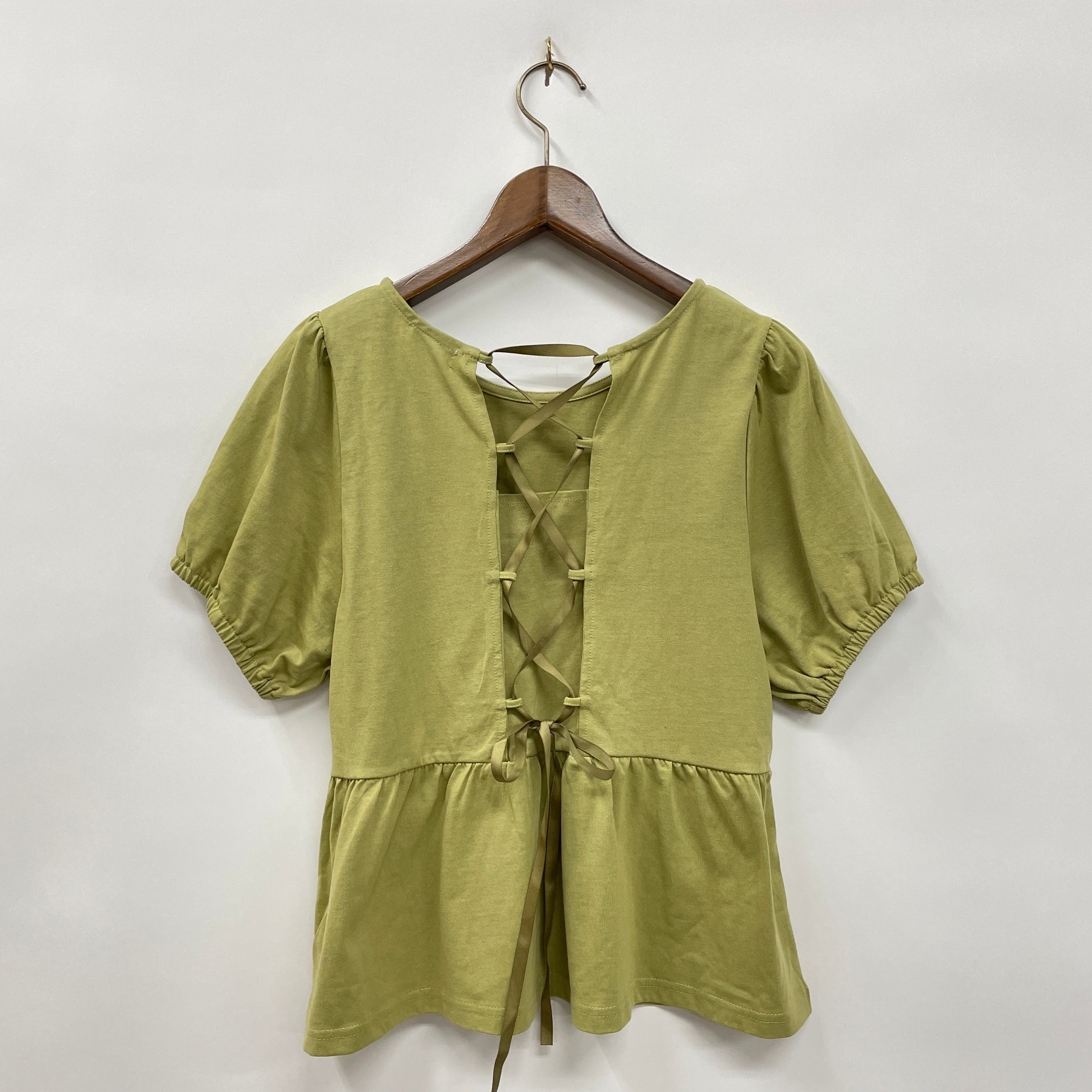 フロントはシンプルながらもバックスタイルはレースアップデザインを取りいれたトップスは夏にピッタリのアイテム!