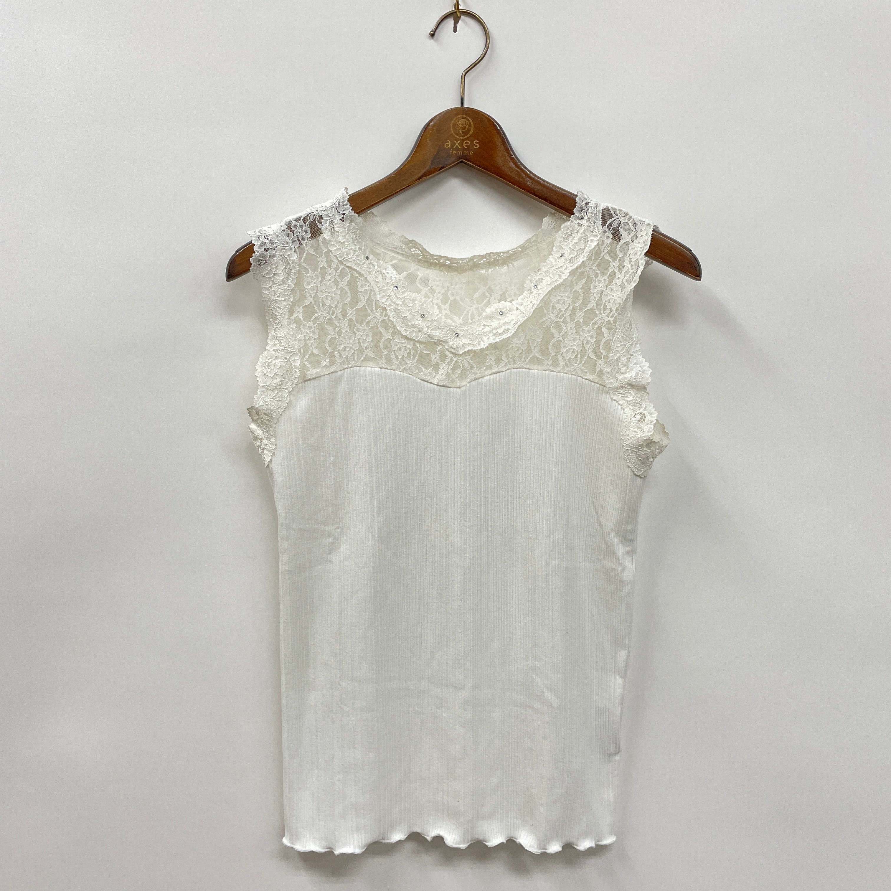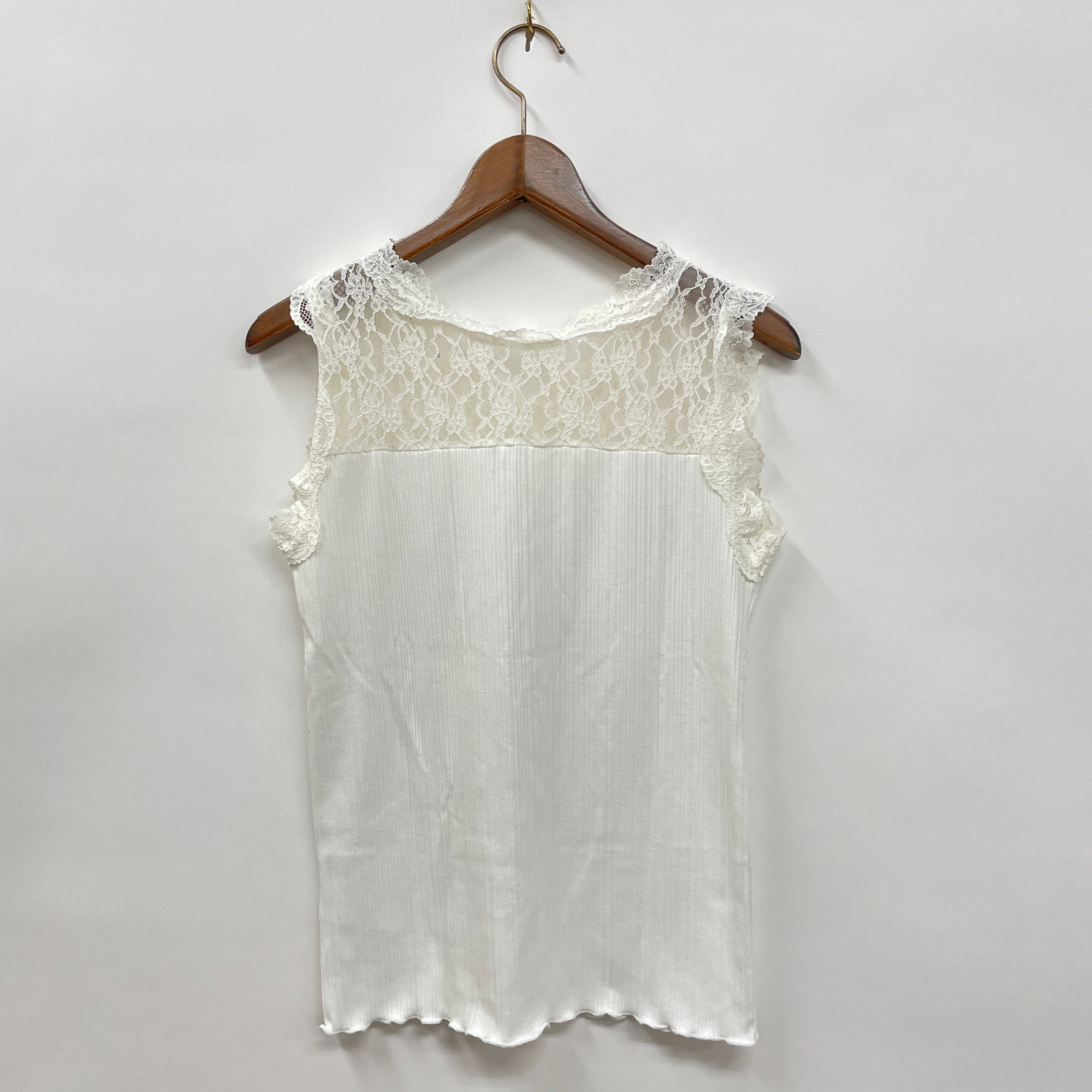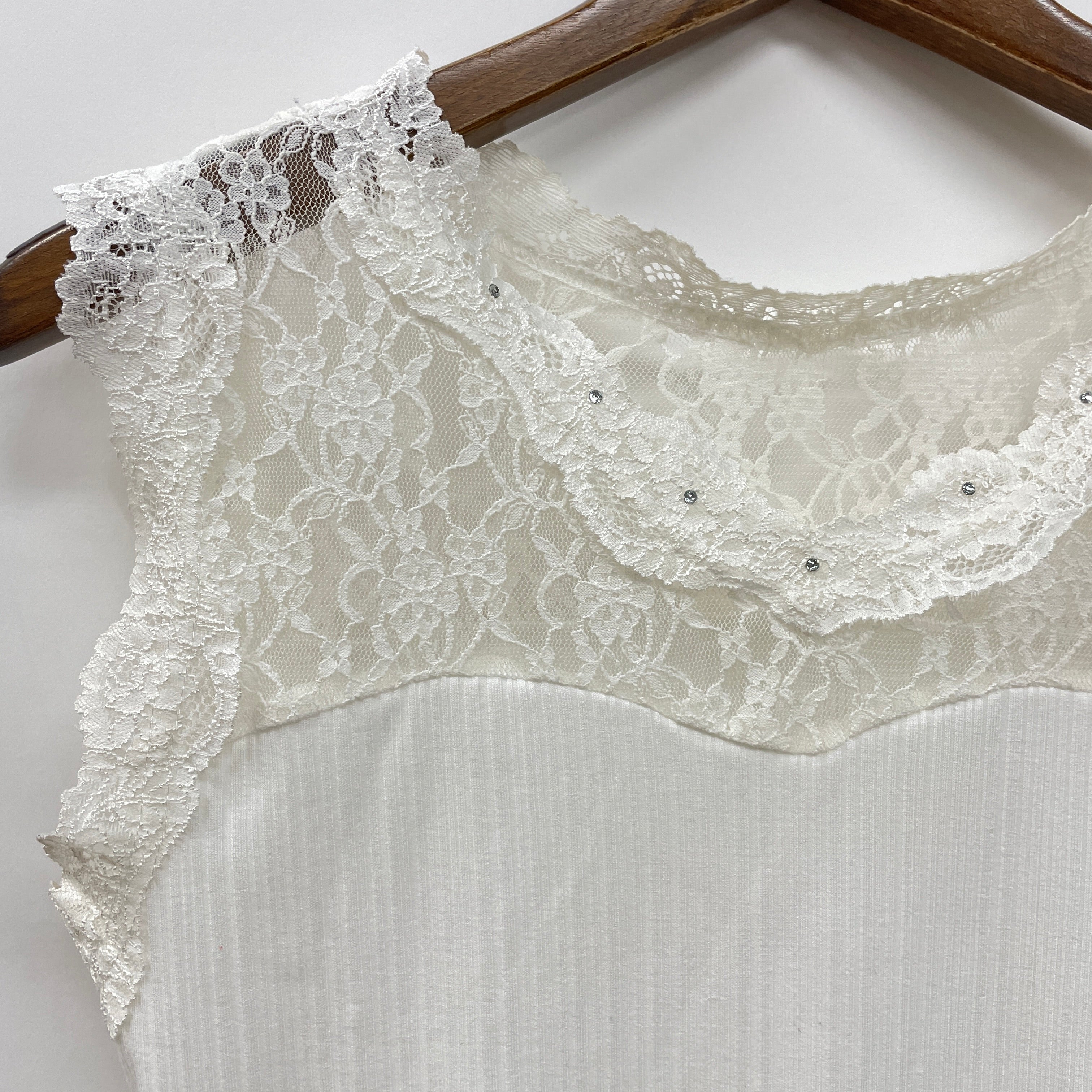 レース使いが華やかな、ビスチェ切替のインナータンクです。