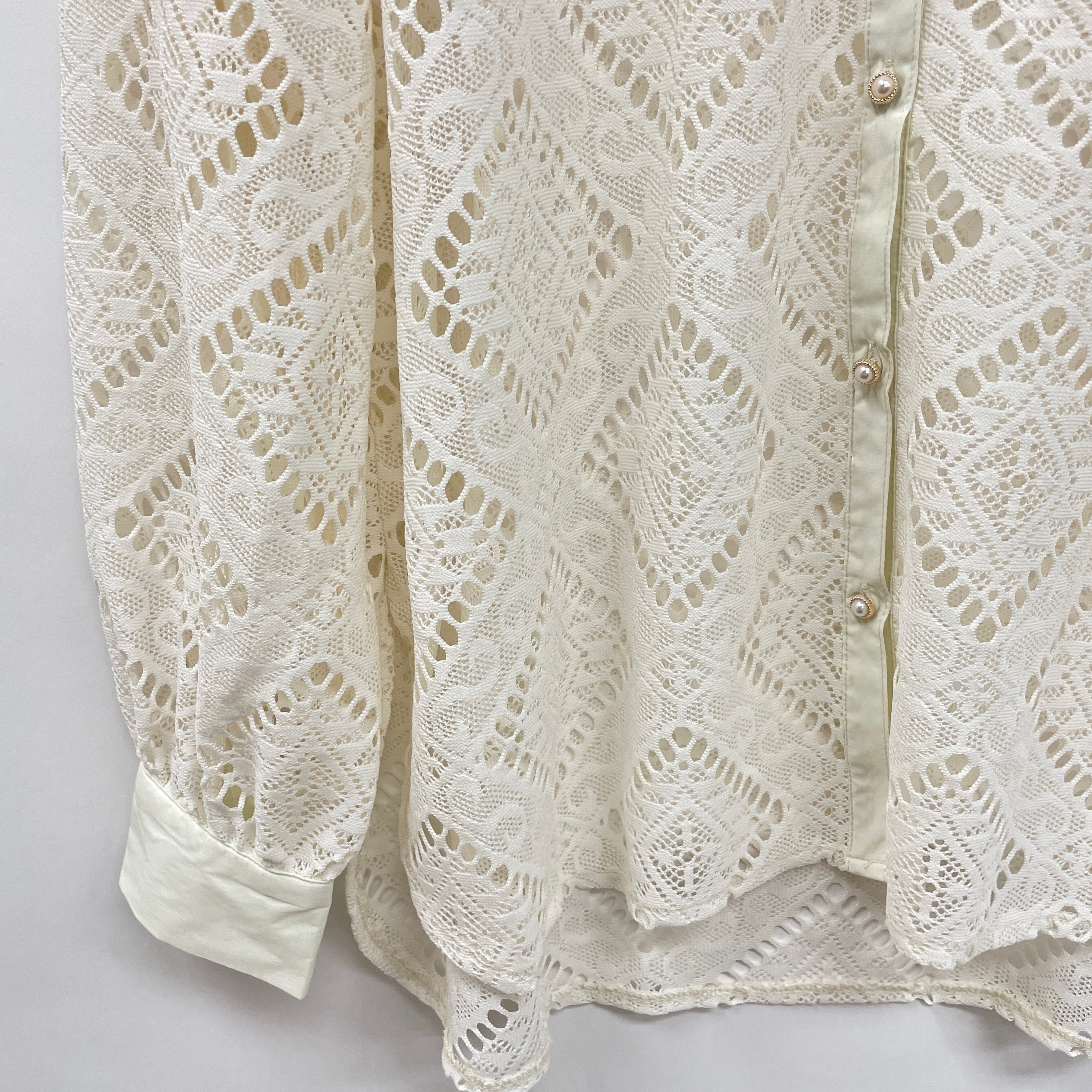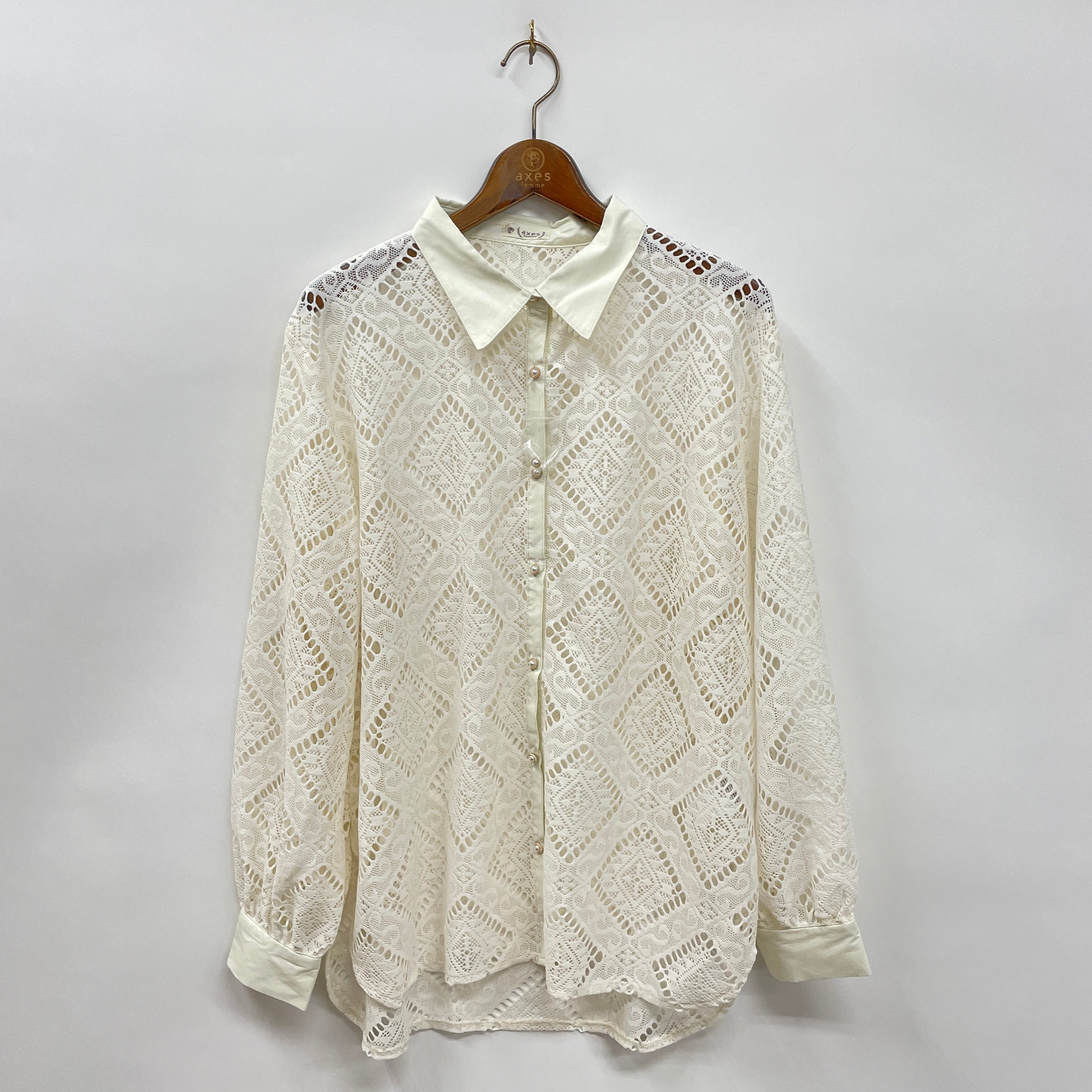 ダイヤ柄のレース生地を使用したロングシャツです。