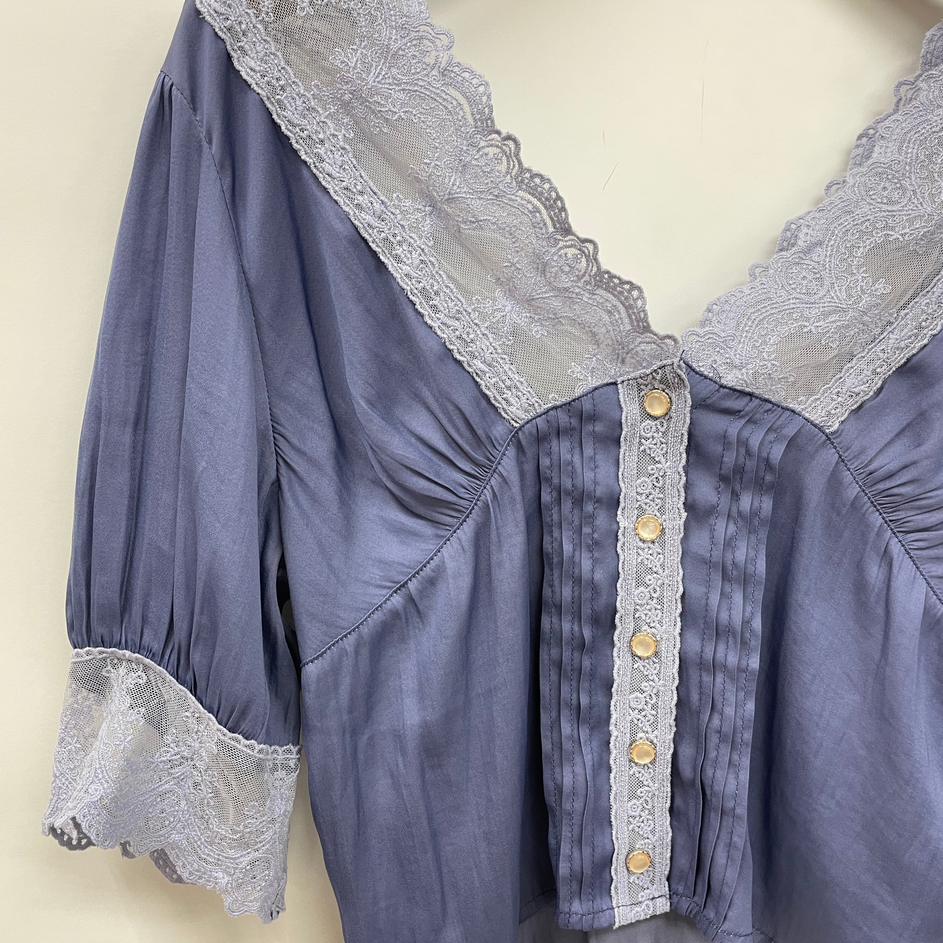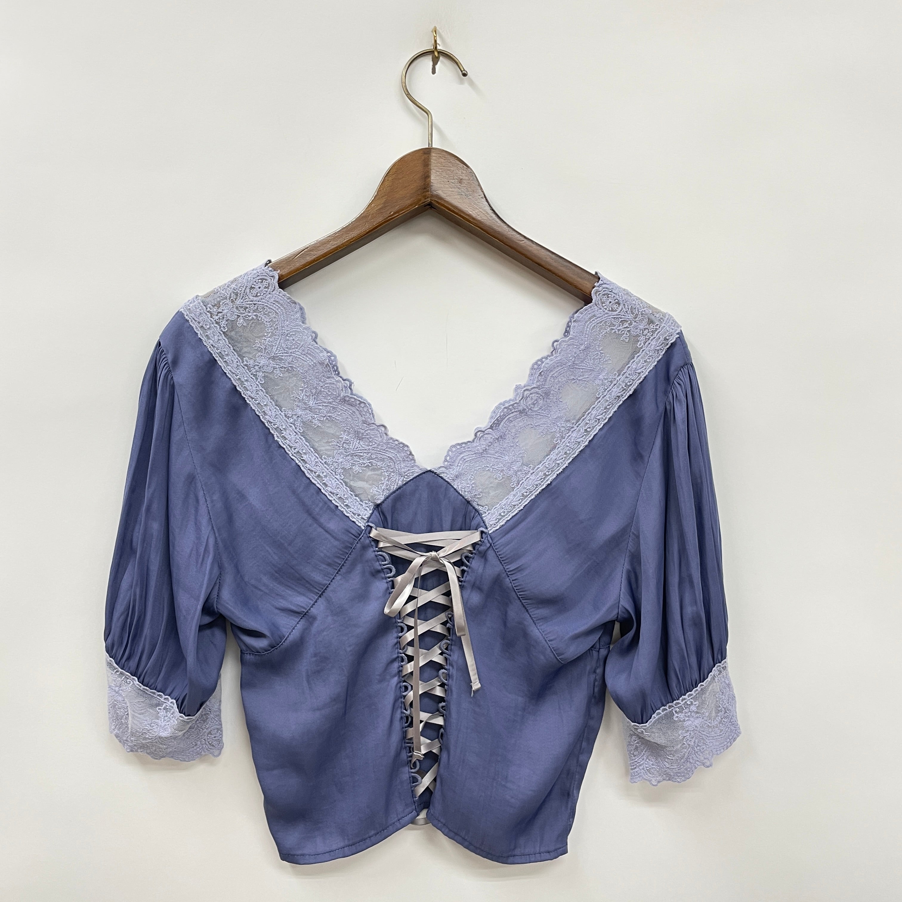 ラインに沿った切り替えデザインが美しい、ヴィンテージサテンのブラウスです。