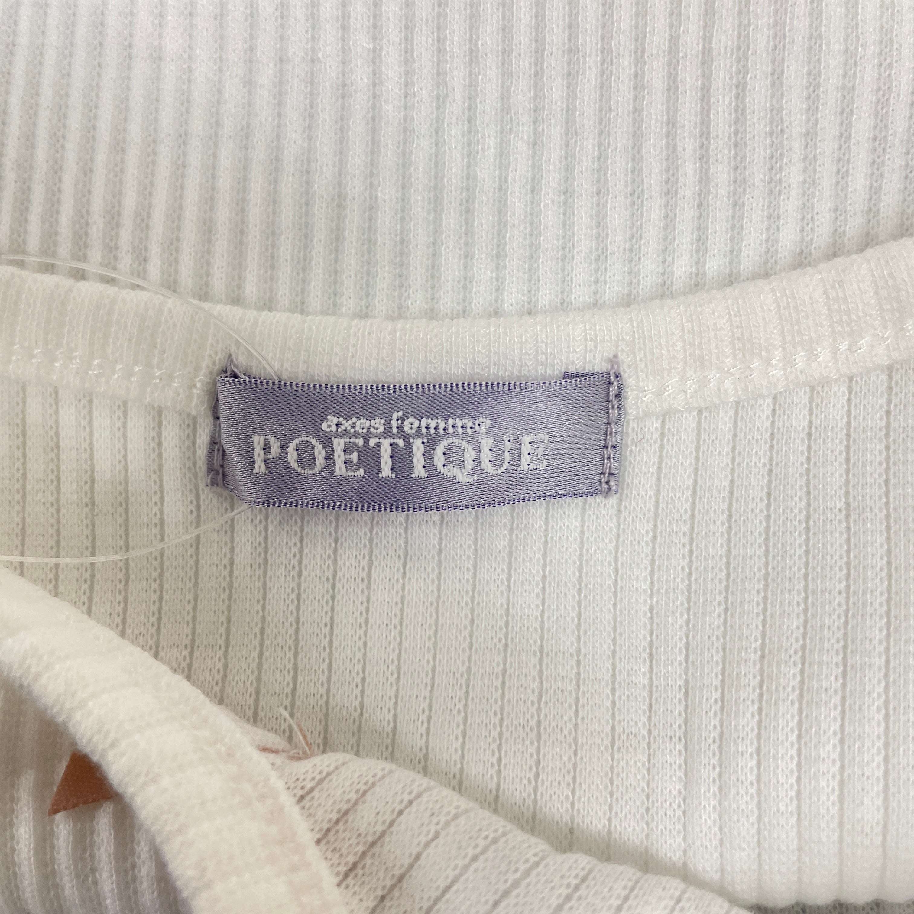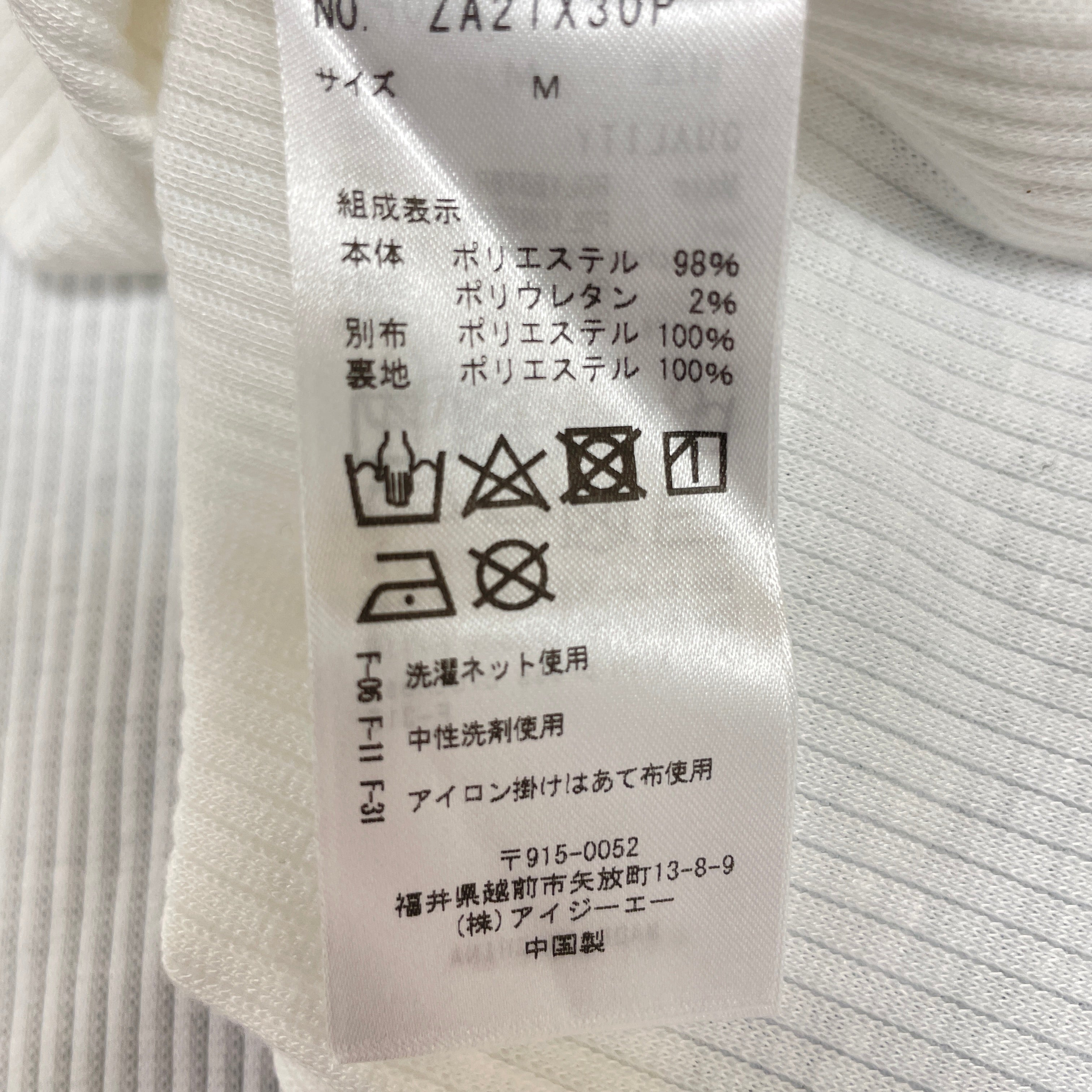 ワンピース、ボトムスと合わせて着やすいデザインです。すっきりと開いた衿元にネックレスを合わせるのがおすすめです。